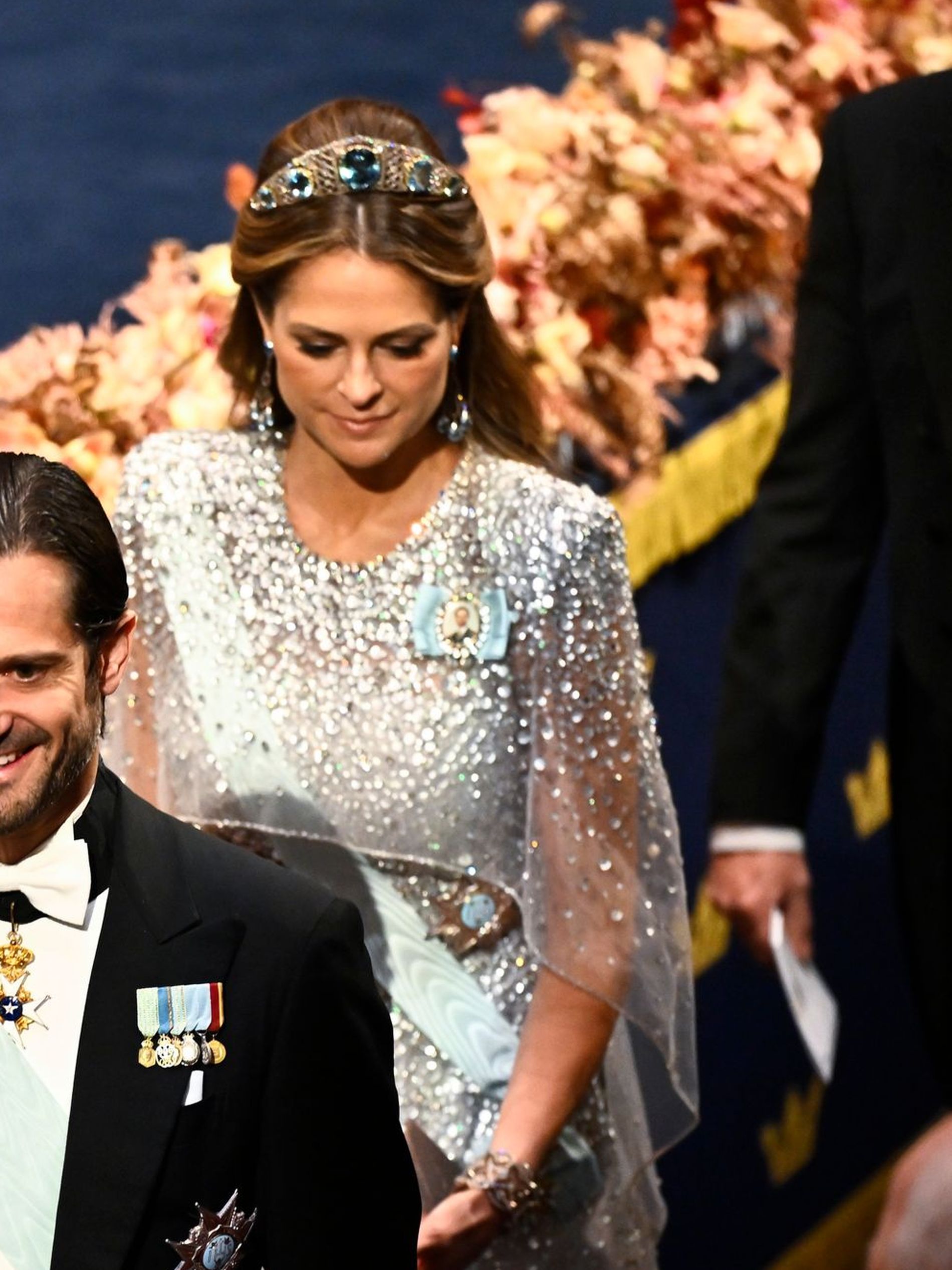 Prince Carl Philip and Princess Madeleine in a Jenny Packham gown. Photo: TT