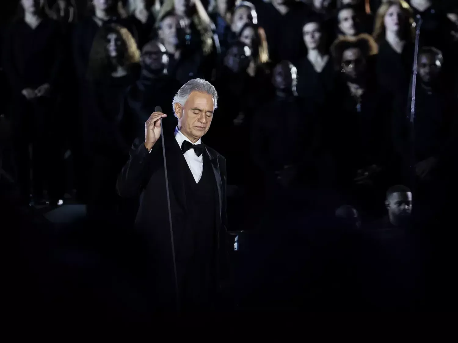 Andrea Bocelli performs on the stage during the 'Grace For The World' event at St. Peter's Square on September 13, 2025 in Vatican City, Vatican. .