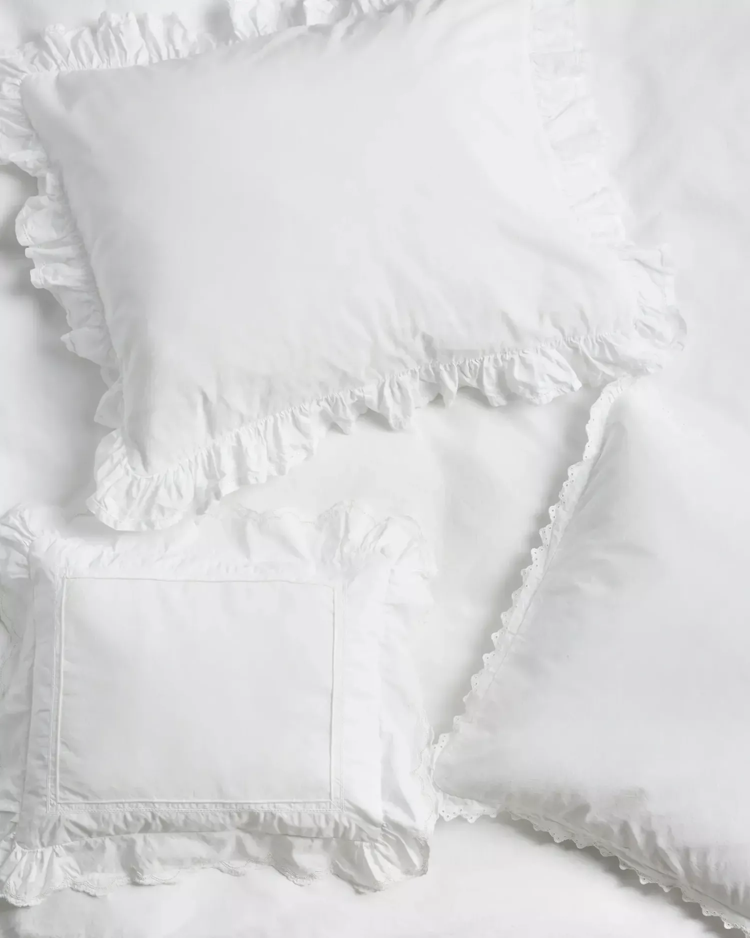 Since launching in 2017, Tekla has expanded from bedding into sleepwear, bathroom sets, and more. For its latest launch, the Danish homeware and textile brand returns to its roots with a collection of broderie anglaise duvet covers, pillow shames, and decorative pillows. A departure from Tekla’s signature stripes and distinctive colors, the crisp white palette hearkens back to handcrafted textiles of centuries past, complete with delicate embroidery, stitching, and lace.
