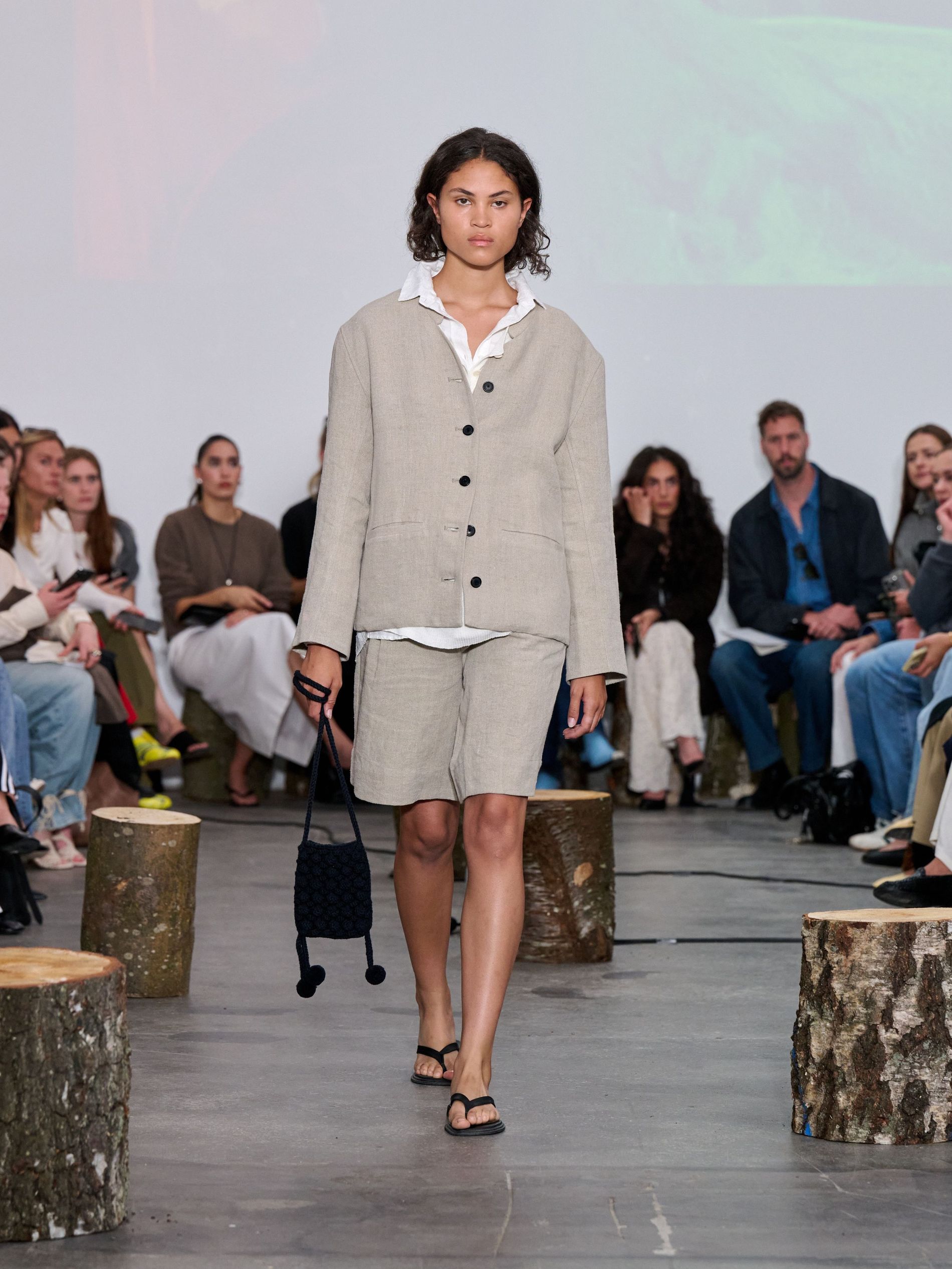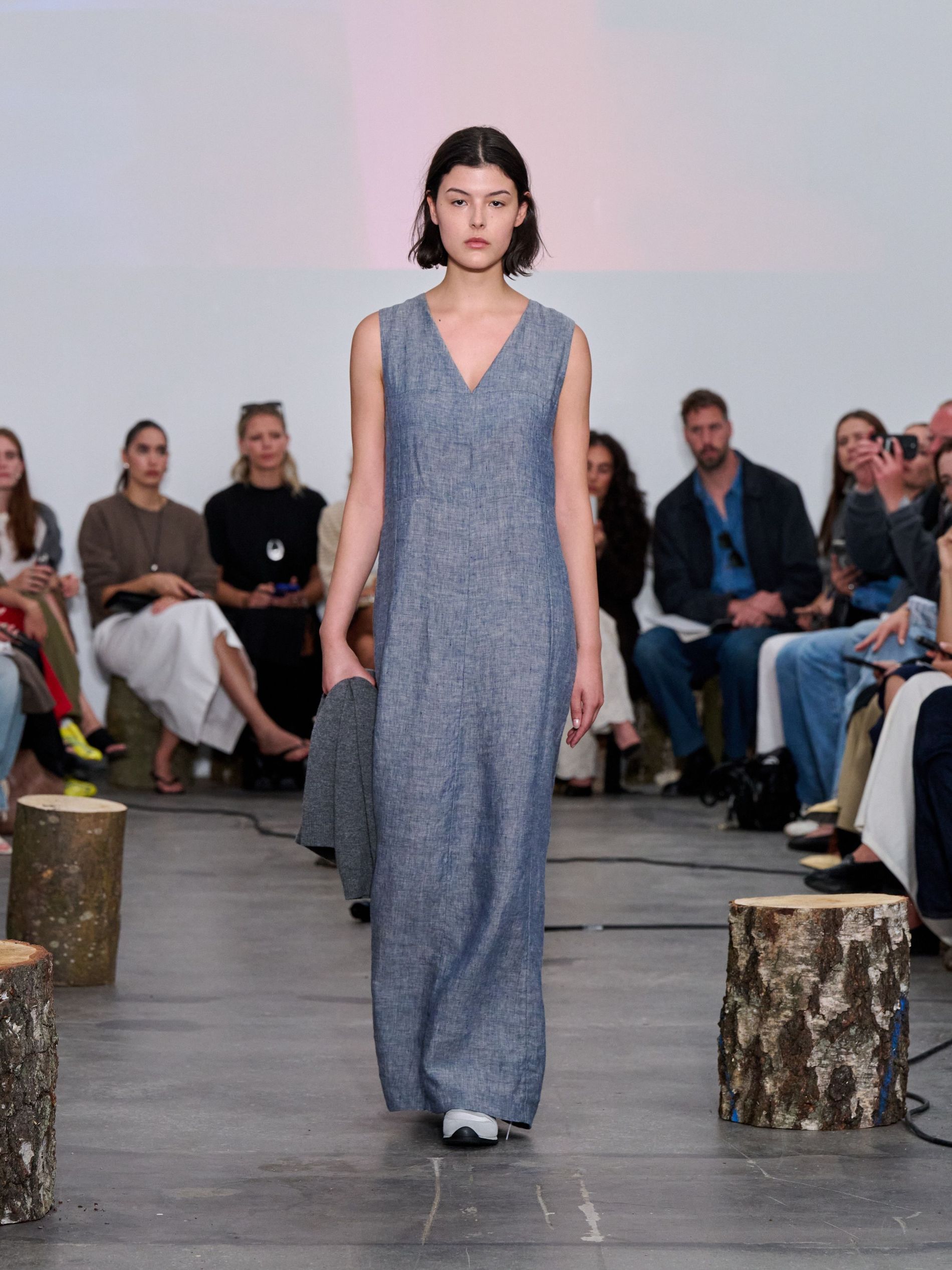 Workwear staples were reimagined in breezy, undyed linen - vests, shorts, and jackets forming the backbone of a no-fuss summer uniform. Denim, first introduced last season, made a confident return in the form of structured Bermuda-style shorts and a matching jacket - offering a subtle edge to the soft, natural materials. And, of course, no aiayu summer is complete without the perfect dress: a structured linen maxi, defined by its sculptural drape and delicate seamwork.