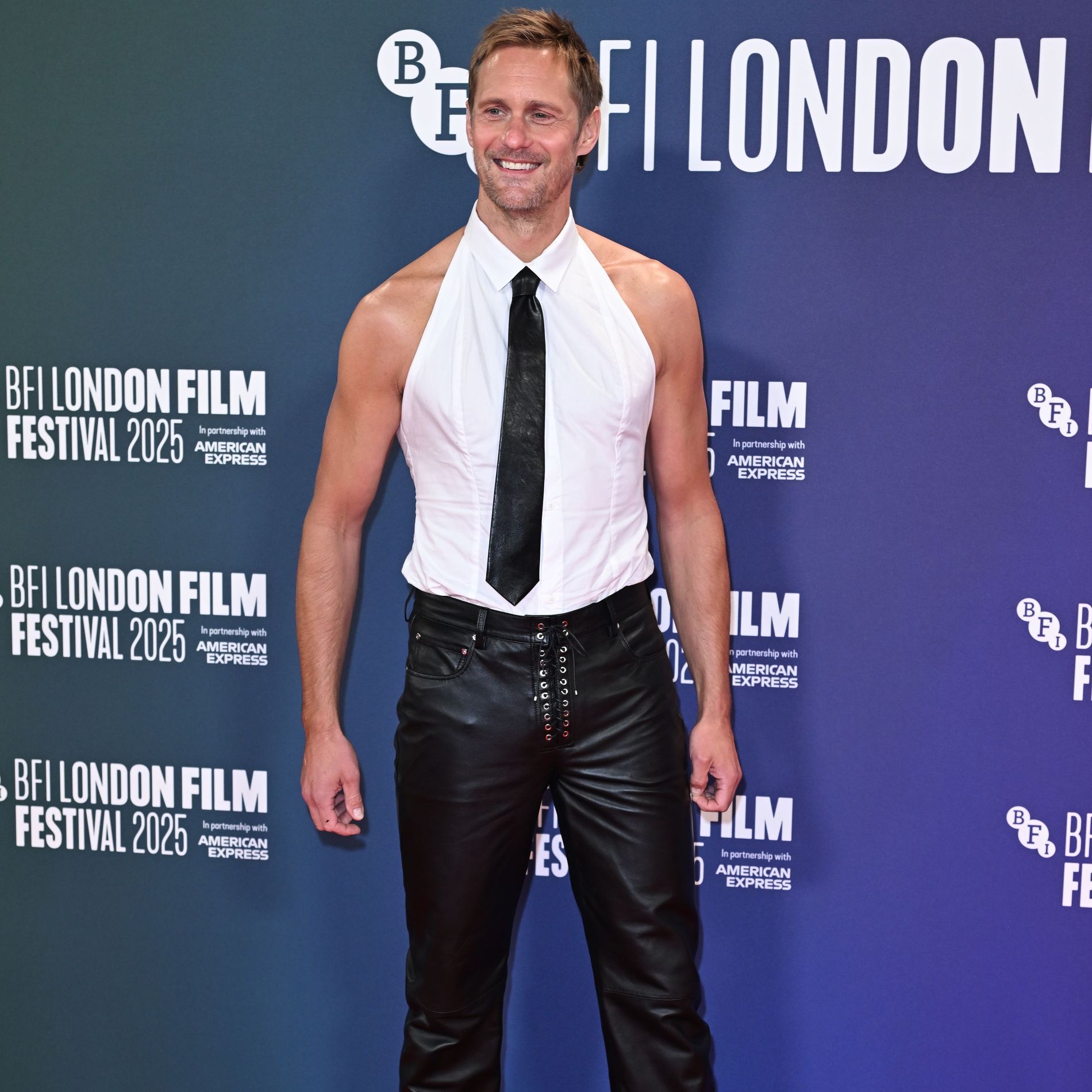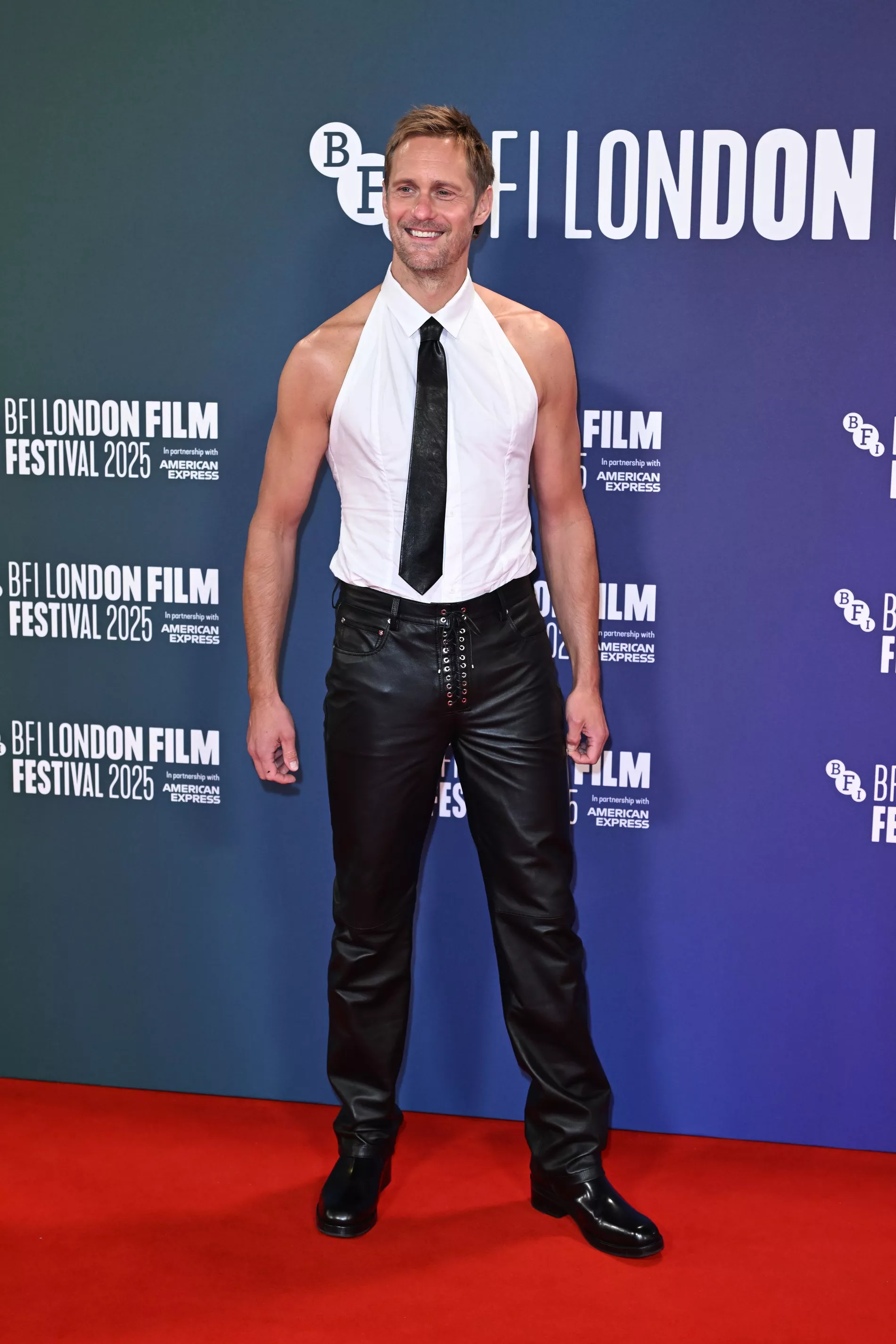 It’s been a press tour wardrobe of the ages for Alexander Skarsgård. Last night at the BFI London Film Festival, the Swedish actor took it up another leather daddy notch.