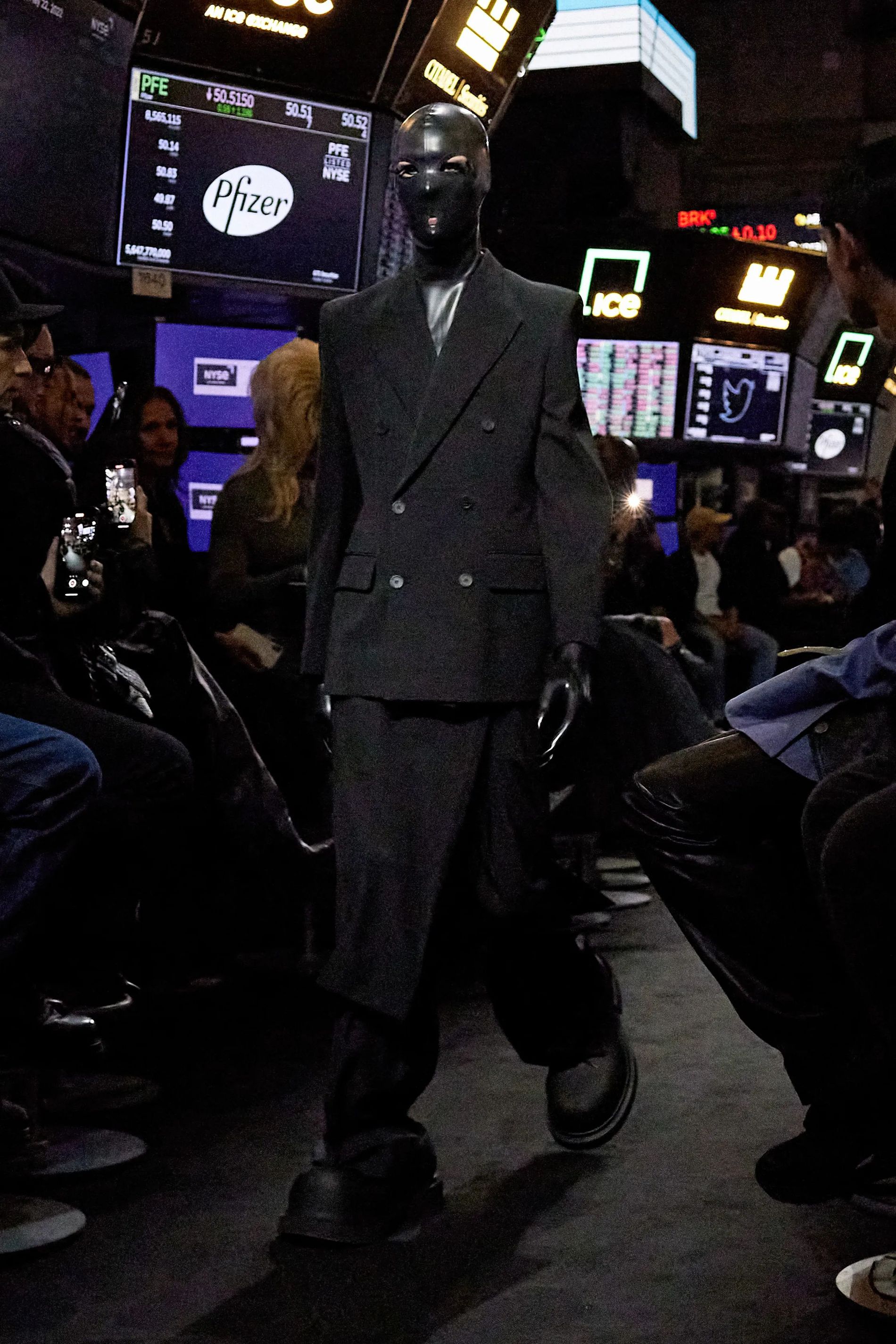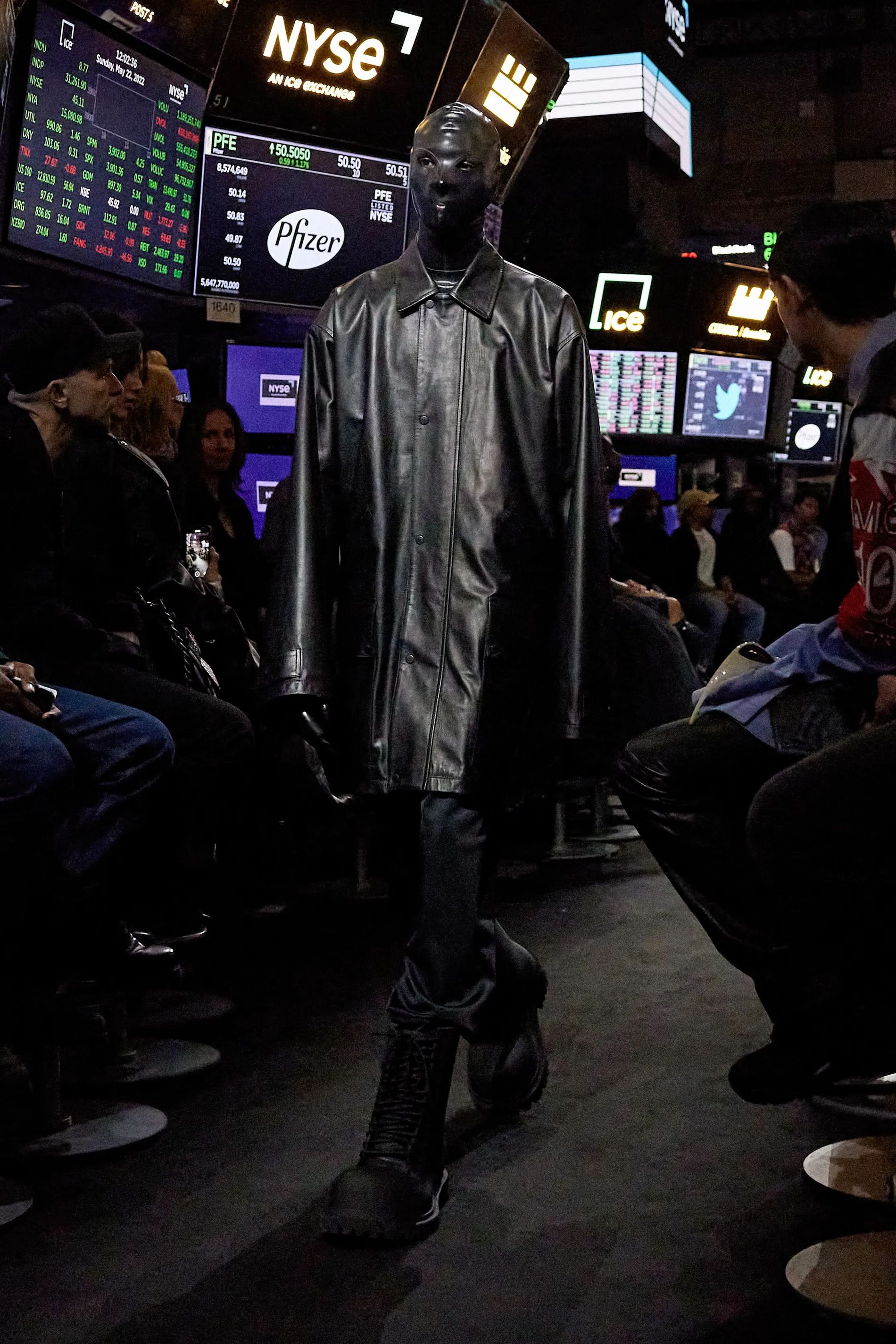 At the legendary New York Stock Exchange, the floor traders were switched to models and star-studded attendees as Demna Gvasalia presented his Resort 2023 collection for Balenciaga. Divided into three parts, the show also introduced the house's collaboration with Adidas. Below, all the looks from the impressive collection that reflects Gvasalia's views on the world we currently live in