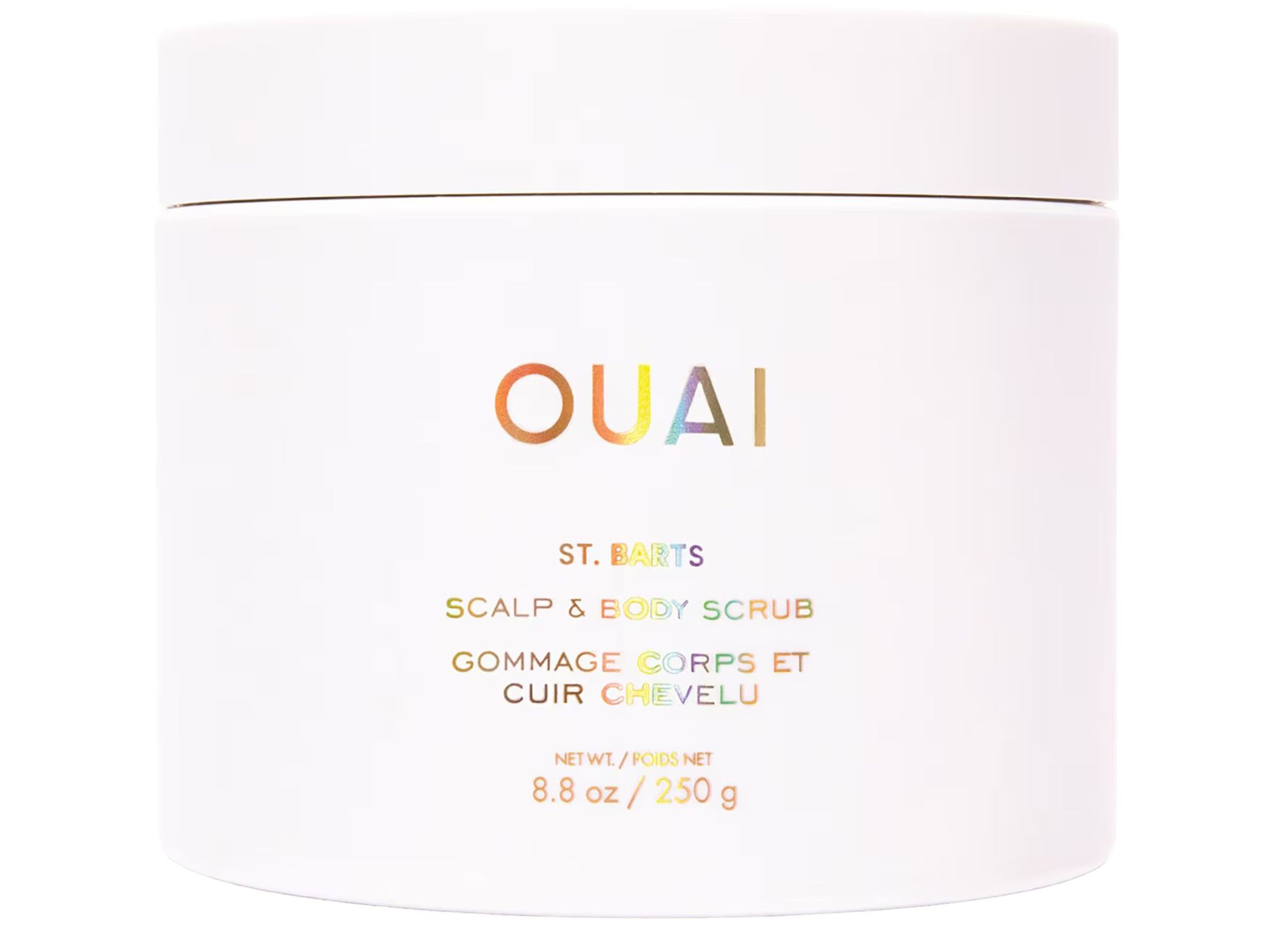 What it is: A dual-use sugar scrub designed for both scalp and body. Contains coconut oil, fermented rice water, and sugar crystals. Lightly foams on contact and scented with Ouai’s tropical St Barts fragrance.