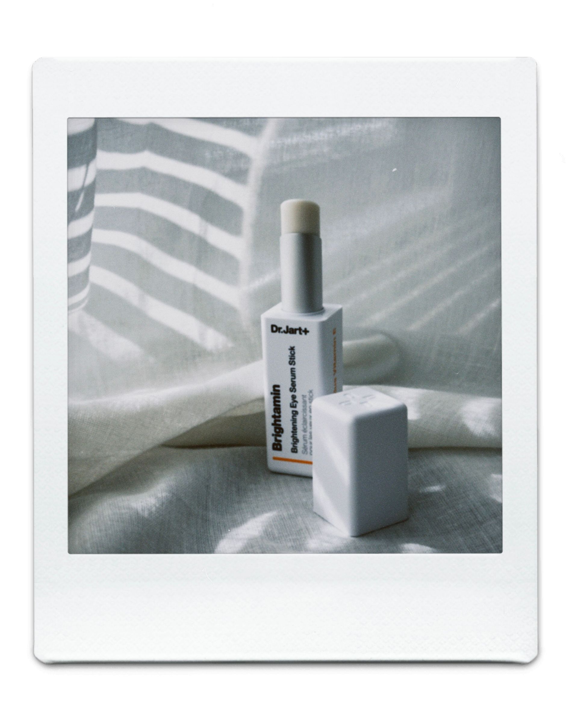 At a glance: A solid “stick” eye treatment with a dual-layer core and outer ring soaked in 20 % Vitamin C and antioxidant Vitamin E, designed to brighten, smooth fine lines, and reduce puffiness around the eyes.