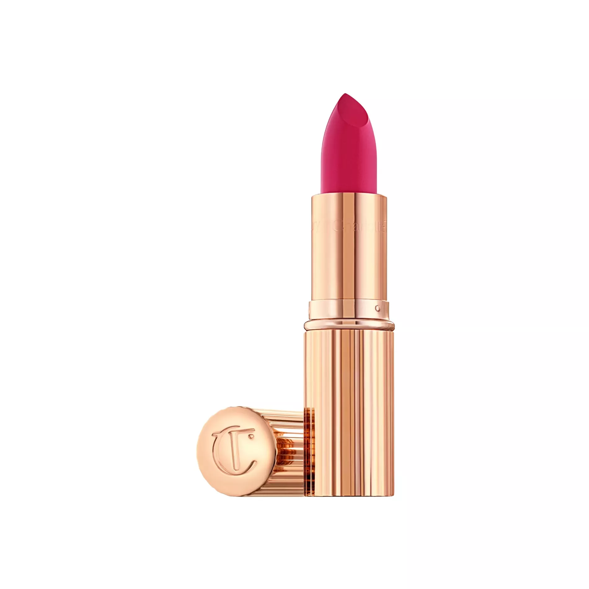 What it is: A satin-finish bullet from Charlotte Tilbury’s K.I.S.S.I.N.G range, delivering medium-to-full pigment with a softly blurring payoff.