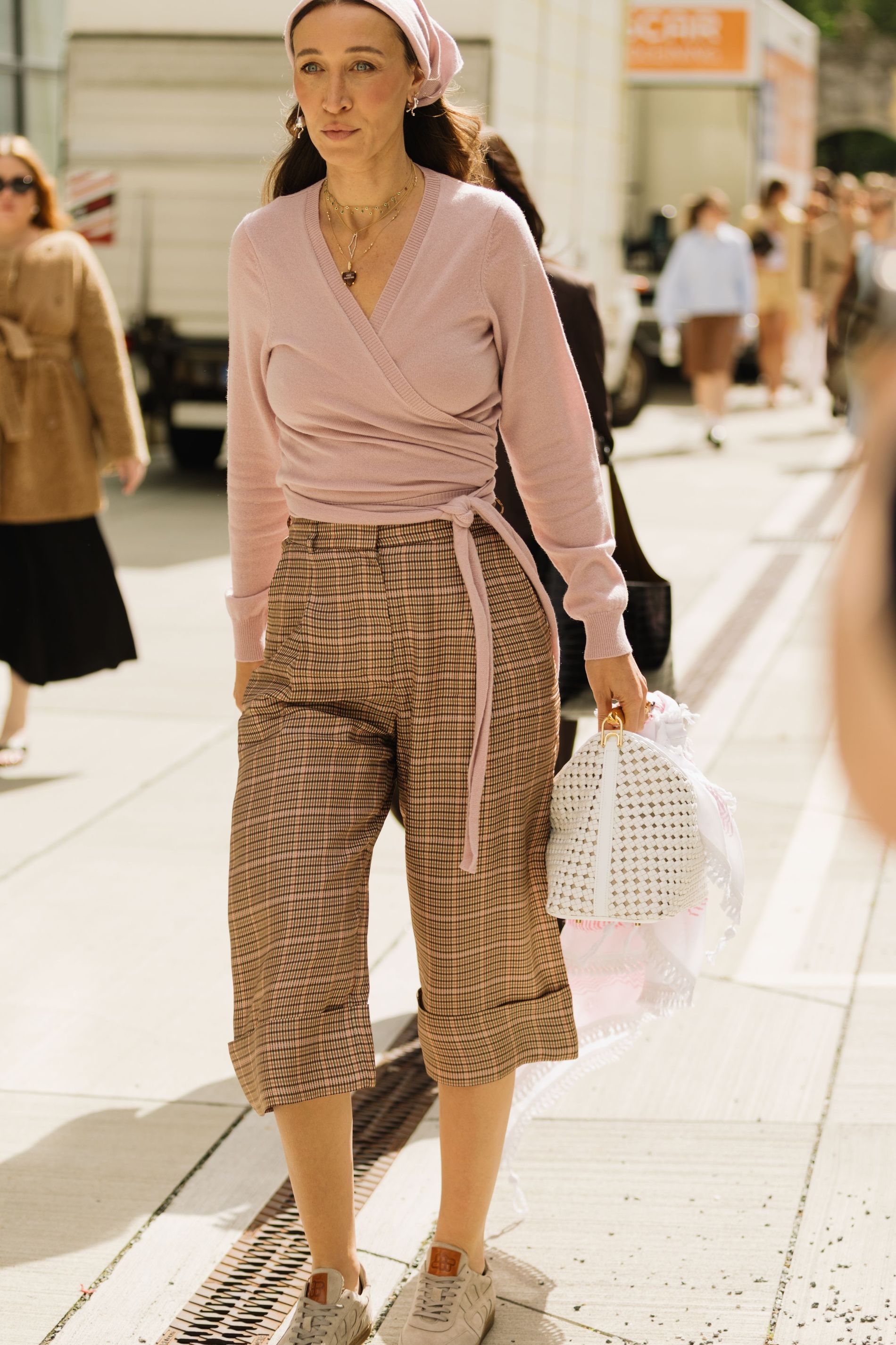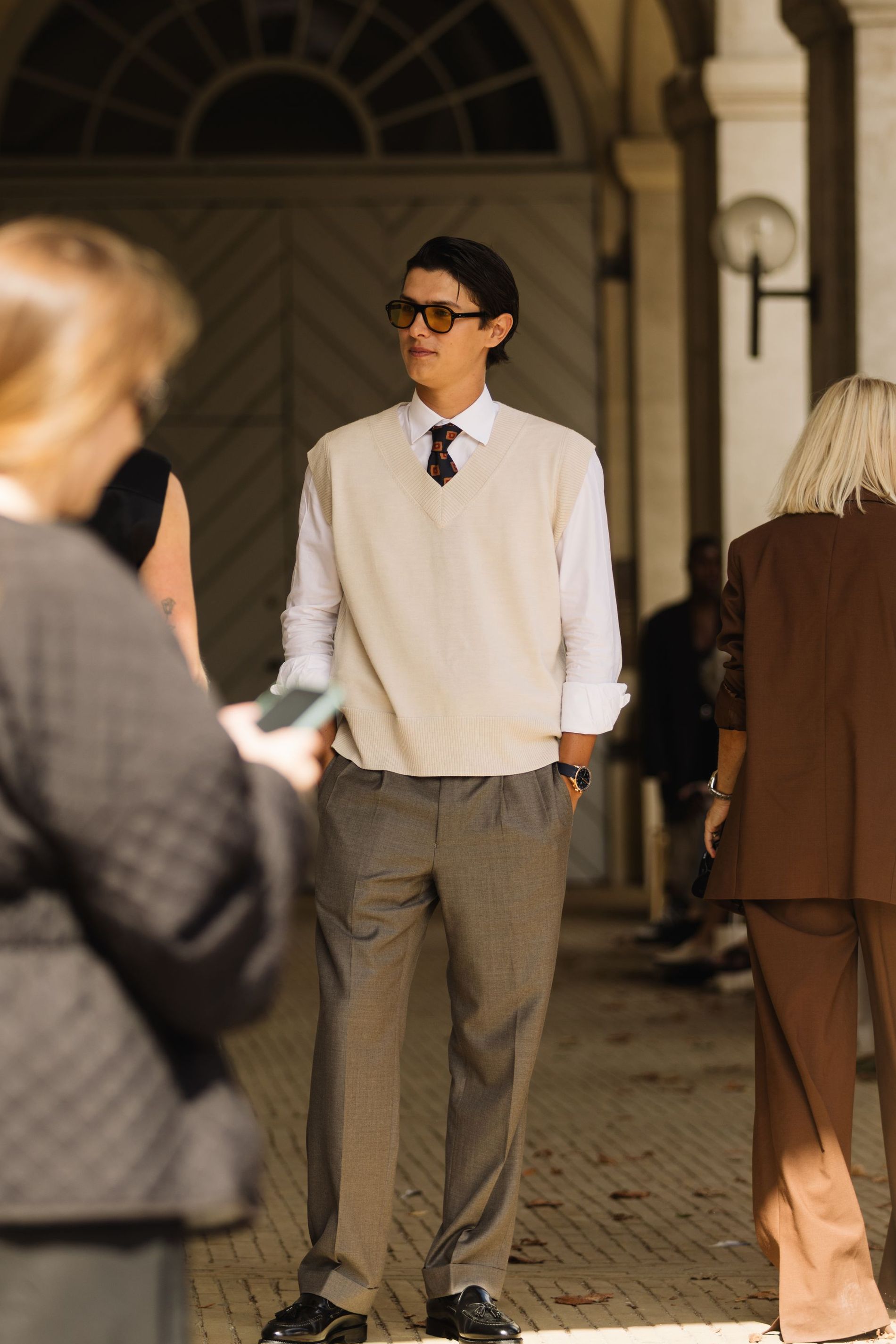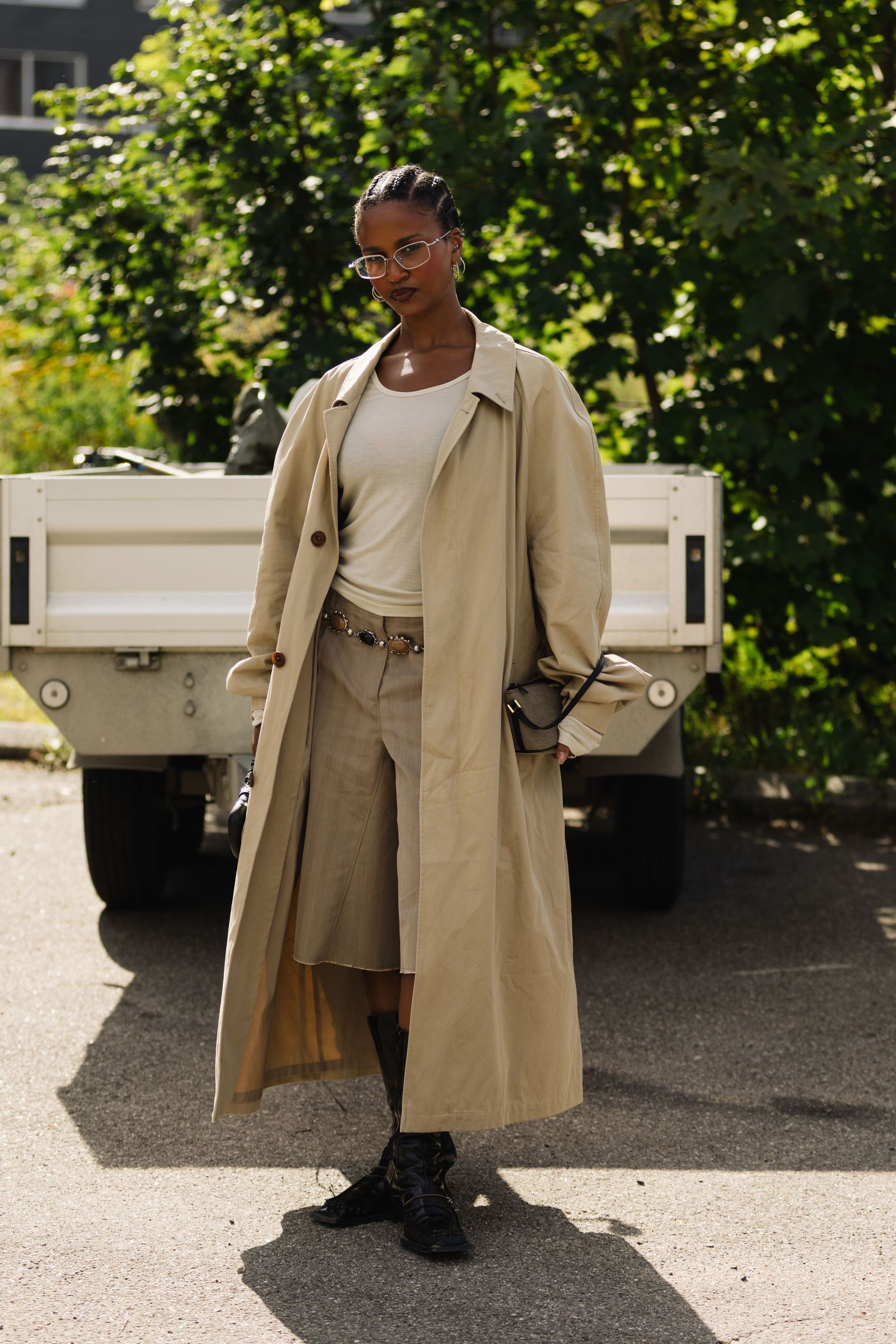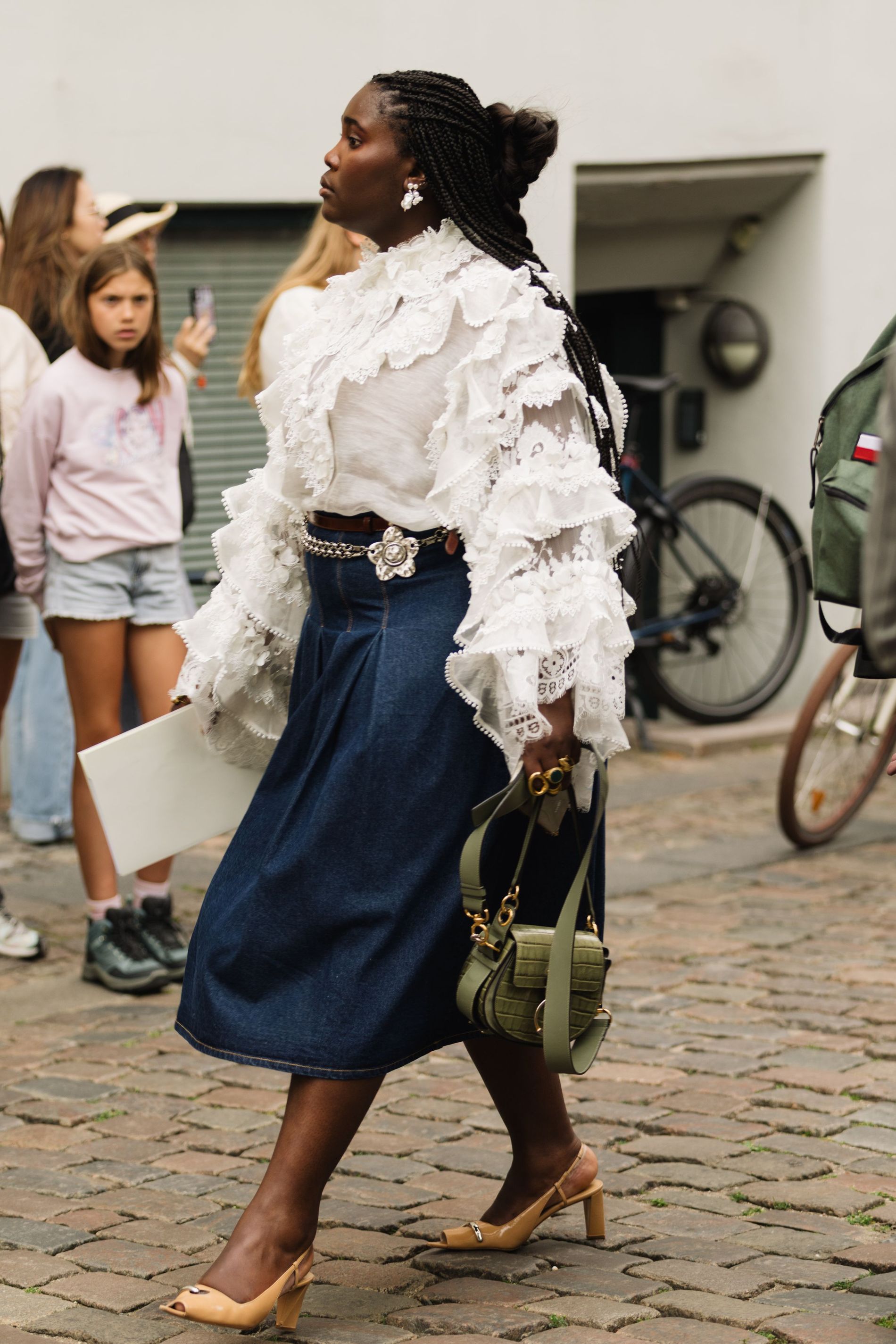 One print was impossible to ignore: polka dots. Whether blown-up and bold or barely-there delicate, dots are punctuating everthing: skirts, shirts, bags, even socks. This season, contrasts are doing the heavy lifting. Utilitarian cargos meet sheer tanks. Slouchy tailoring is softened with pastel lace. Soccer jerseys and denim jorts are still in rotation, but they’re styled with bowler bags and Fendi baguettes slung over the shoulder. Masculine vests and ties are layered with feminine flourishes – belt chains, bows, and yes, more polka dots. Leopard has also snuck its way into the mix, a wink amidst the neutrals.