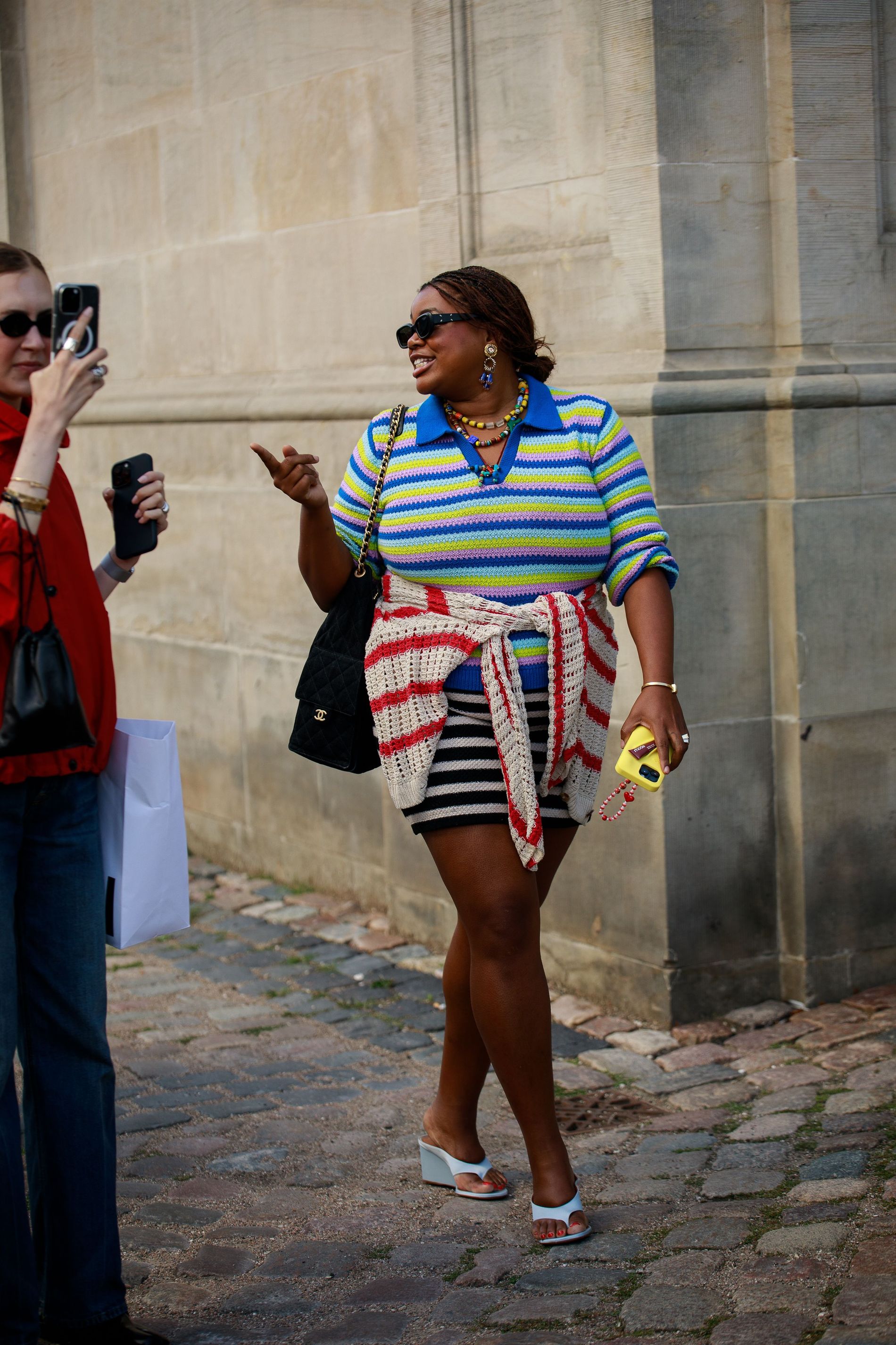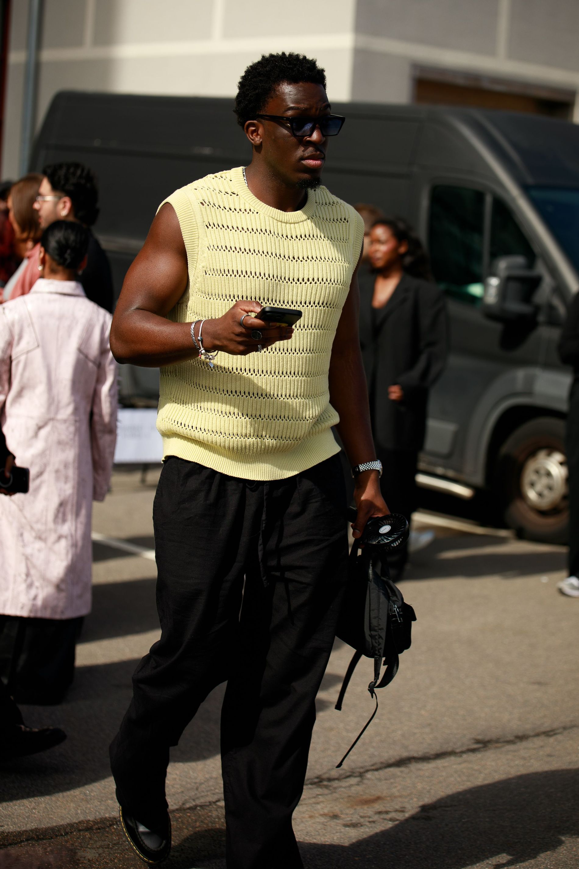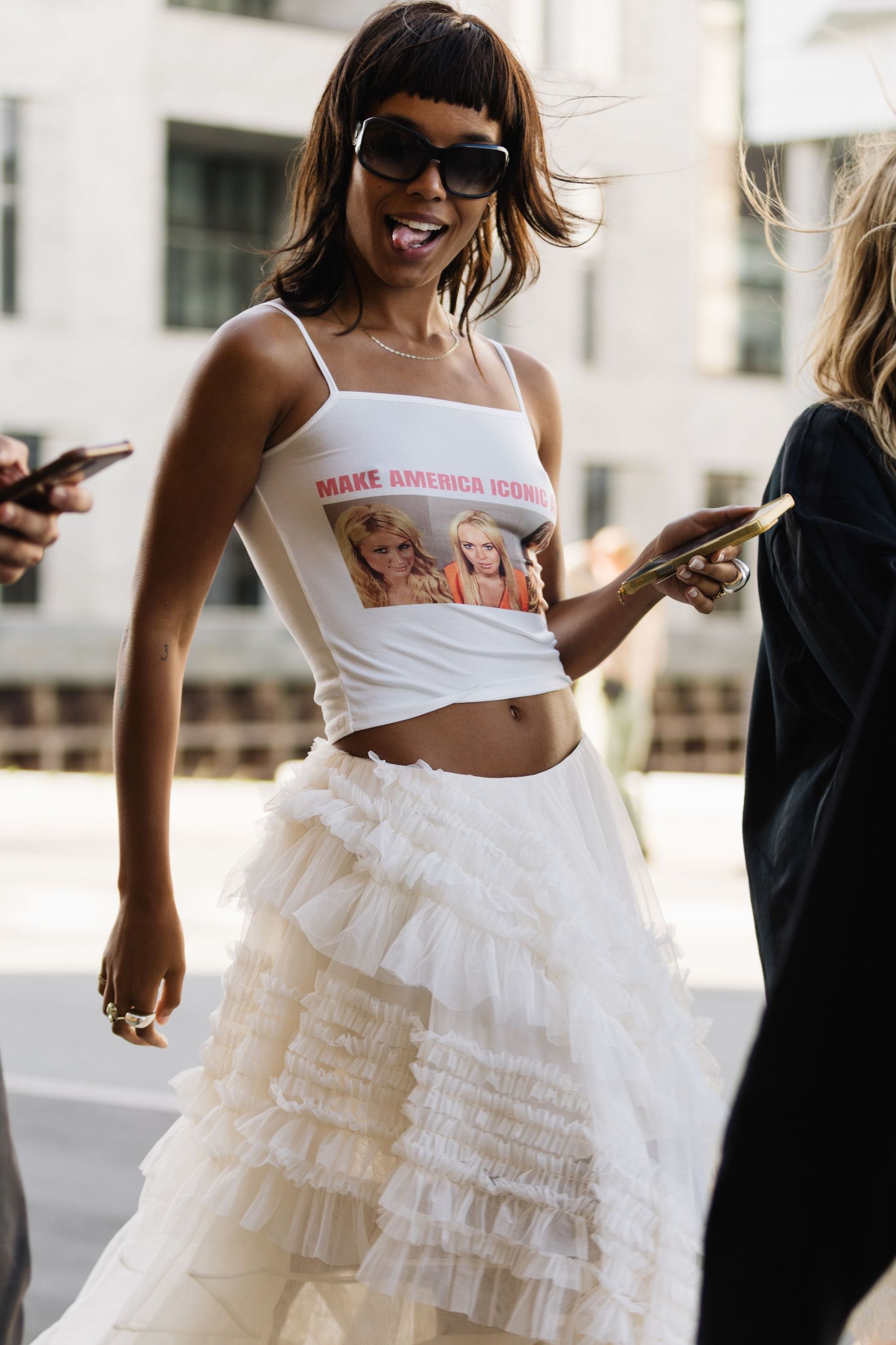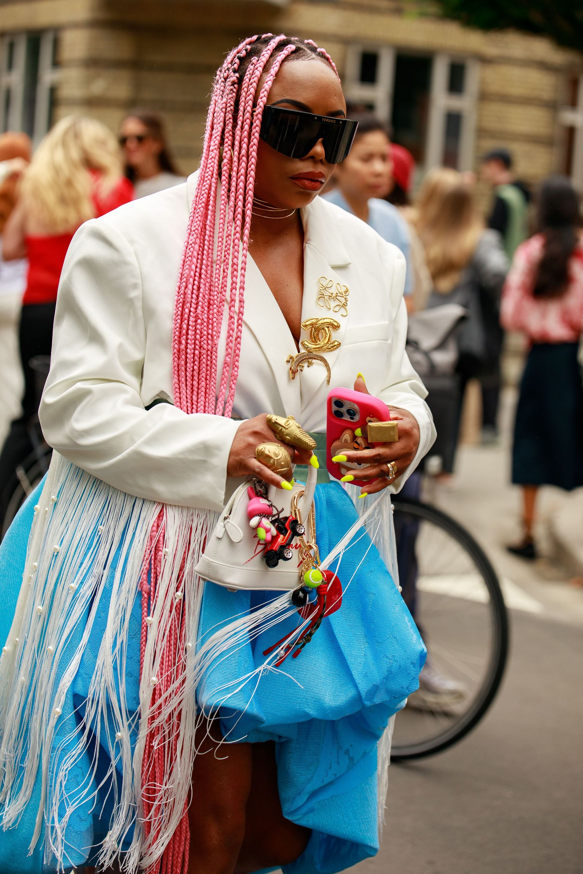 One print was impossible to ignore: polka dots. Whether blown-up and bold or barely-there delicate, dots are punctuating everthing: skirts, shirts, bags, even socks. This season, contrasts are doing the heavy lifting. Utilitarian cargos meet sheer tanks. Slouchy tailoring is softened with pastel lace. Soccer jerseys and denim jorts are still in rotation, but they’re styled with bowler bags and Fendi baguettes slung over the shoulder. Masculine vests and ties are layered with feminine flourishes – belt chains, bows, and yes, more polka dots. Leopard has also snuck its way into the mix, a wink amidst the neutrals.