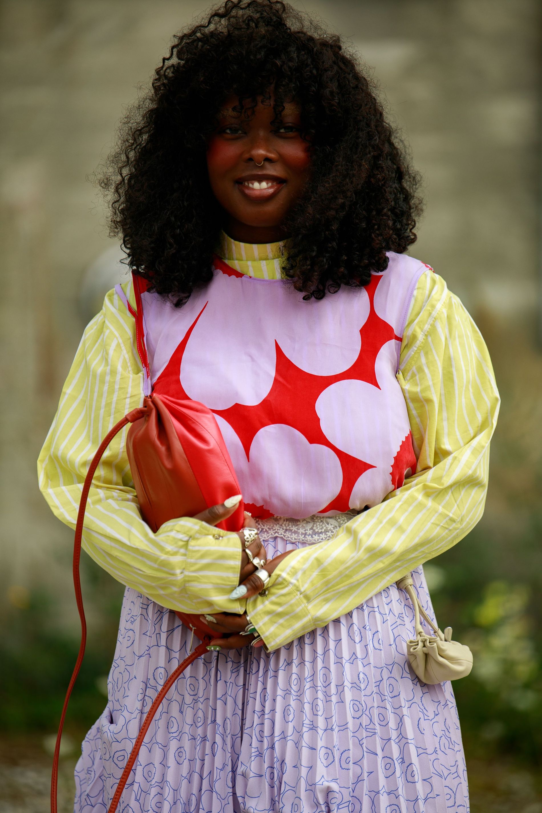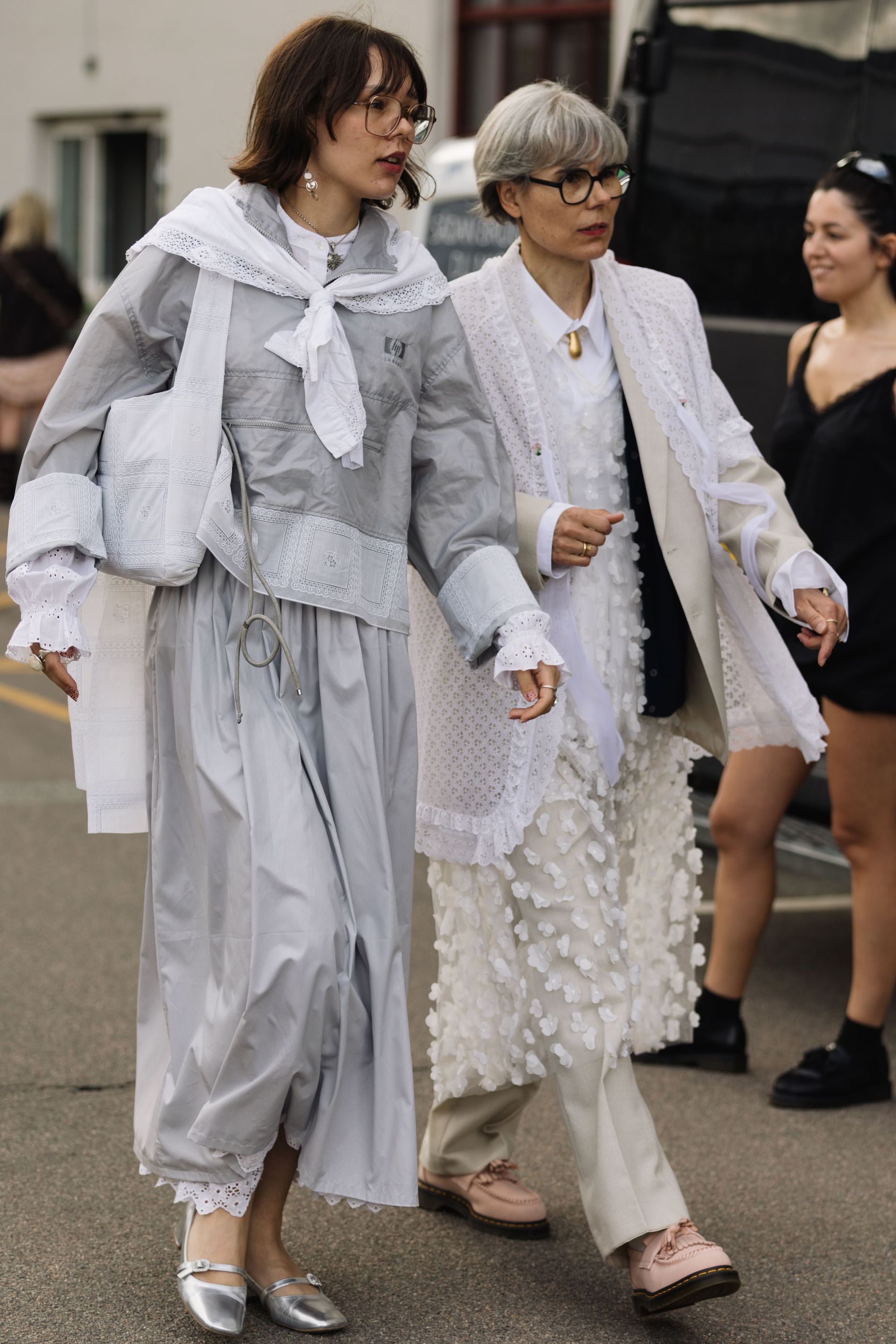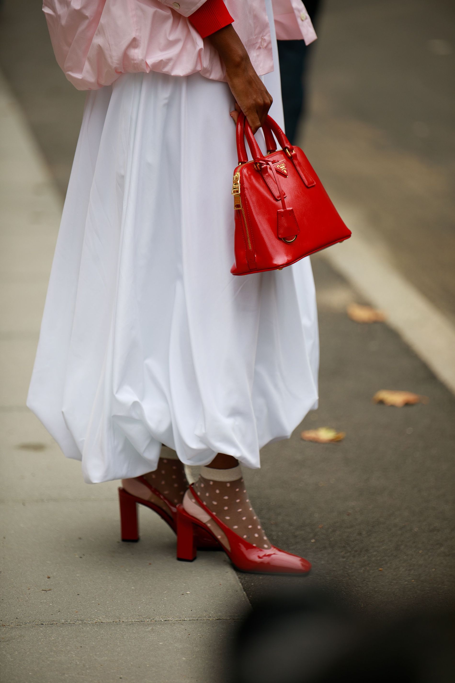 For guests of the SS26 schedule, accessories are speaking up, but not shouting. Metallic hair clips, bandanas, and bursts of cherry red (in bags and charms) are cropping up everywhere, lending personality to pared-back looks. On foot, it’s a three-way split between clogs, kitten heels, and the ever-present black Havaianas.