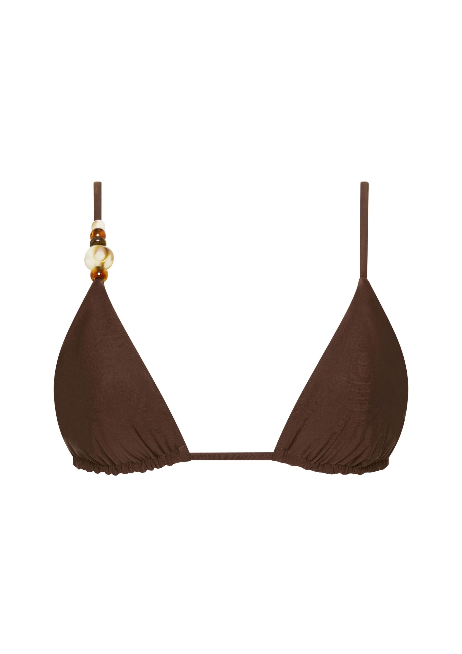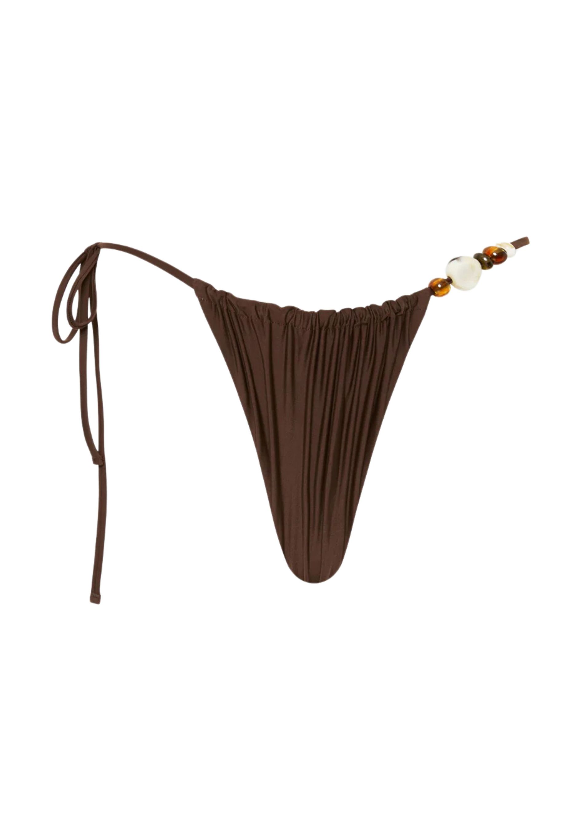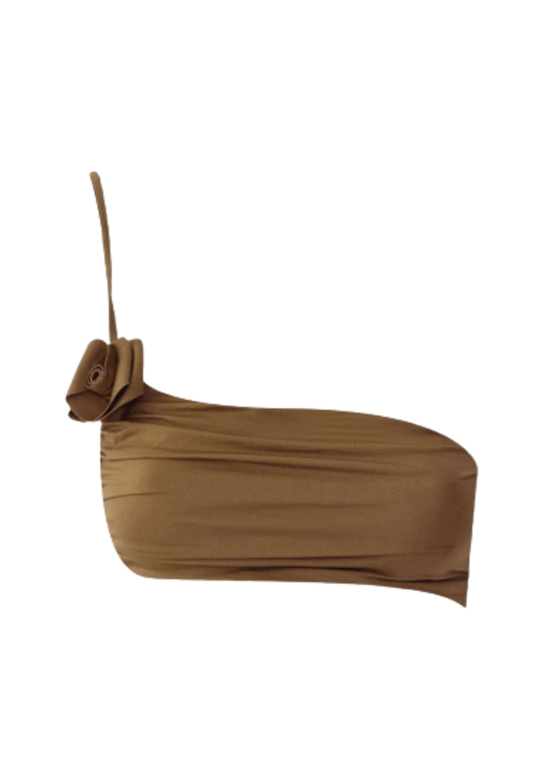 Editor's pick: The one-shoulder bikini with floral applique in the perfect brown hue by Maygel Coronel.