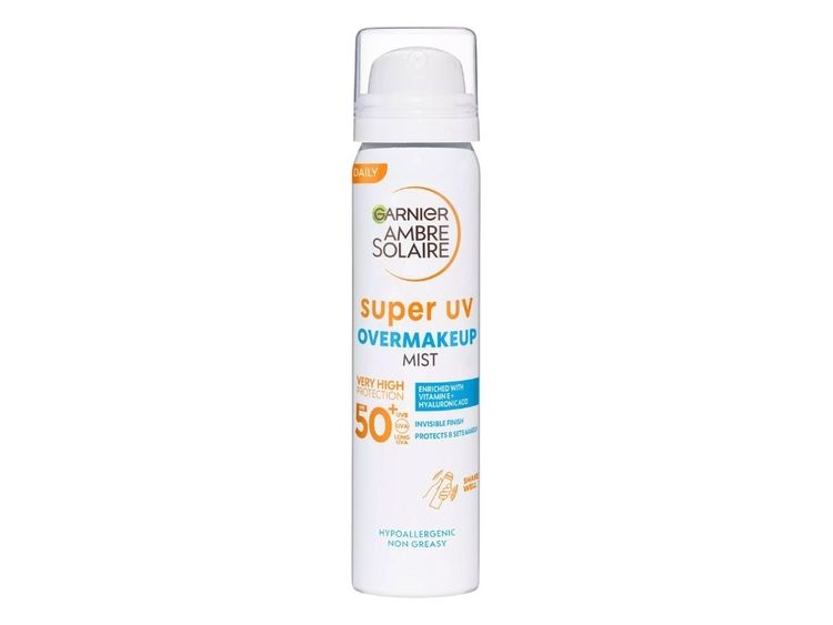 Best sunscreen for oily skin - Ambre Solaire Super UV Over Makeup Mist with Hyaluronic Acid SPF50+ by Garnier