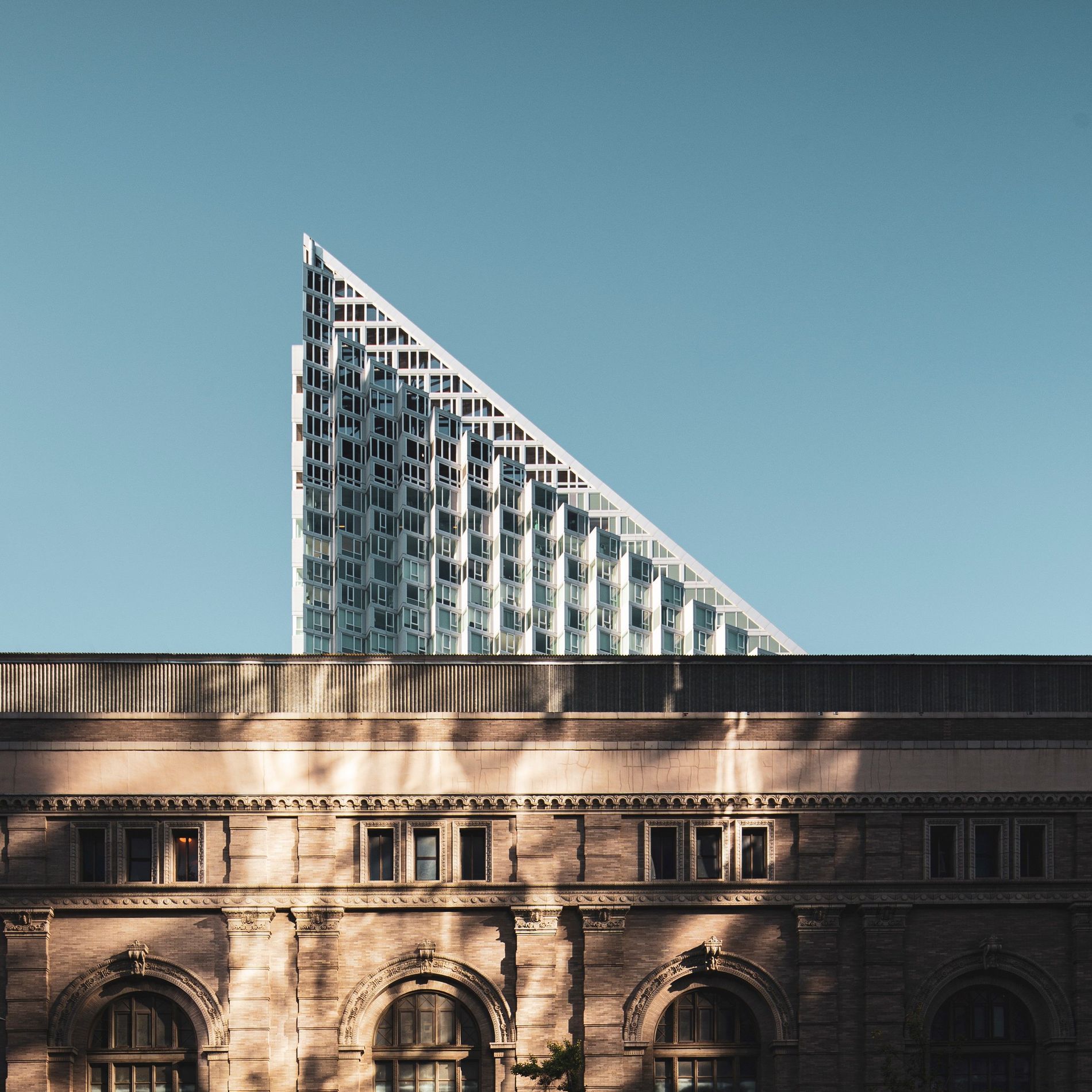 Somewhere between modern perimeter block and the ancient pyramids you start to get the picture of BIG's VIA 57 West. This high-rise transplants the European courtyard typology to Manhattan’s west-side waterfront, reimagining high-density living through a distinctly Scandinavian lens. At street level, the structure rises like a faceted mountain in the middle of the city, while at its core lies a light-filled courtyard offering residents a rare pocket of calm amid the relentless rhythm of New York.