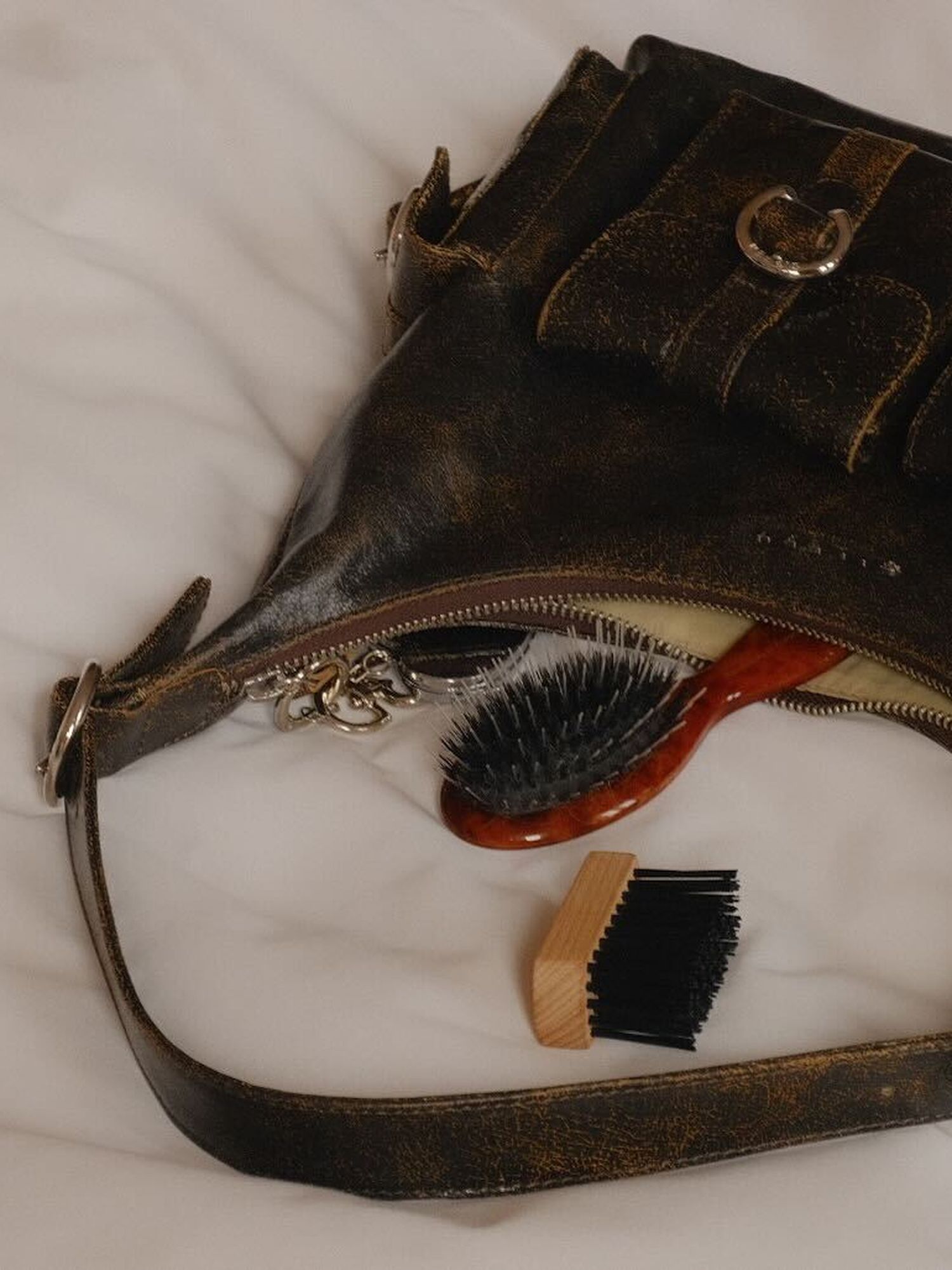 Fretted frizz is a foe well known in the Nordics. Time and time again, we fall victim to helmet hair, windswept matting, and the general havoc our climate wreaks on hair. But in the era of micro bags, it’s a rare occasion that your beloved Mason Pearson will fit next to your phone, keys, and the 15 essential lip products you simply can’t leave home without. If you do, by some miracle, manage to shove it in, your beloved brush will likely emerge marred by the inevitable lint, gum wrappers, and crumbs that seem to collect at the bottom of every bag. So, what’s a girl to do?
