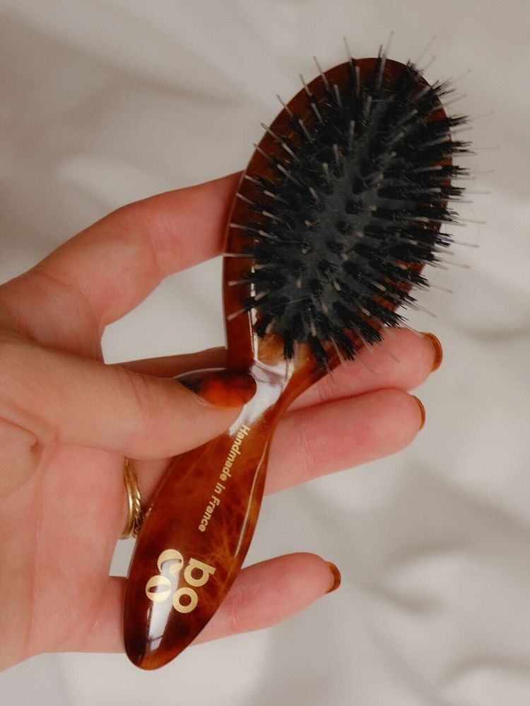 Boco Atelier's hero product is their tortoiseshell-inspired acetate design 'Parisian Presence'. Crafted in lighter tones (making it easy to spot in a dark-lined bag, and stand out from typical black rivals), the brush features two distinct types of bristles, each serving its own purpose. First: nylon. These bristles arc over the brush to detangle even the toughest knots, massaging the scalp to boost blood flow (vital for hair growth and scalp health). Beneath sits a bed of boar hair – a natural fibre that distributes the scalp’s oils, smoothing and adding shine as it goes. As a combination, it results in flawless, frizz-free hair on the go.