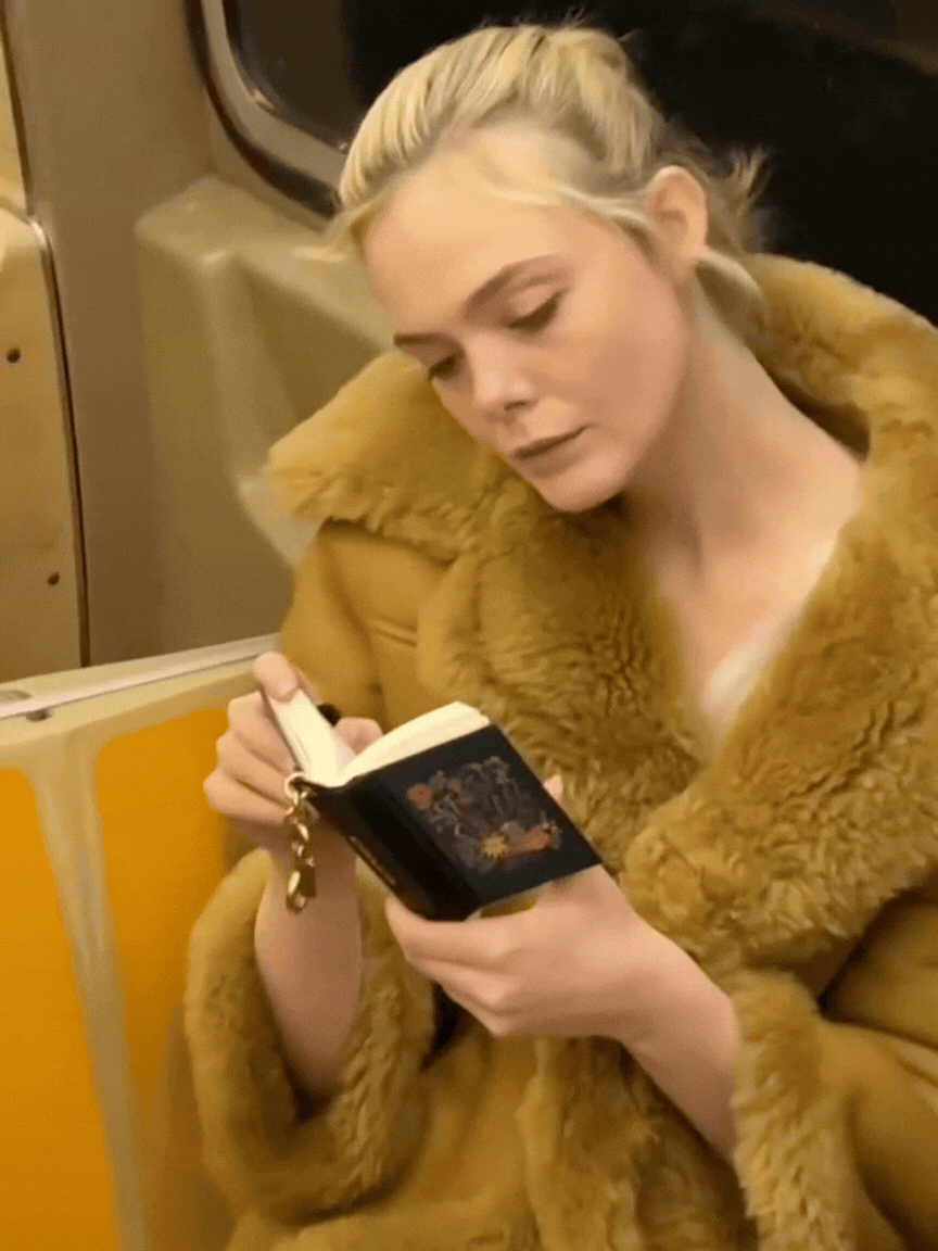 This micro-literary movement was first spotted on the inaugural day of fashion week, adorning Sentimental Value star Elle Fanning. Seated front row at Coach, the star showcased a miniature copy of the Jane Austen classic Sense & Sensibility, produced by the brand and clipped to her Tabby 26 Matelasse bag. Even better, Fanning was observed actually reading the tiny tome later on the subway.
