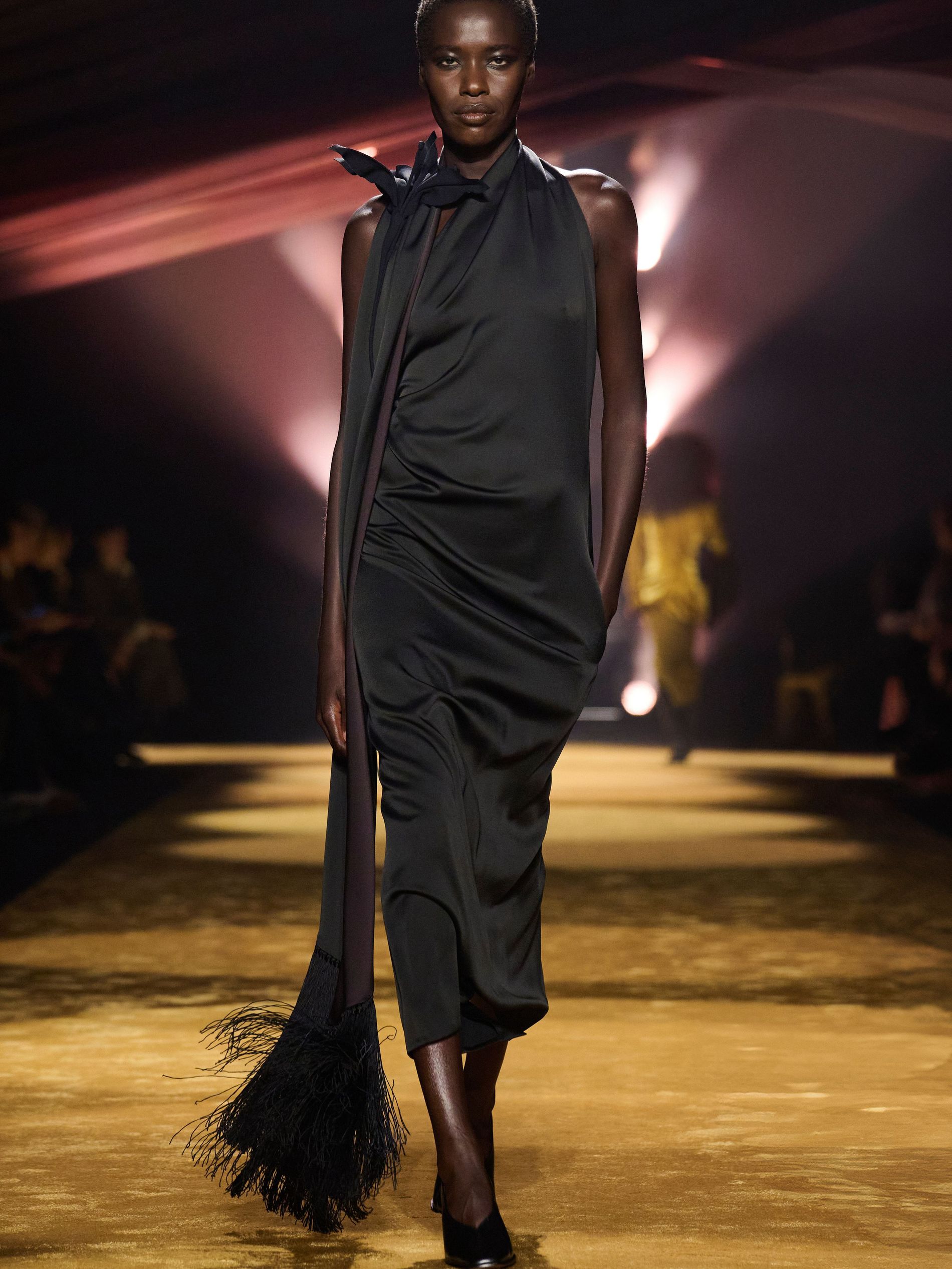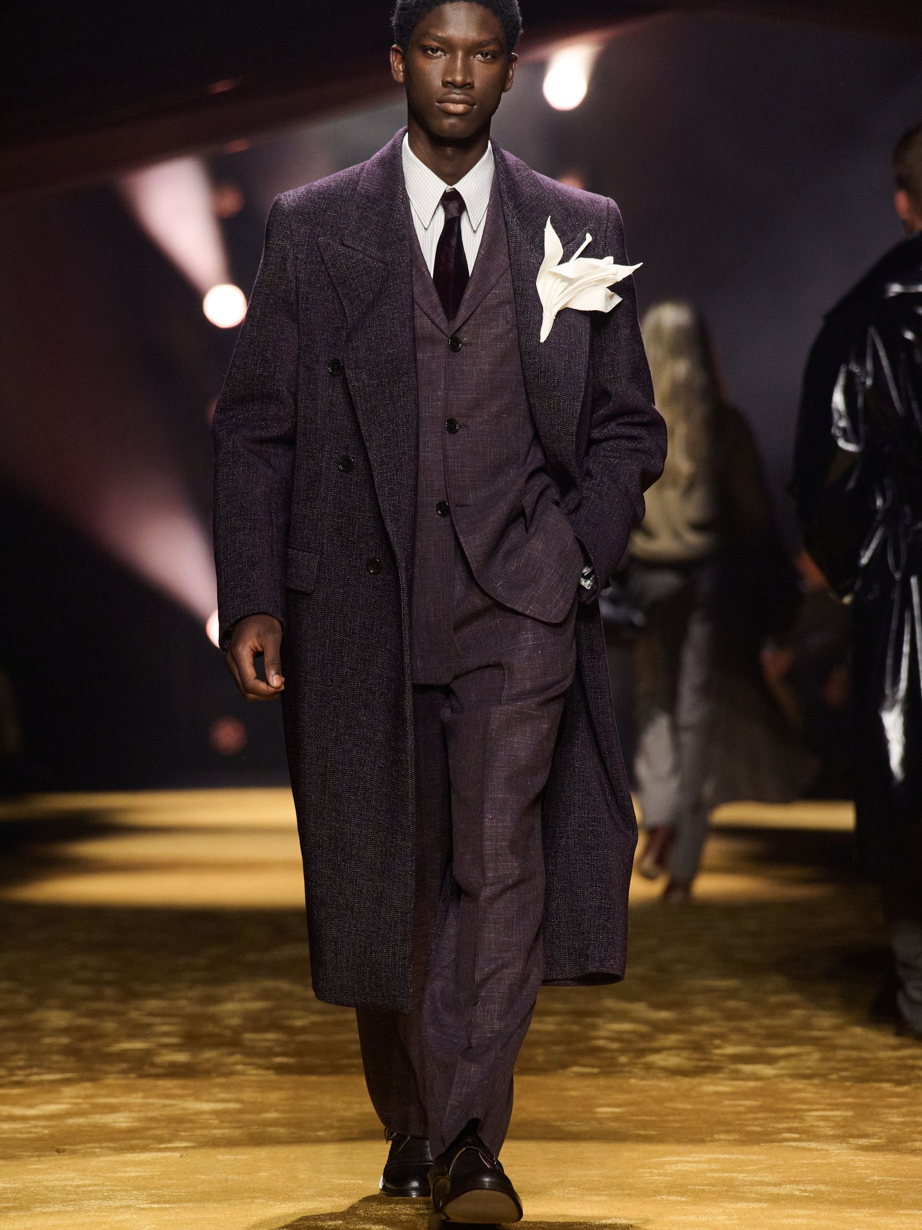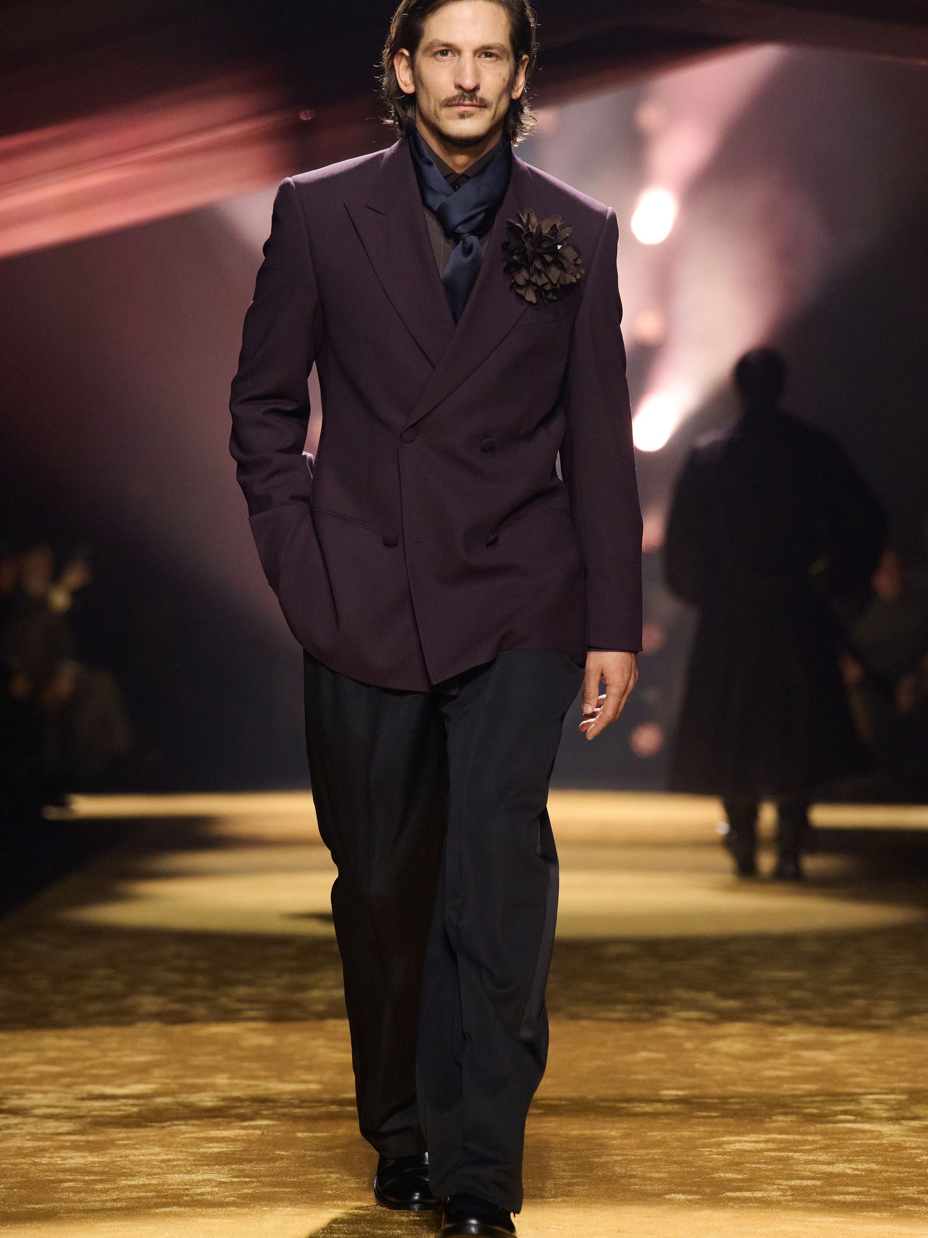 Boss creative director Marco Falcioni has been mining the brand’s ’80s and ’90s catalogues, those painstakingly assembled full looks photographed flat for buyers, accessories perfectly placed. “The inspiration for my team and me came from creative trailblazers – artists, actors, writers, and musicians – who, at defining moments of their careers, choose to wear tailoring,” he said backstage. The showcase was soundtracked by The Passions’ 'I'm in Love With A German Film Star': a swooning ode to louche, off-duty glamour, and it channelled a distinctly late-20th-century mood: that studied nonchalance of a man in a corner booth, jacket slung just so, with a slightly dishevelled collar. “In a period where we consume time, I would like time to consume us,” Falcioni mused.