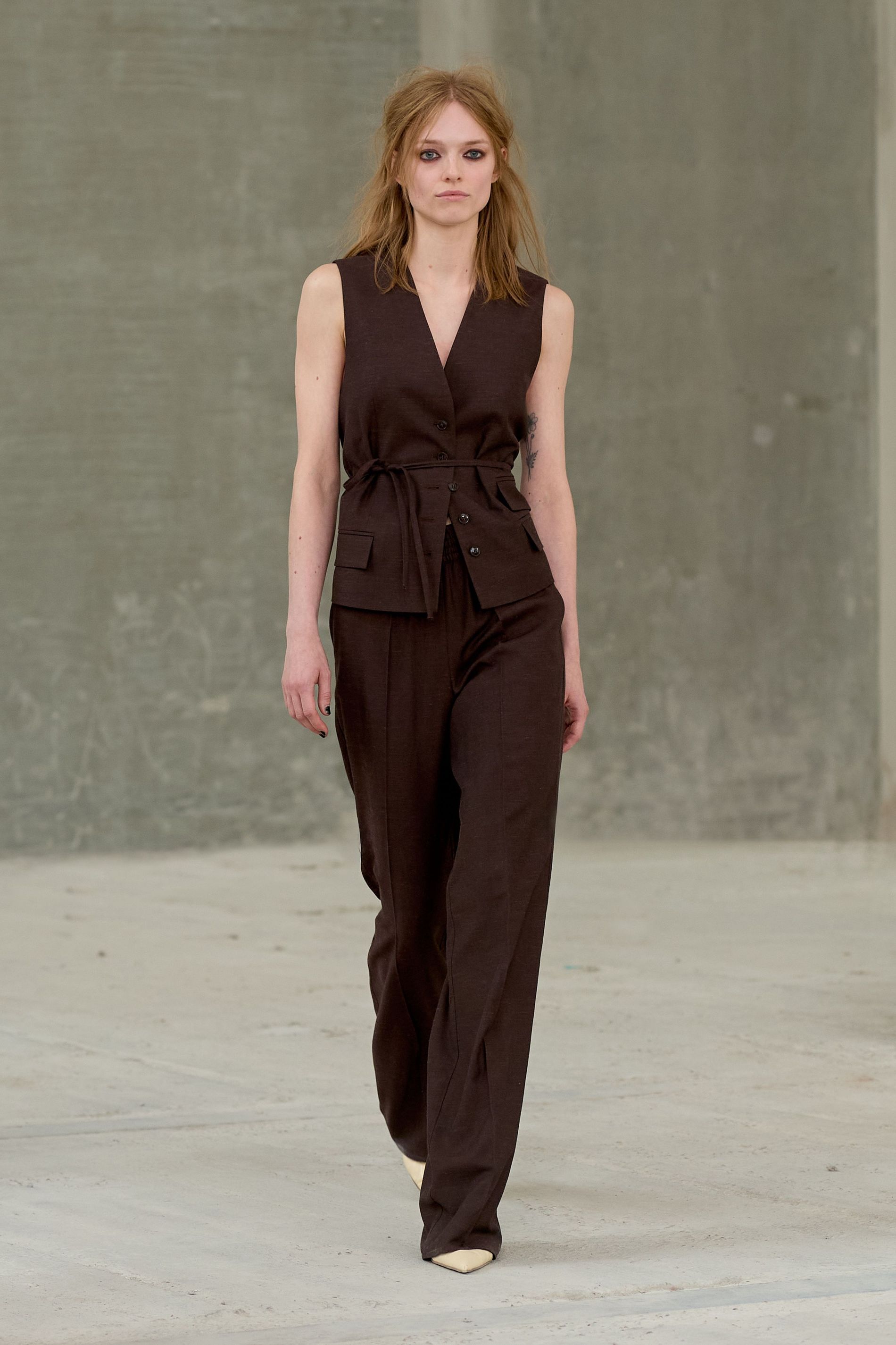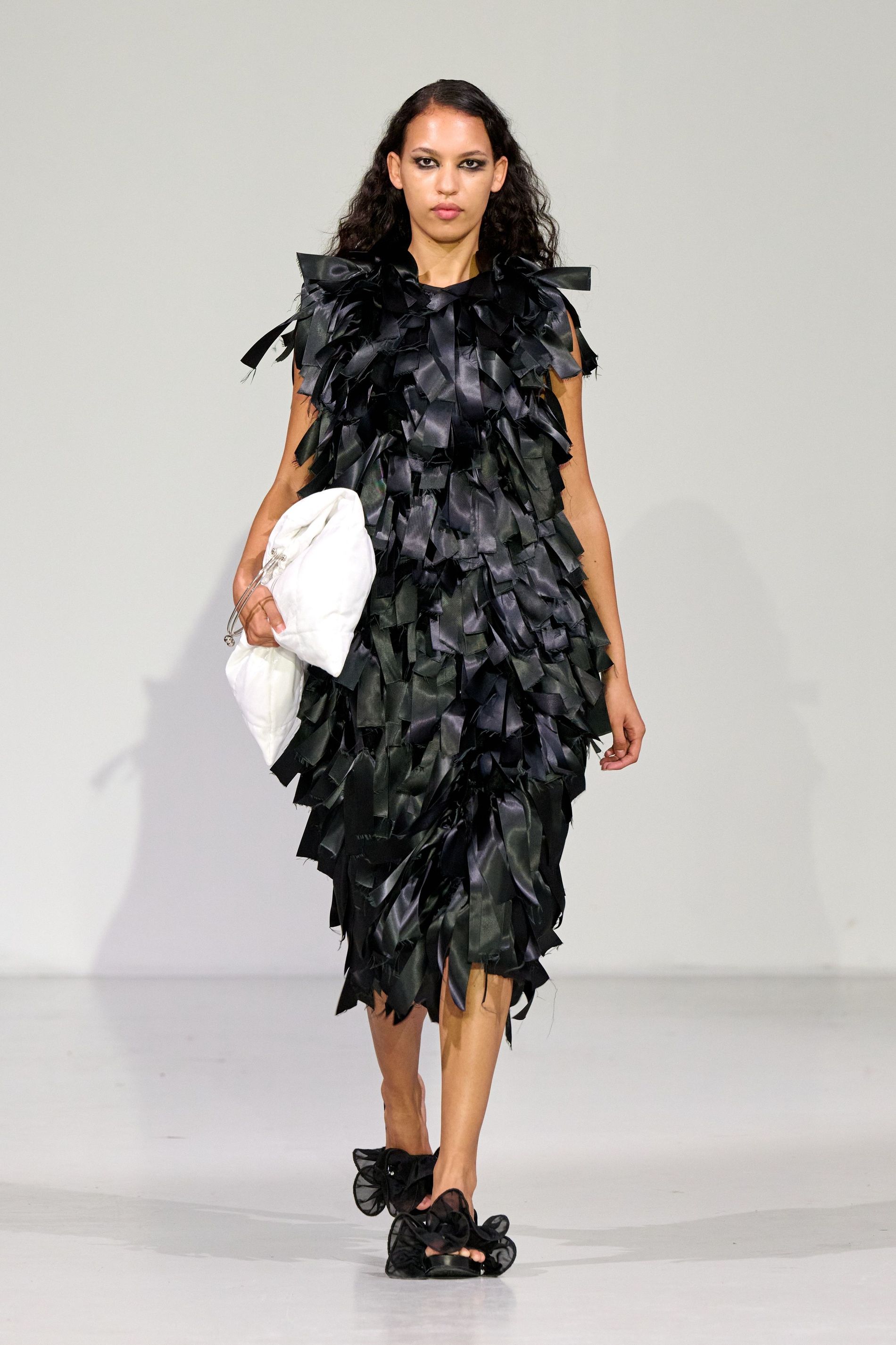 At Herskind, the backstage beauty team's goal was to recreate “having the best night of your life." Nicci Welsh built matte, airy volume with Oribe's Matte Waves and Dry Texturising Spray, rubbing strands in the opposite direction to encourage flyaways. Makeup artist Melina Wolff skipped eye primer so shadow and liner could move and blur on their own. Black and brown liners were smudged into lash lines, with Caia's ‘Stockholm’ shadow was swept out towards the brows for added depth. To finish the look, a swipe of ‘Dew it yourself’ balm was applied over the lids to replicate that slightly damp, next-morning sheen.