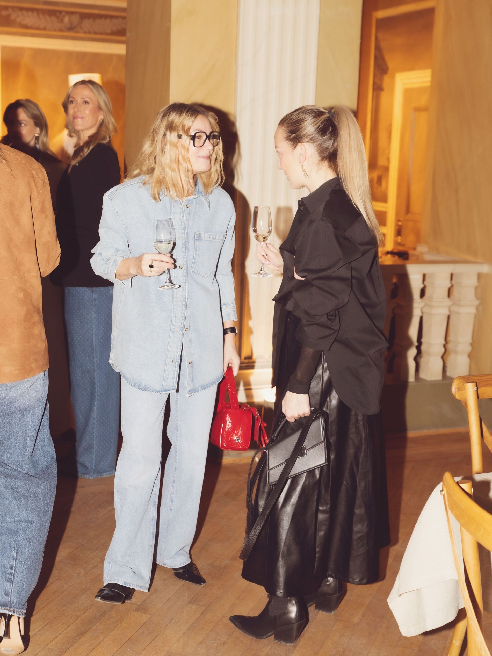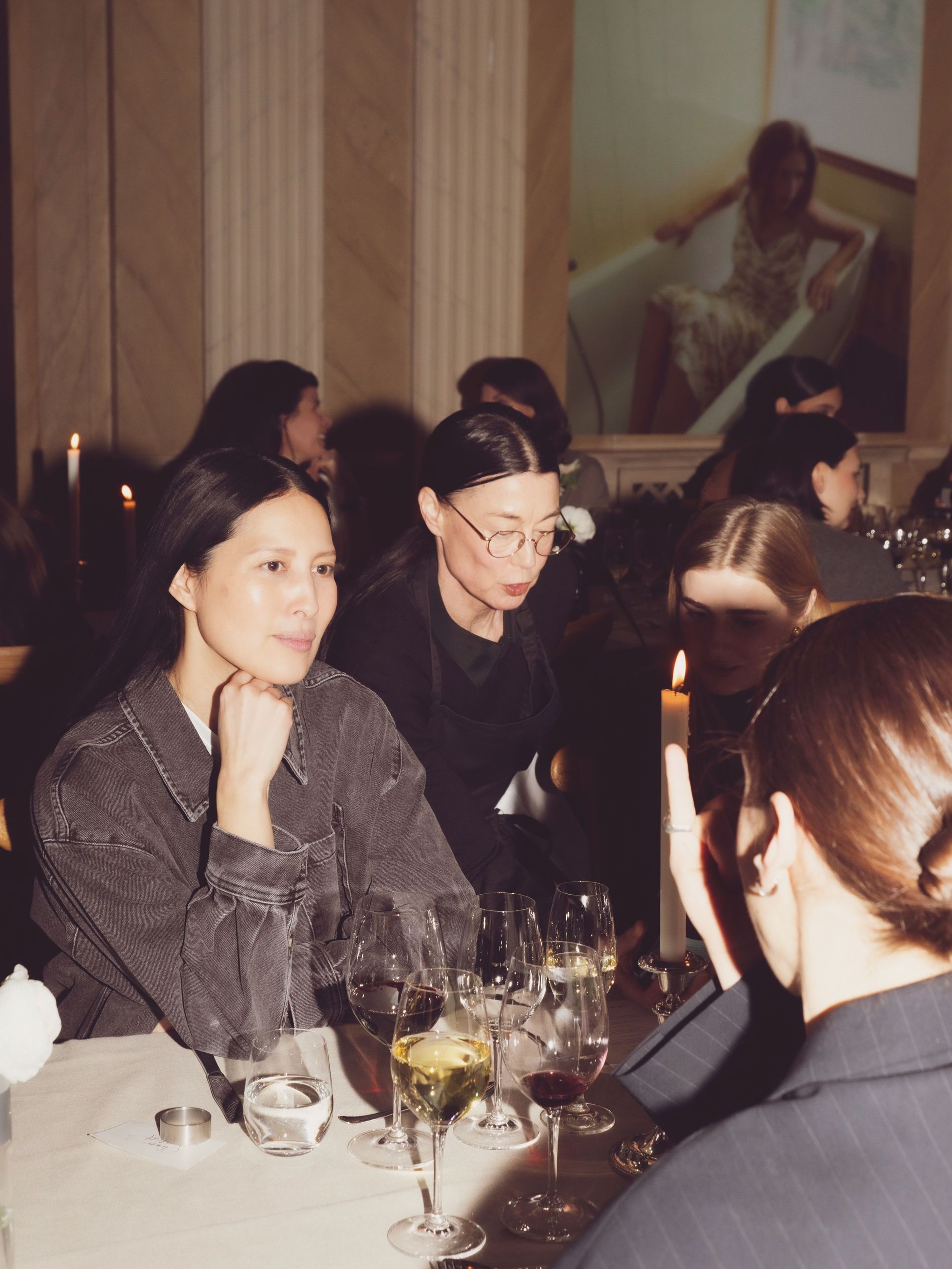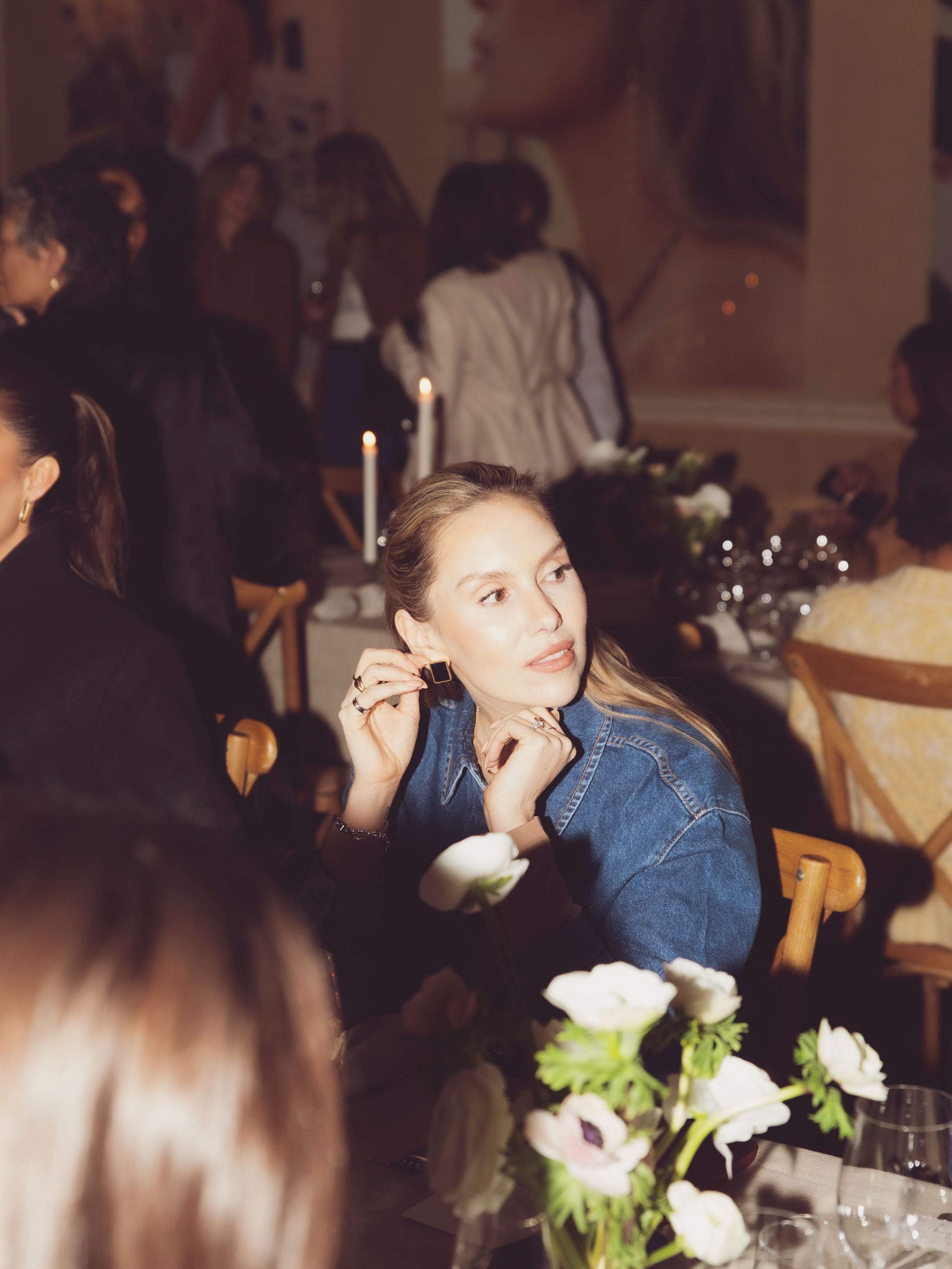 Champagne, candlelight and sculptural denim set the scene at an intimate dinner to welcome Camilla Pihl to Sweden