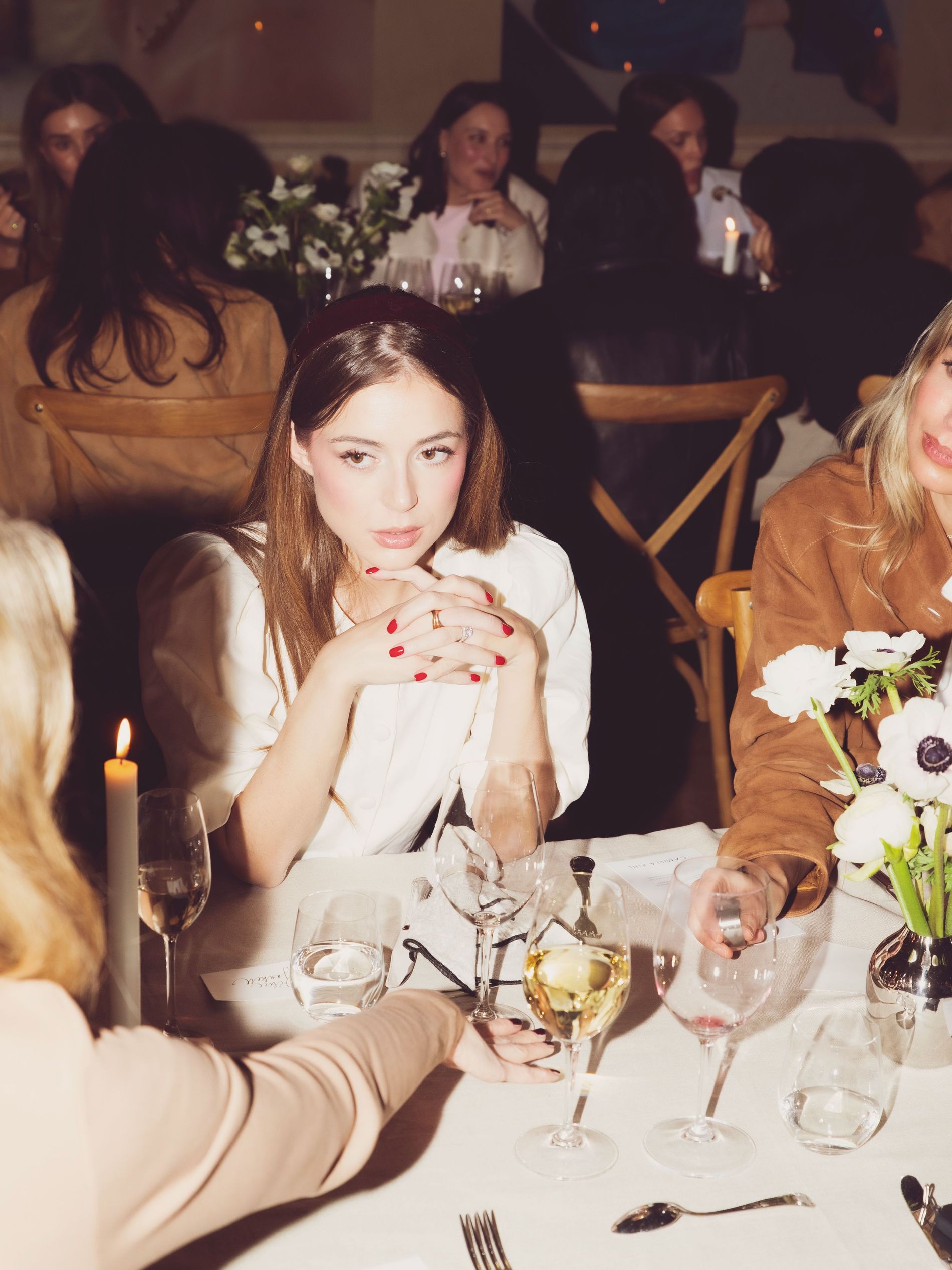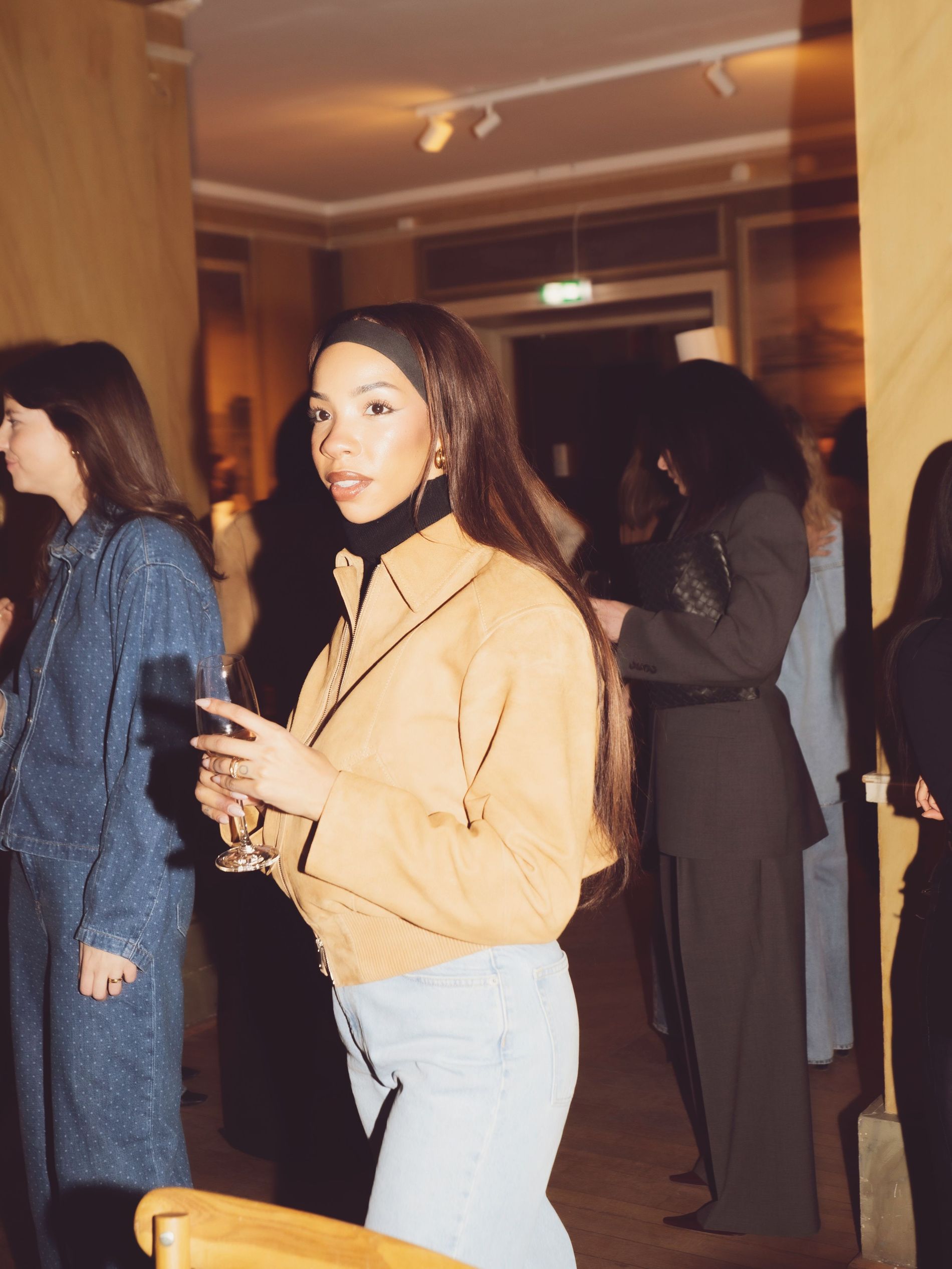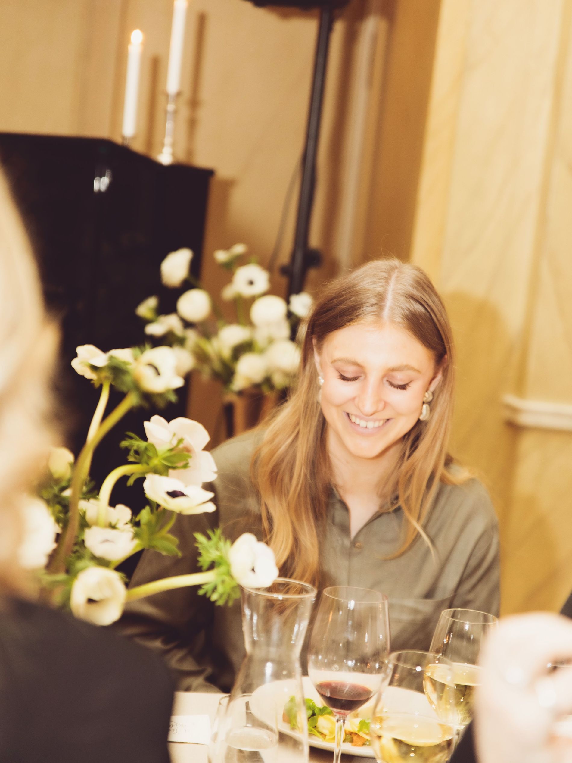 Champagne, candlelight and sculptural denim set the scene at an intimate dinner to welcome Camilla Pihl to Sweden