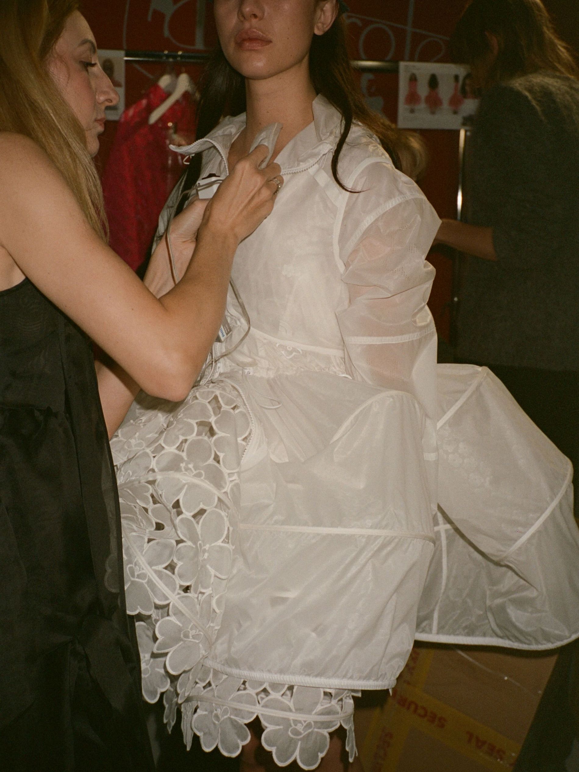 For a show about holding emotion close and letting creativity pulse just beneath the surface, Cecilie Bahnsen found its perfect backstage beauty match: lived-in, light-filled, and utterly sincere.