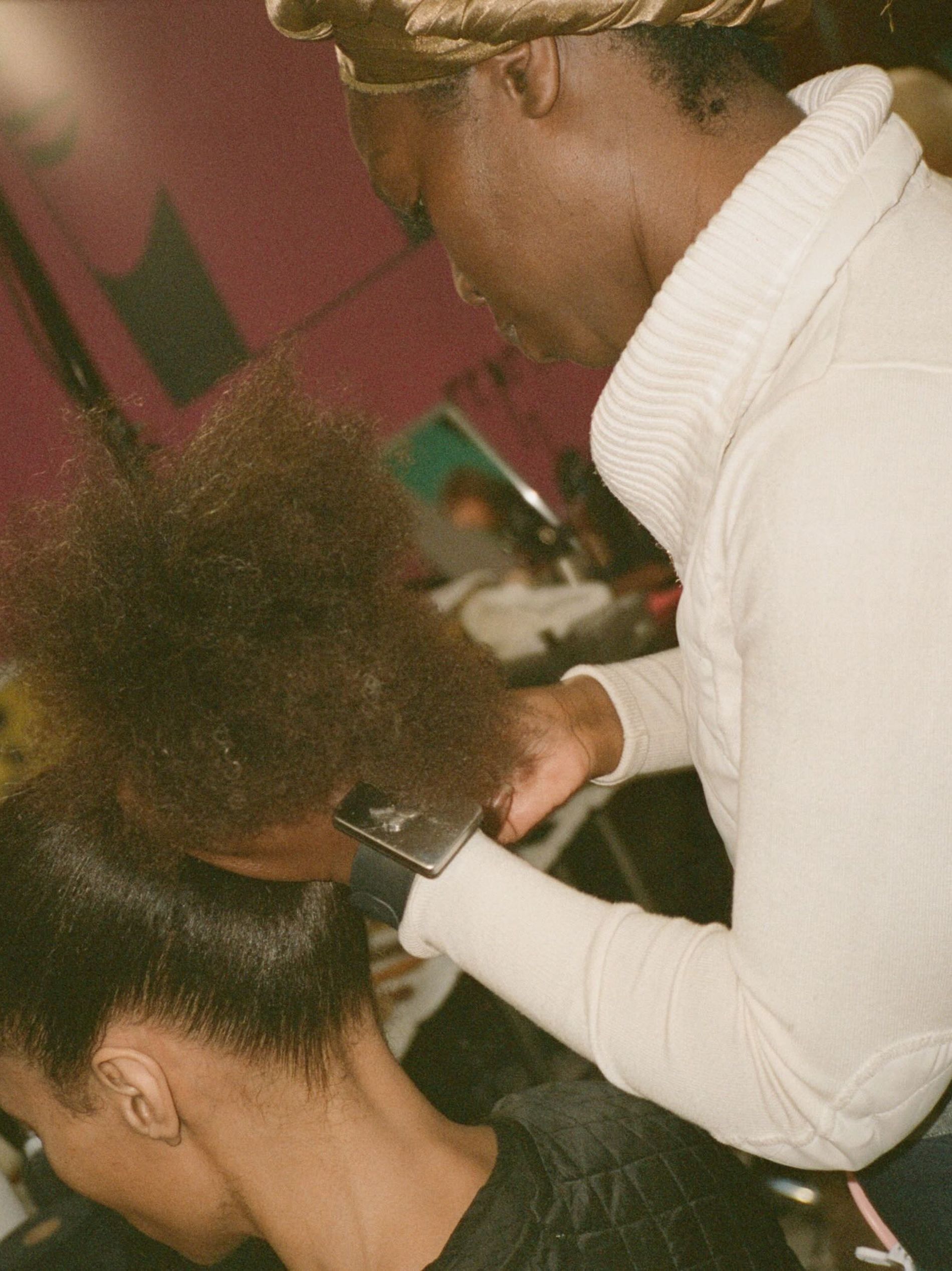 “The hair this season had an individual flavour,” said lead hairstylist Cim Mahony. “There was a poetic synergy in the natural textures and movement.” Working across a cast of strong, distinct faces, Mahony and his team enhanced each model’s own texture before shaping it into slightly quirkier silhouettes.