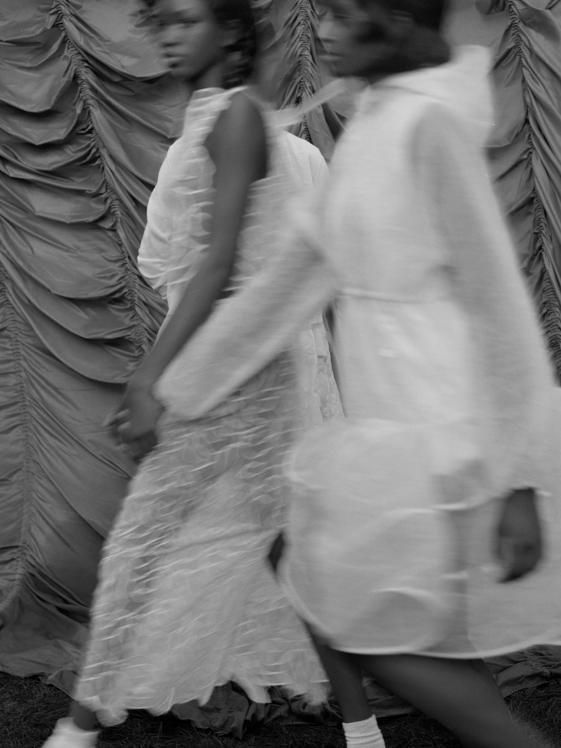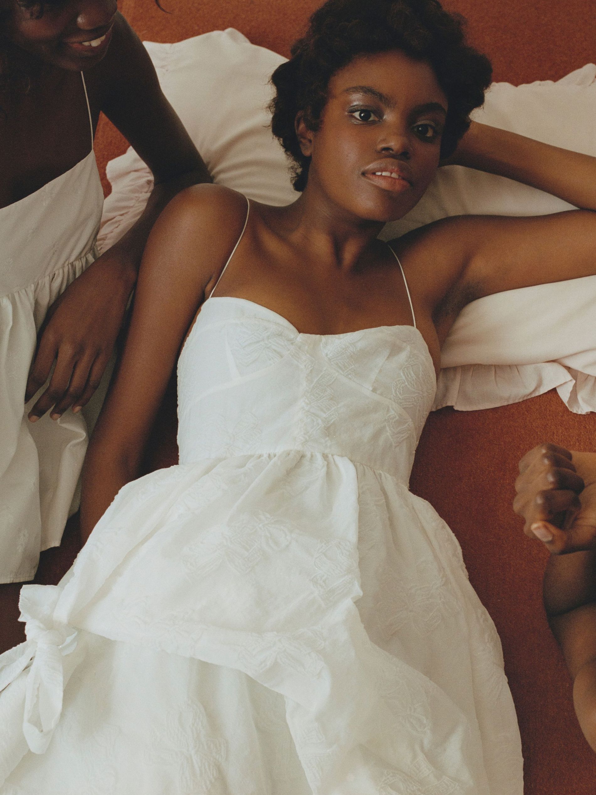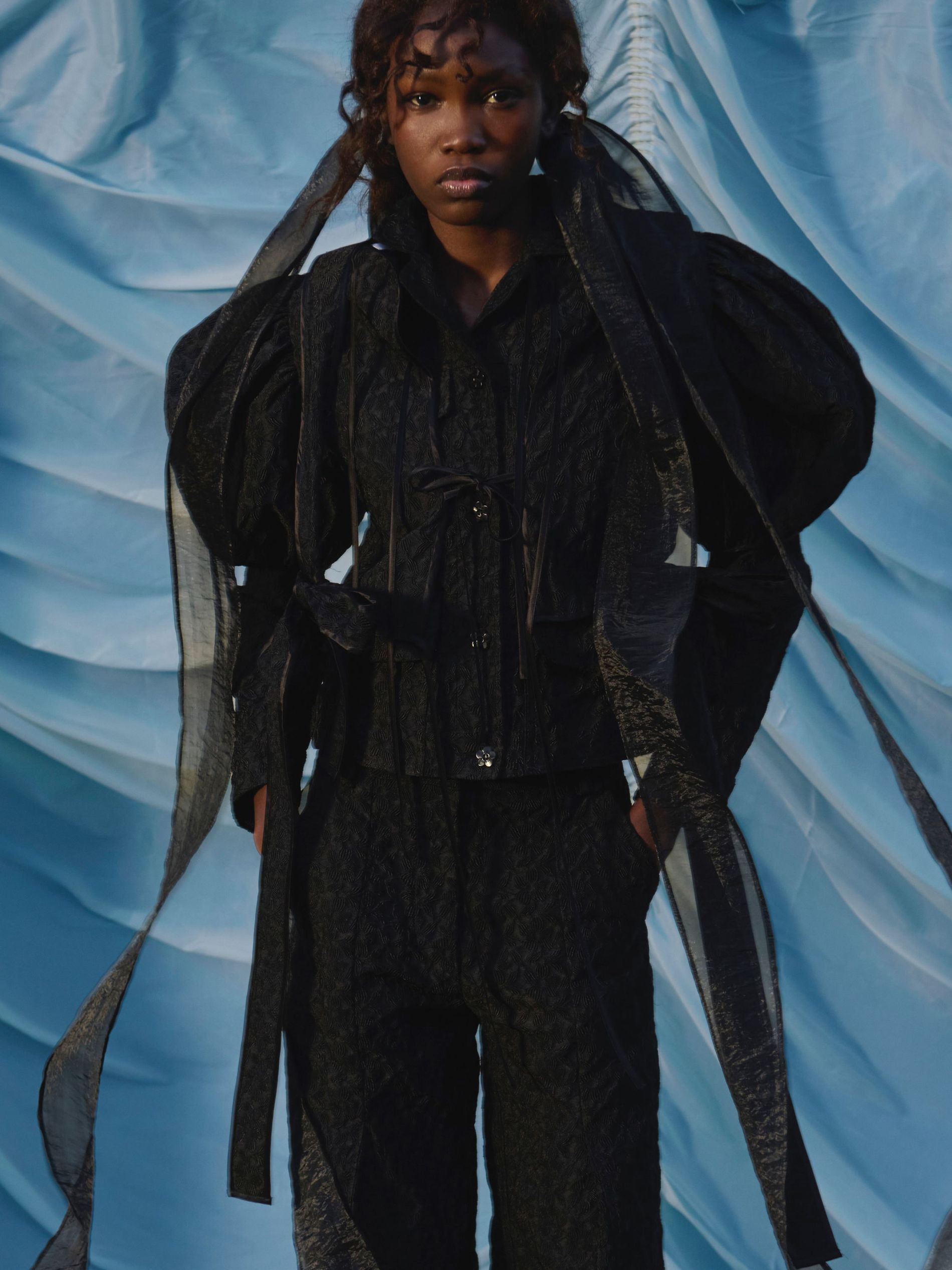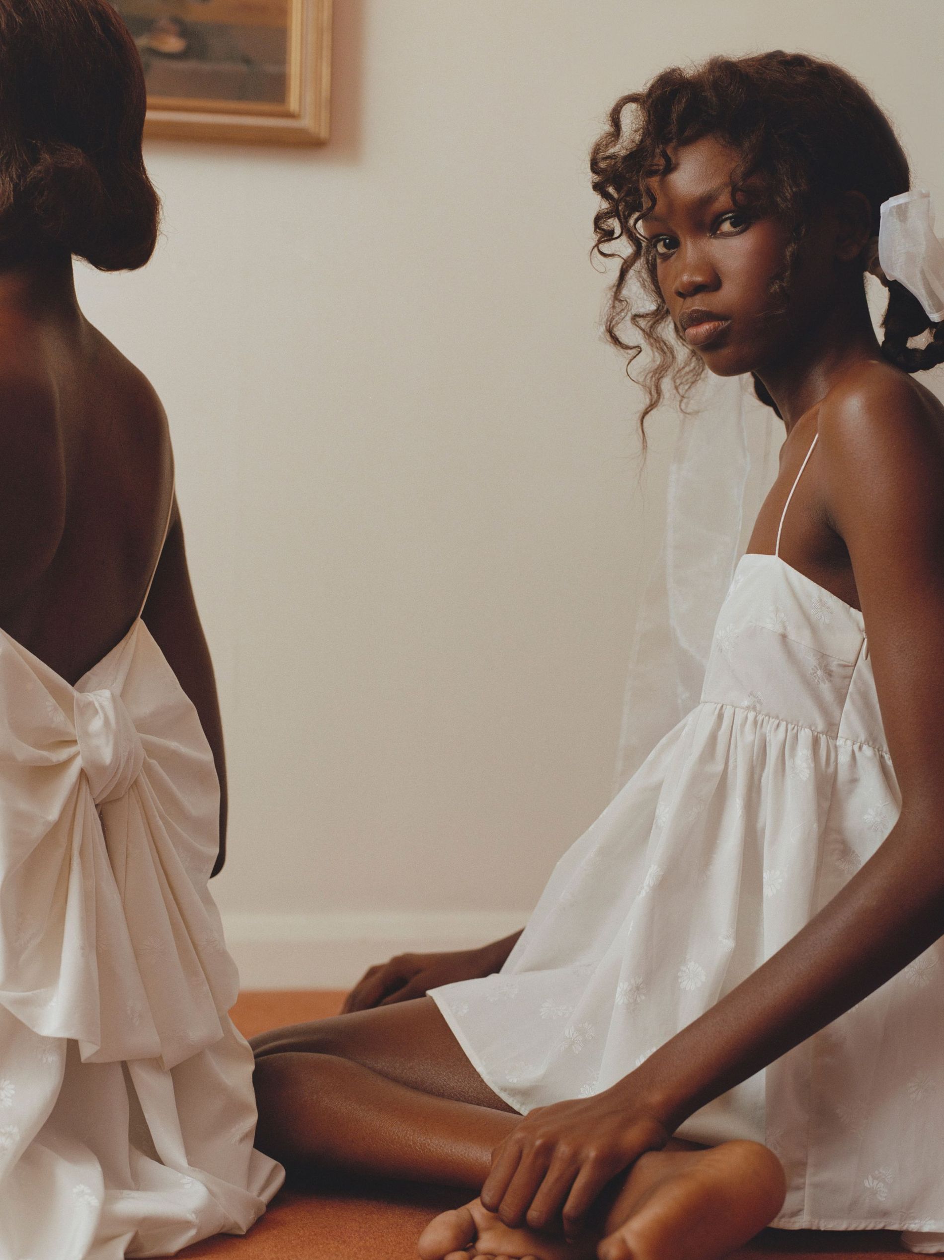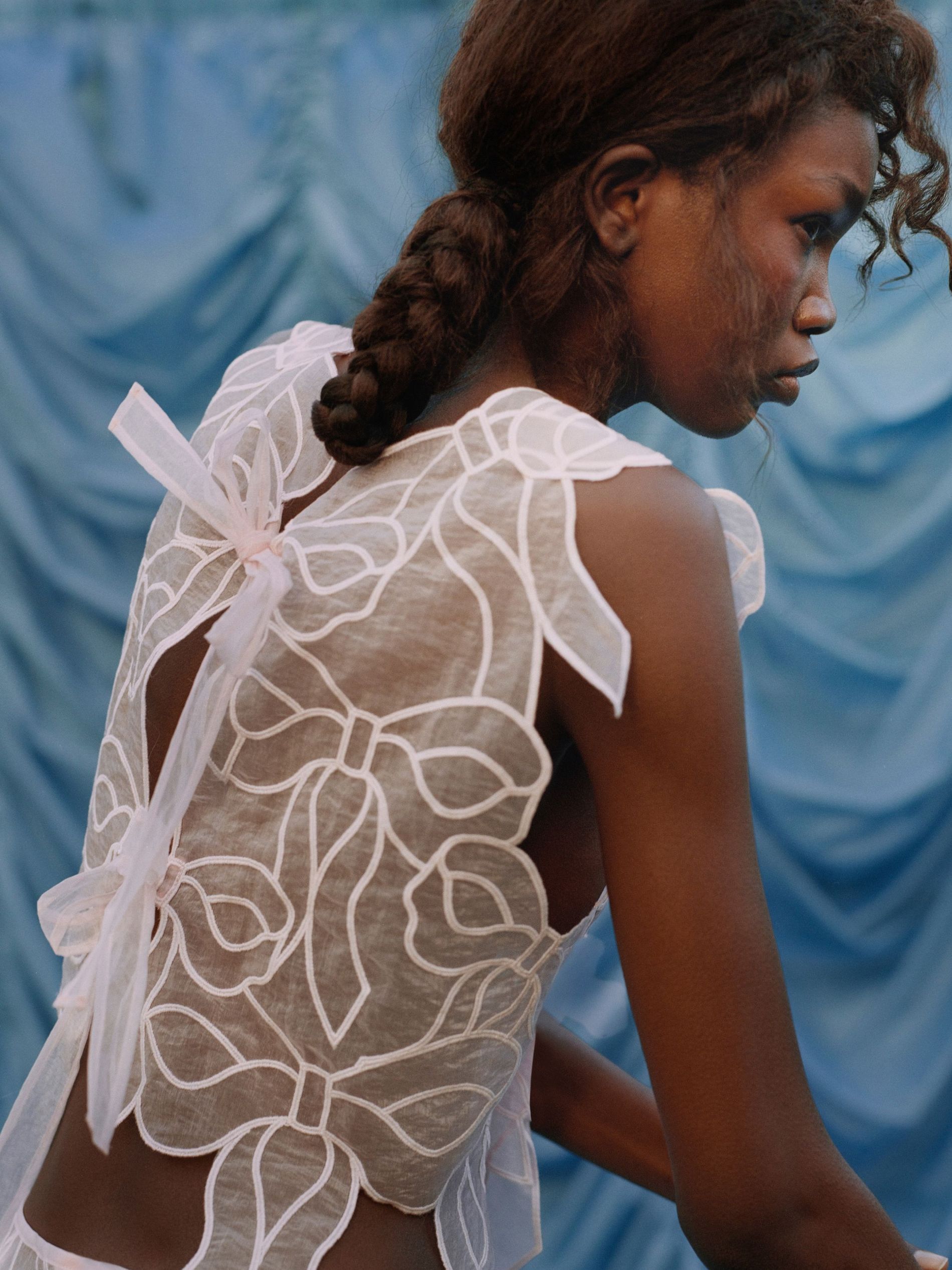 Bows, forever objects of affection for Cecilie Bahnsen, were a topic in the issue of A Magazine she curated last year. “I don’t know if you’d call it a romantic pause, but [for pre-fall I] was looking at some of the things that I didn’t feel like I was finished talking about when we did [the magazine],” the designer said. “The bow story was really special to me and I wanted to kind of try and create a whole collection just around the bow.” Having done that, the collection became a collaboration with Nadine Ijewere, who photographed the lookbook around a romantic narrative of sisterhood and dressing up.