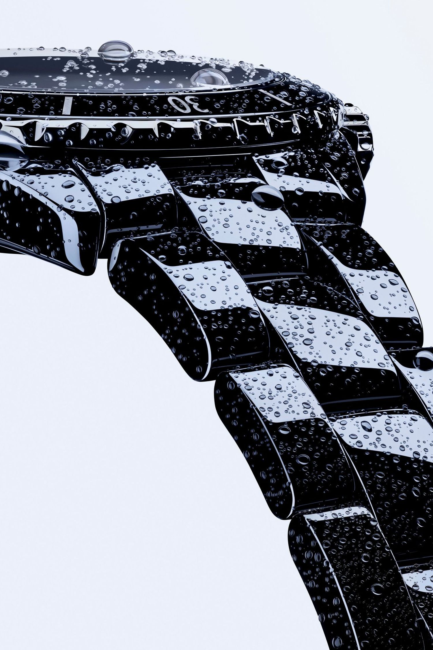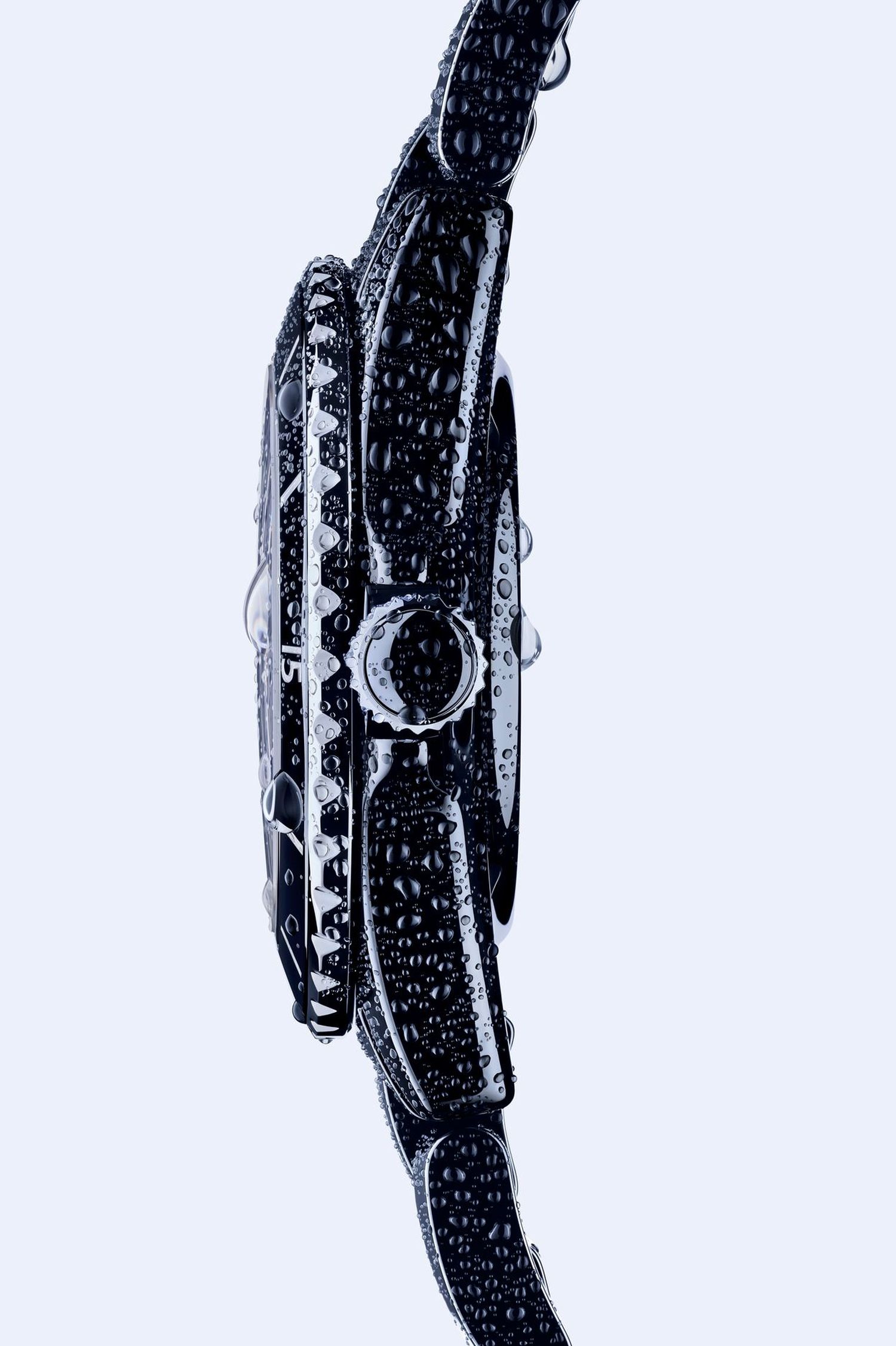 Over the years, the design has evolved – introduced in white, and later in blue – but the architecture is unmistakable: the unbroken bracelet, the precise bezel, the disciplined proportions. What appears effortless is the result of rigorous craftsmanship, from injection and machining to polishing and resistance testing under extreme simulated conditions.