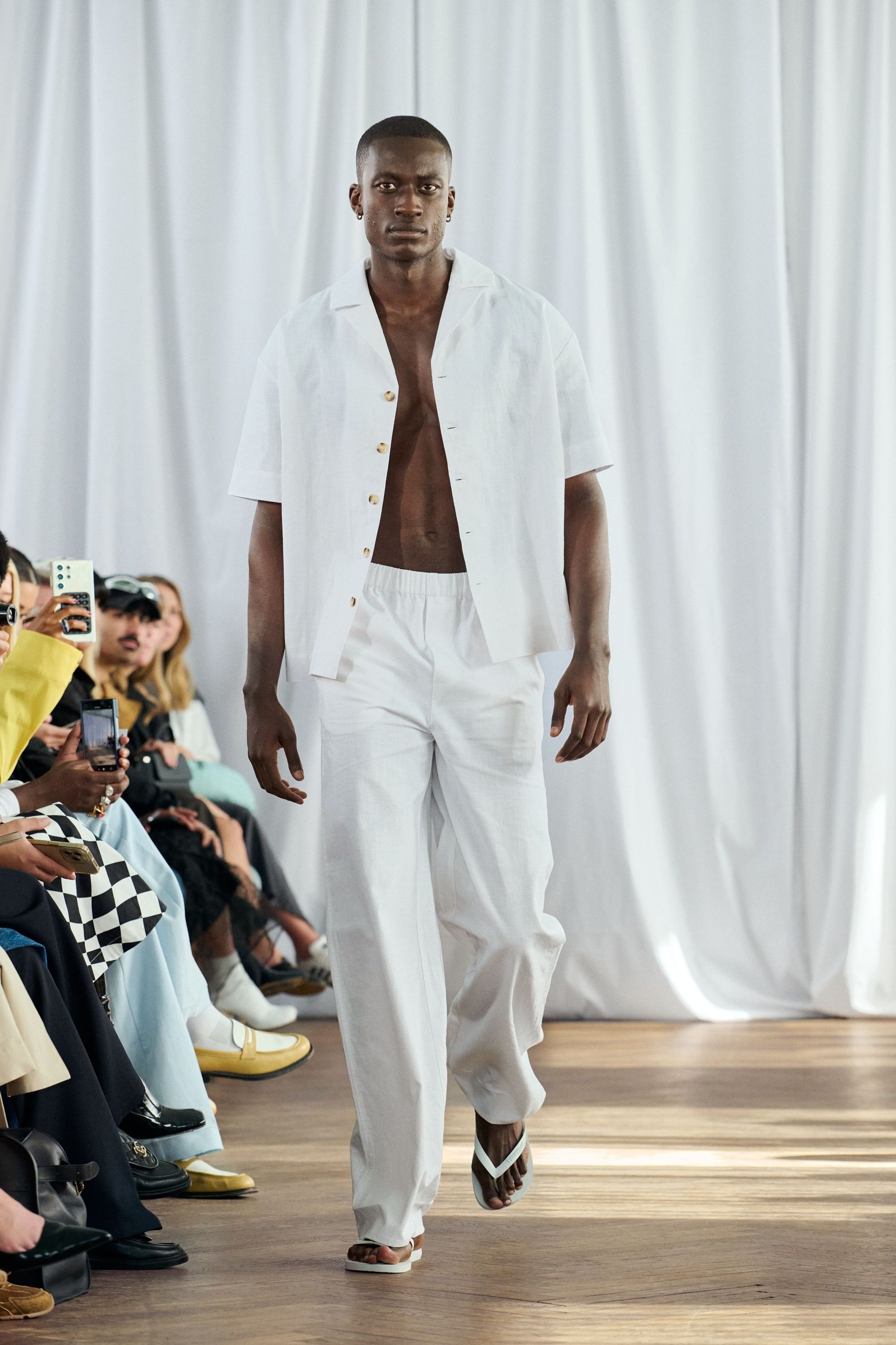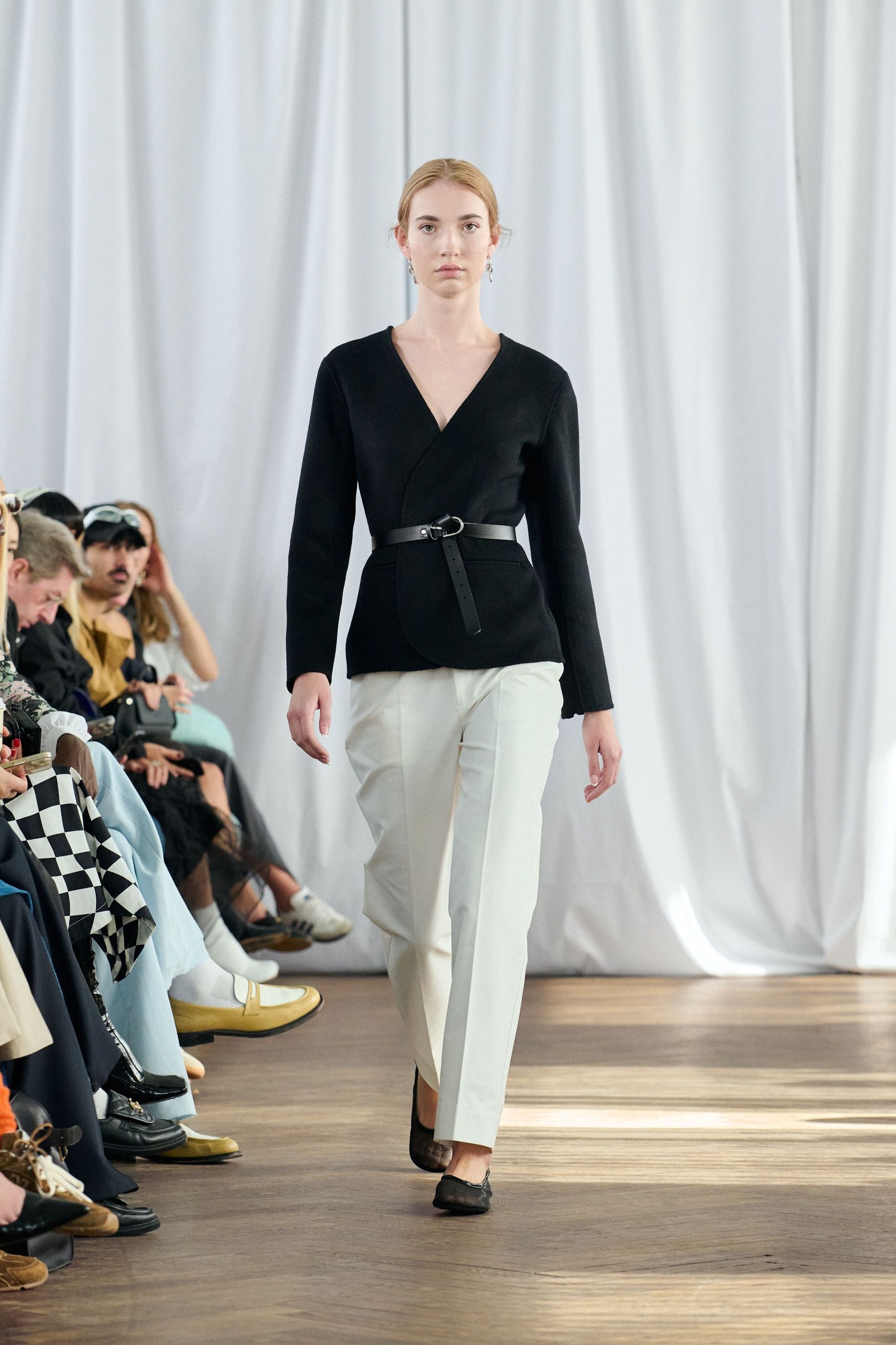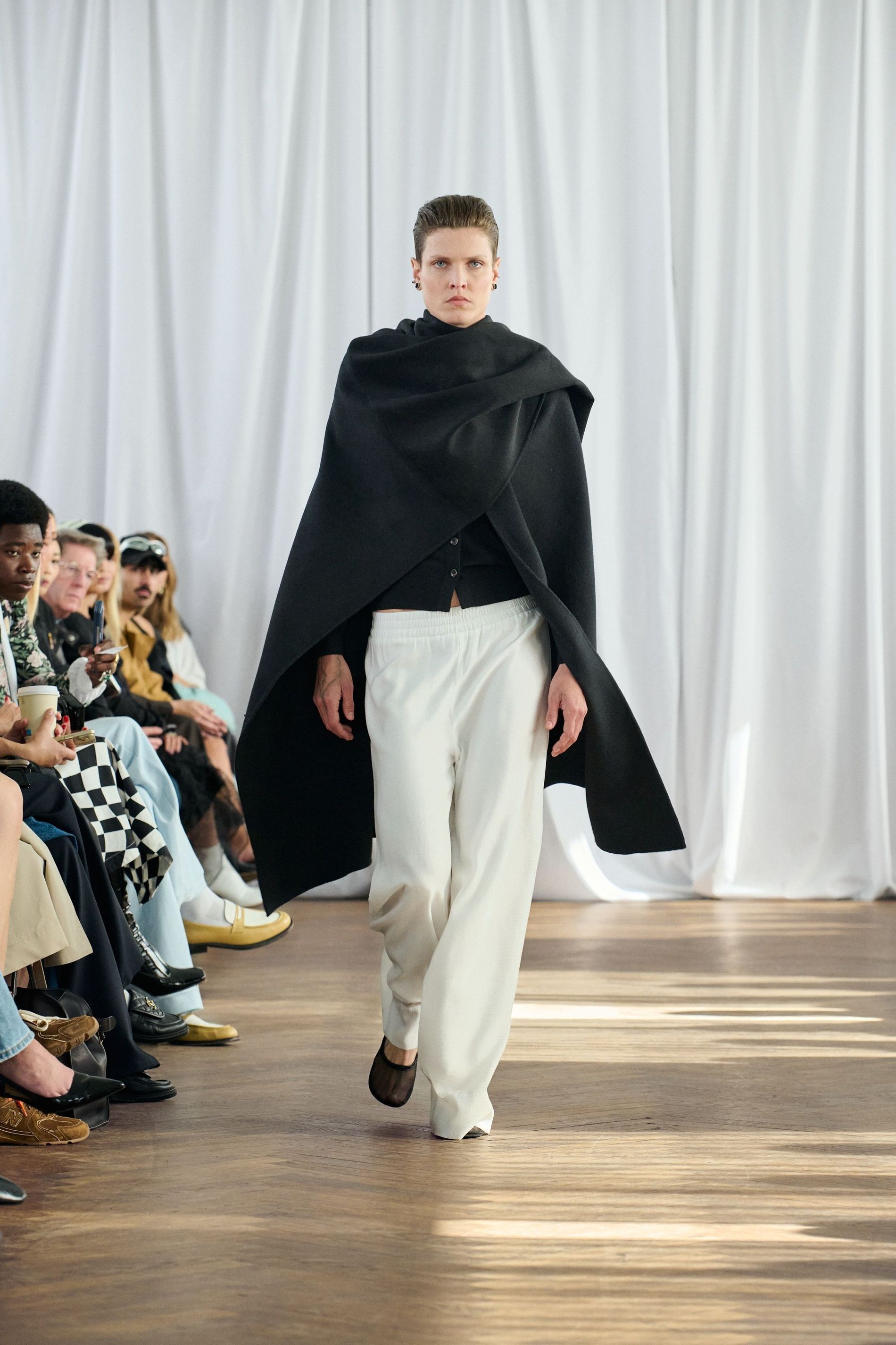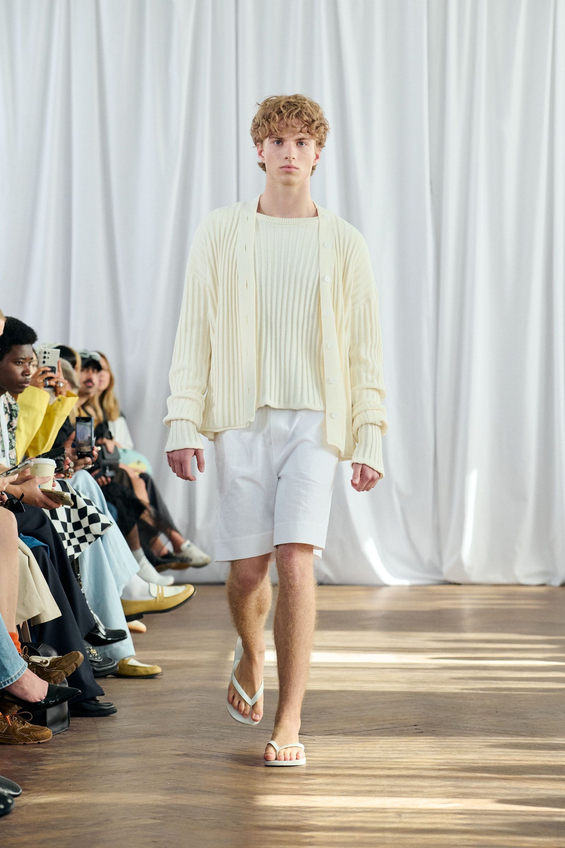 Aks's vision is certainly well-defined. Impeccably curated looks graced the runway, revealing the emerging designer's adeptness at minimalism. Tailored trousers and heavy knits in a palette of creamy neutrals were sent down the sun-lit catwalk, evoking a grainy nostalgia reminiscent of 1950s films set in the French Riviera (or perhaps the 1990s reimagining of those halcyon days, with The Talented Mr Ripley serving as a prime example).