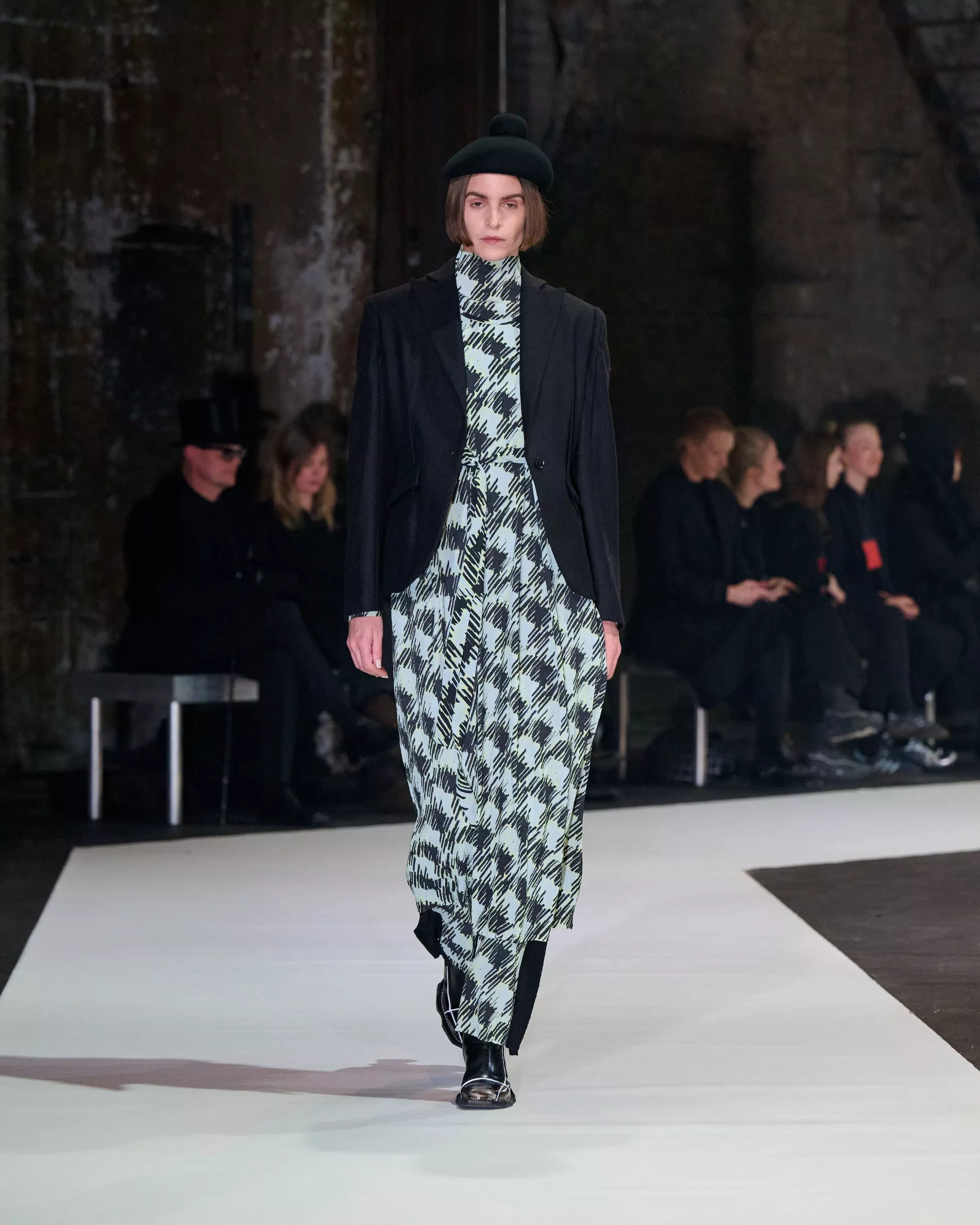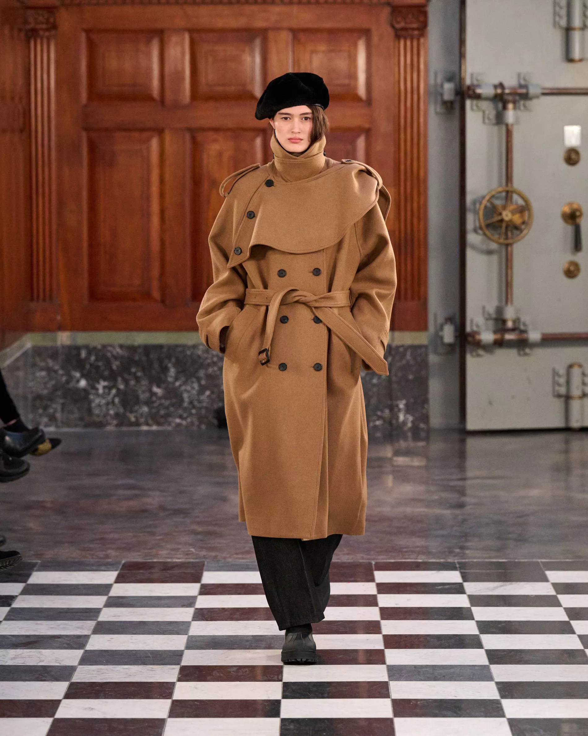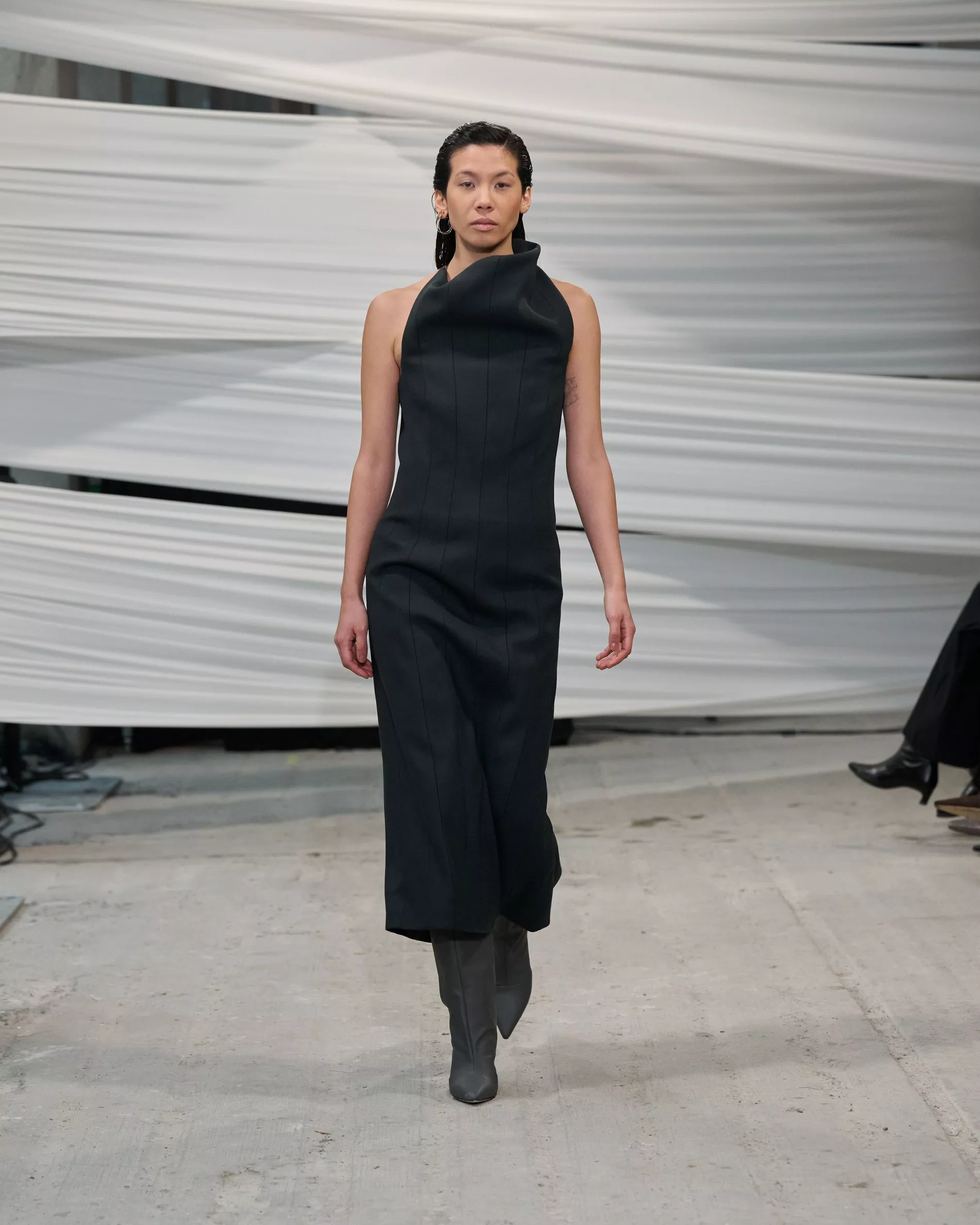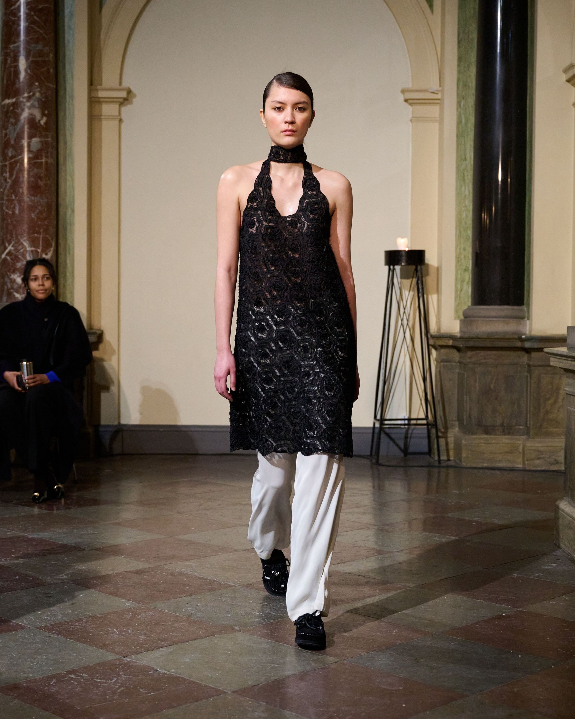 Forza and Studio Constance provided the most dramatic displays, with mouth-covering collars of pleated organza and upcycled shearling shown on the runway. Then there was lace: "It was everywhere, in many different forms, along with embroidery and raised details." Another stand-out among the shows were Skovgaard's befeathered neckband. Beyond the more eye-catching ensembles a more minimal approach could also be found in the fashion flurry: moulded high collars at Herskind, buttoned-up trench coats at The Garment and chin-grazing roll necks – just to name a few.