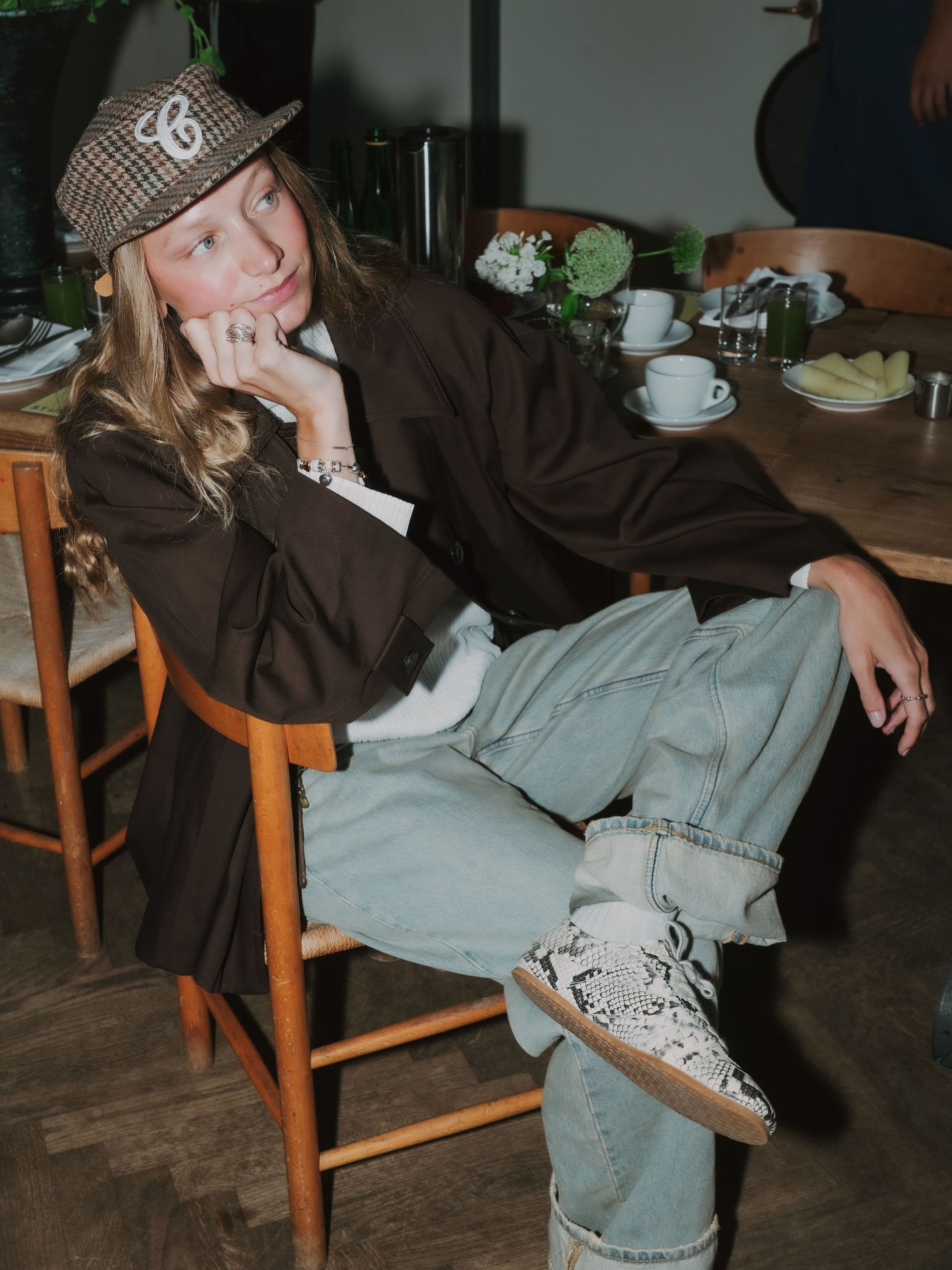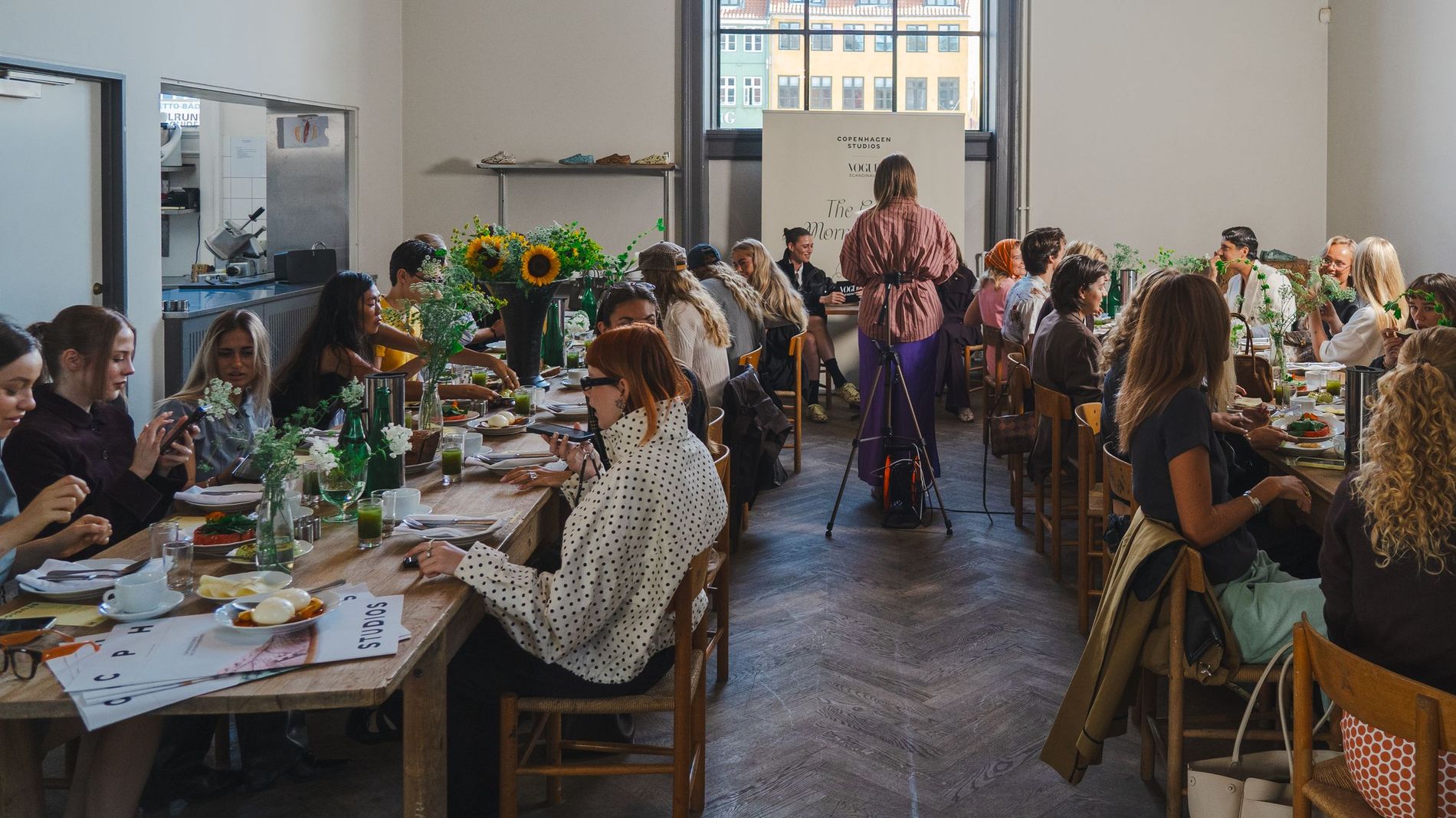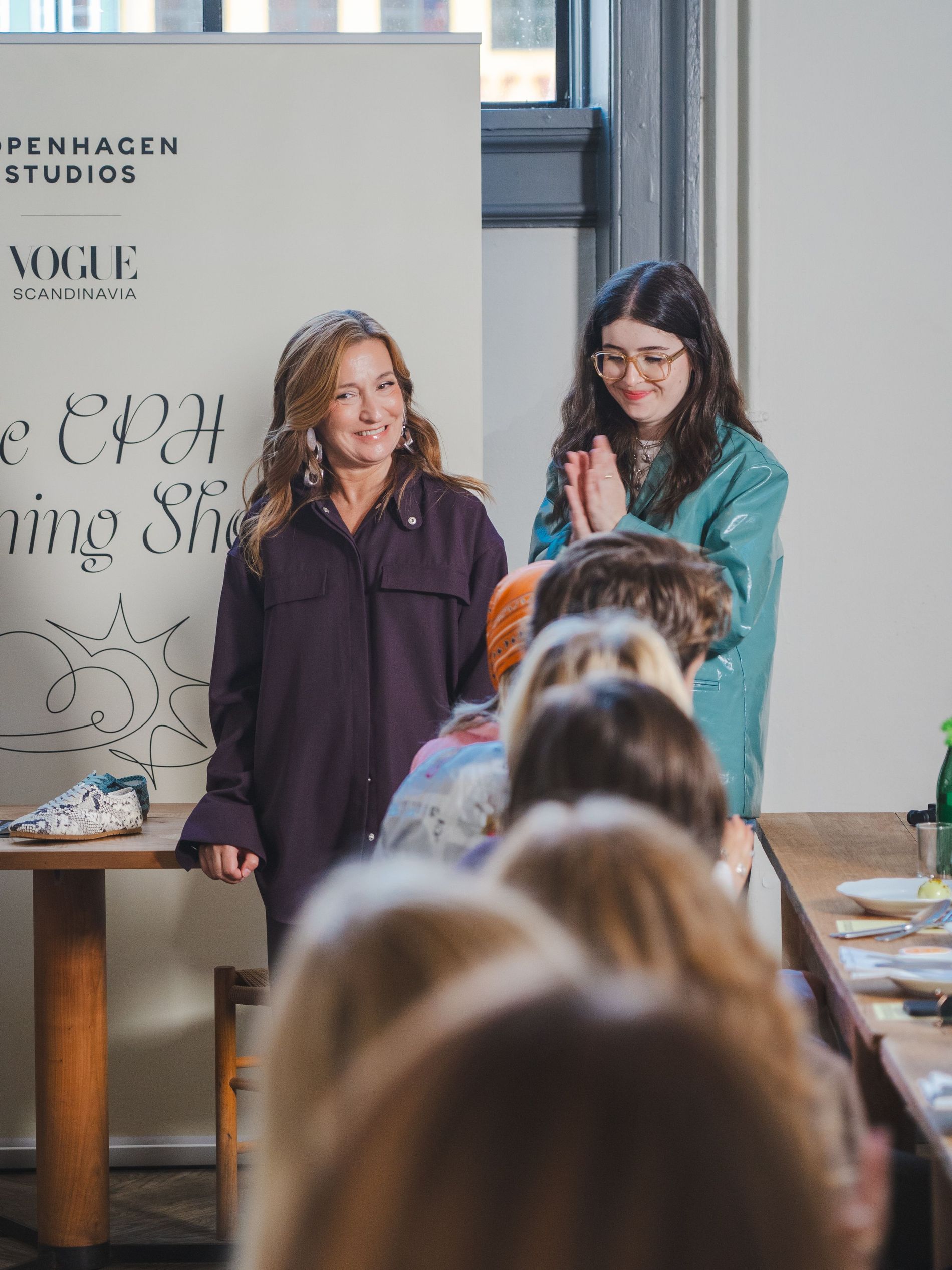 Yesterday morning, a gaggle of cool girls and influencers, industry insiders and editors gathered at Apollo Bar (chef Frederik Bille Brahe’s beloved restaurant, which over the years has become an unofficial fashion week hub) to take in an anticipated one-time only occurrence: a live taping of Vogue Scandinavia’s own morning show, presented with Copenhagen Studios. Guests like Sofie and Idunn Vollan, Alicia Agneson and Lola Corfixen sat down with Features Editor Allyson Shiffman (that’s me) to discuss personal style, Danish breakfast foods and, most importantly, Copenhagen Studios’ latest sneaker, which launched at the event. A clean silhouette rendered in eye-catching snake leather, the sneaker is destined to assert itself as a street style star as CPHFW unfolds.