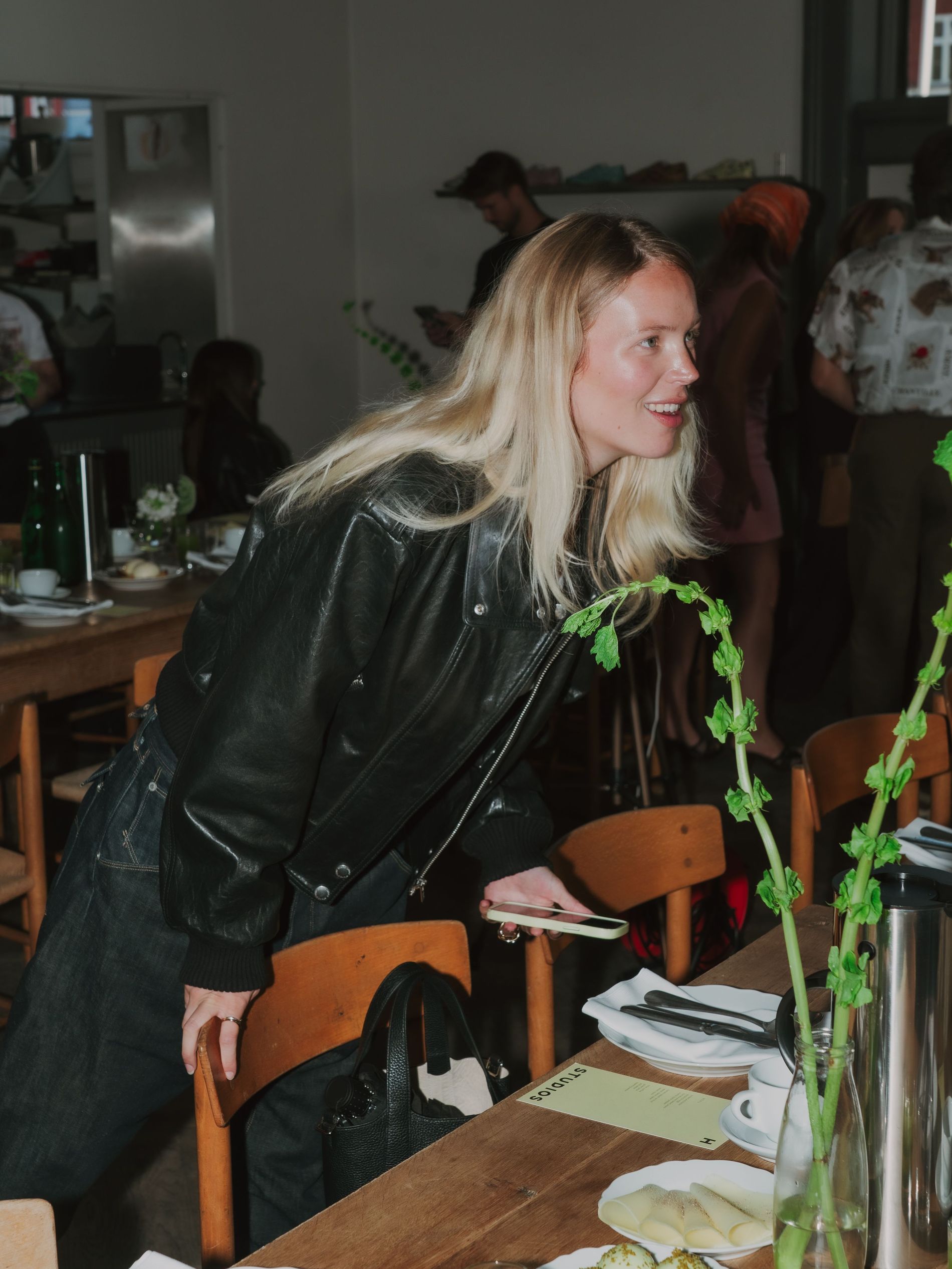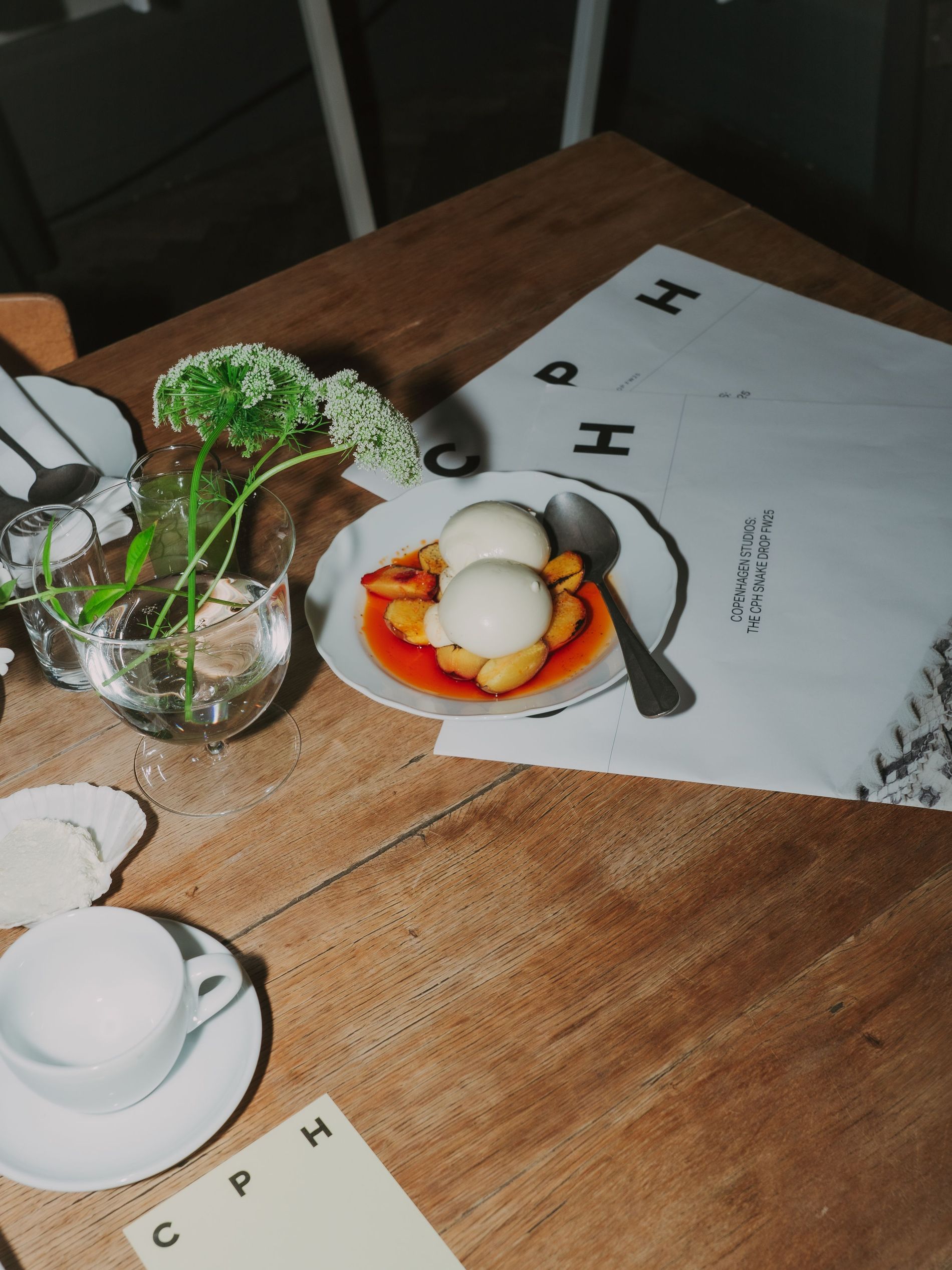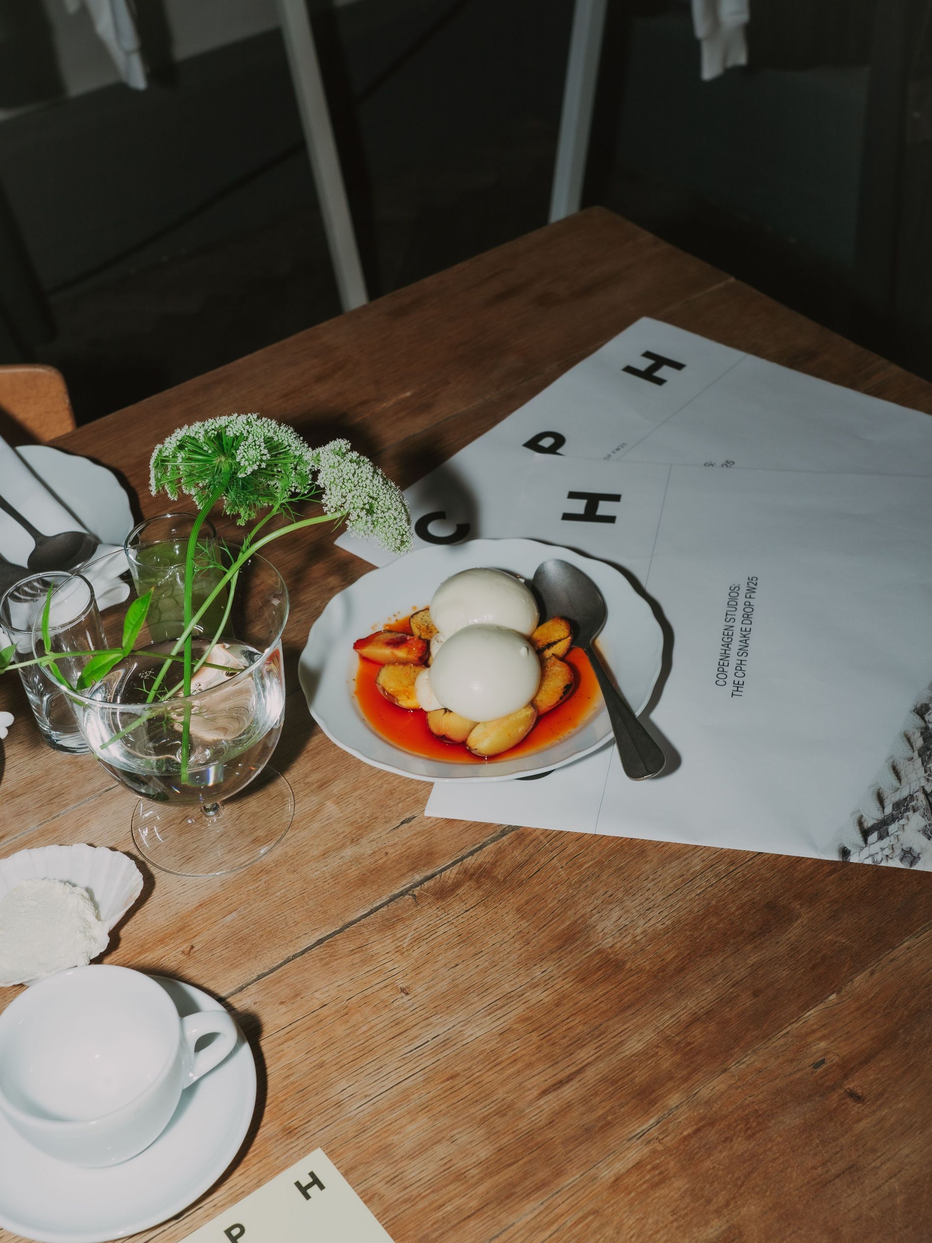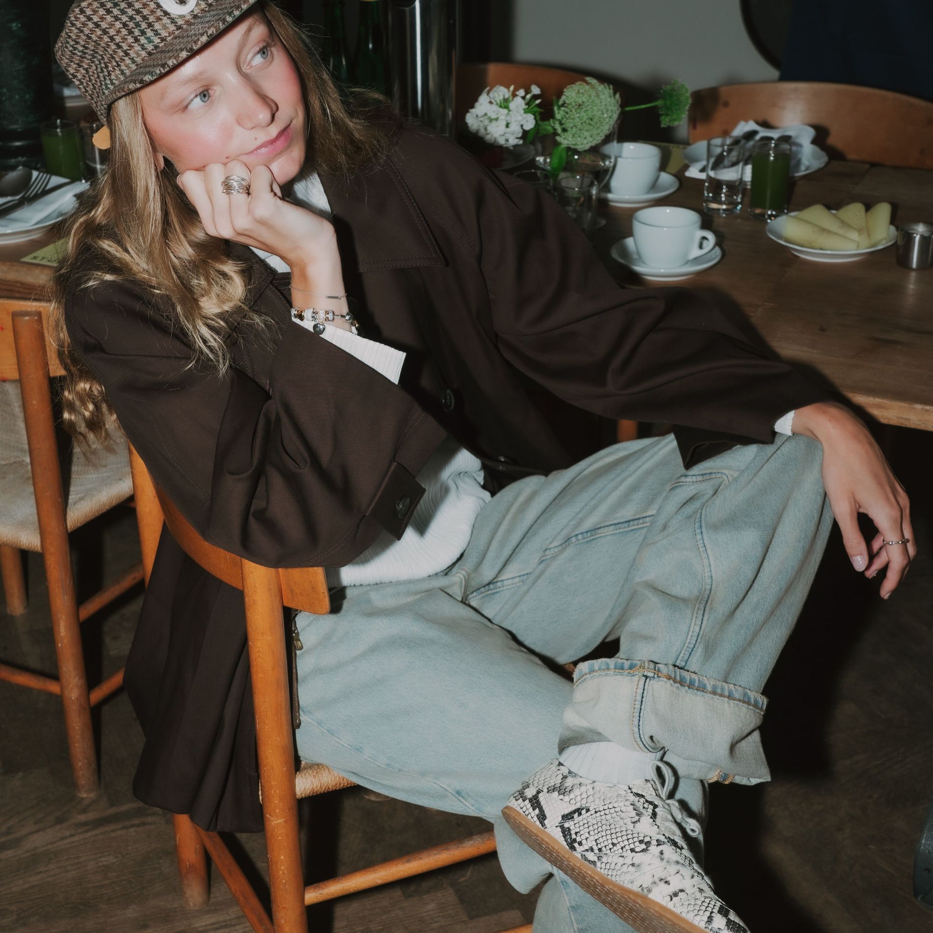 Yesterday morning, a gaggle of cool girls and influencers, industry insiders and editors gathered at Apollo Bar (chef Frederik Bille Brahe’s beloved restaurant, which over the years has become an unofficial fashion week hub) to take in an anticipated one-time only occurrence: a live taping of Vogue Scandinavia’s own morning show, presented with Copenhagen Studios. Guests like Sofie and Idunn Vollan, Alicia Agneson and Lola Corfixen sat down with Features Editor Allyson Shiffman (that’s me) to discuss personal style, Danish breakfast foods and, most importantly, Copenhagen Studios’ latest sneaker, which launched at the event. A clean silhouette rendered in eye-catching snake leather, the sneaker is destined to assert itself as a street style star as CPHFW unfolds.