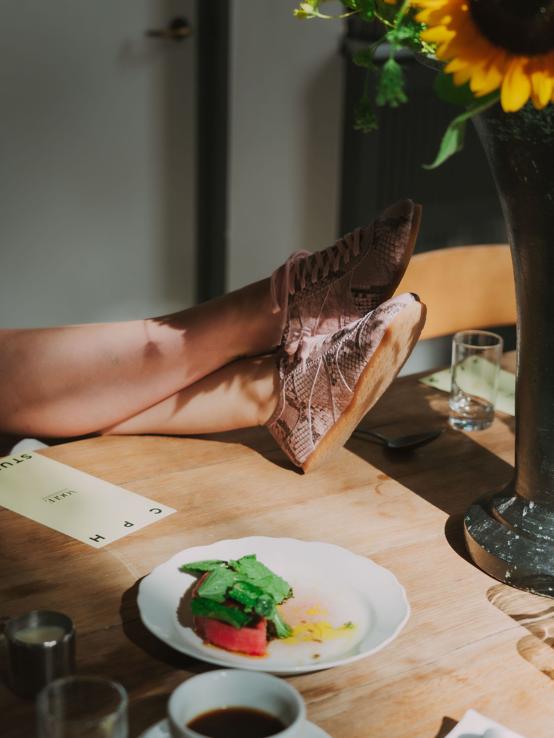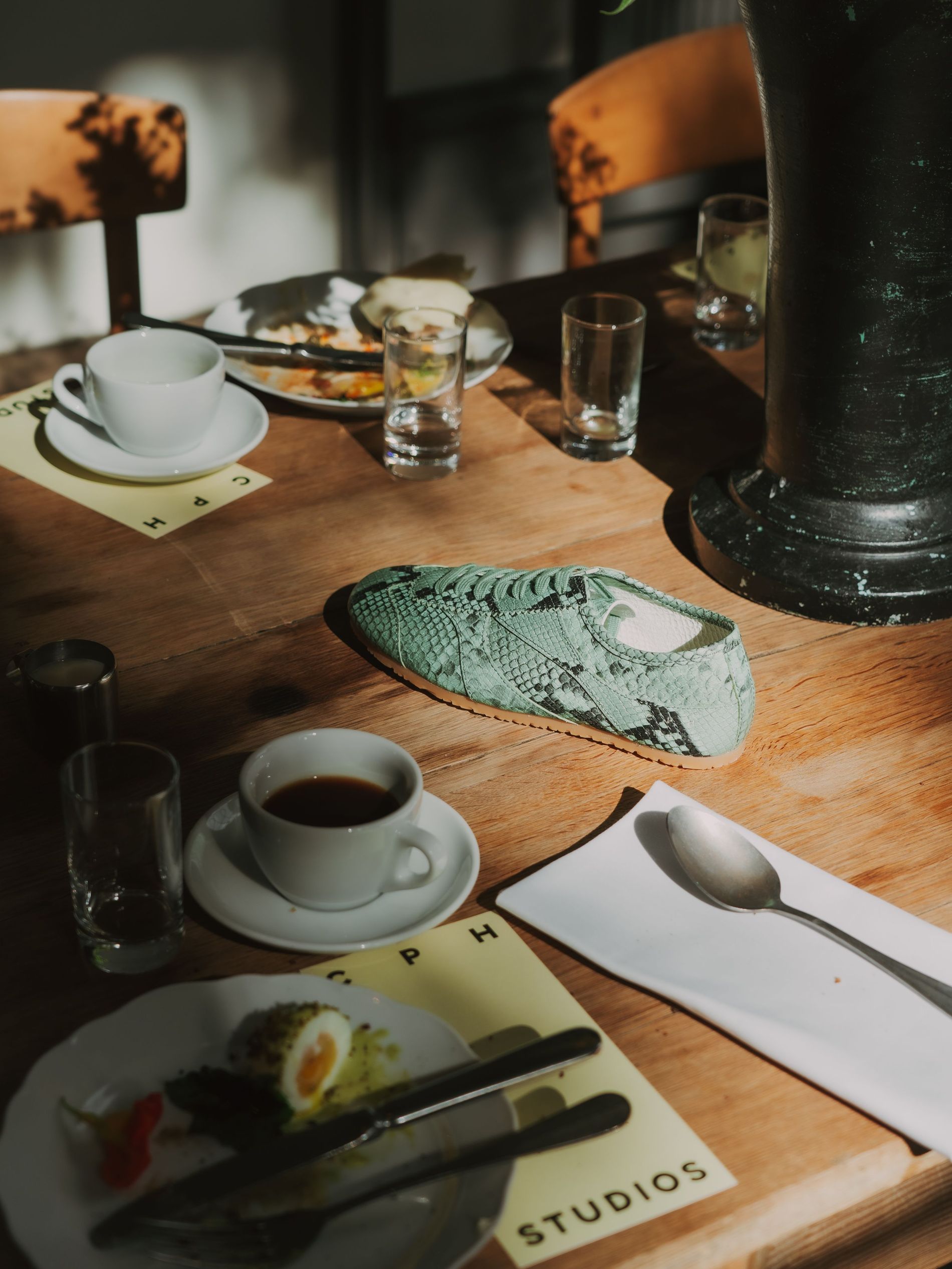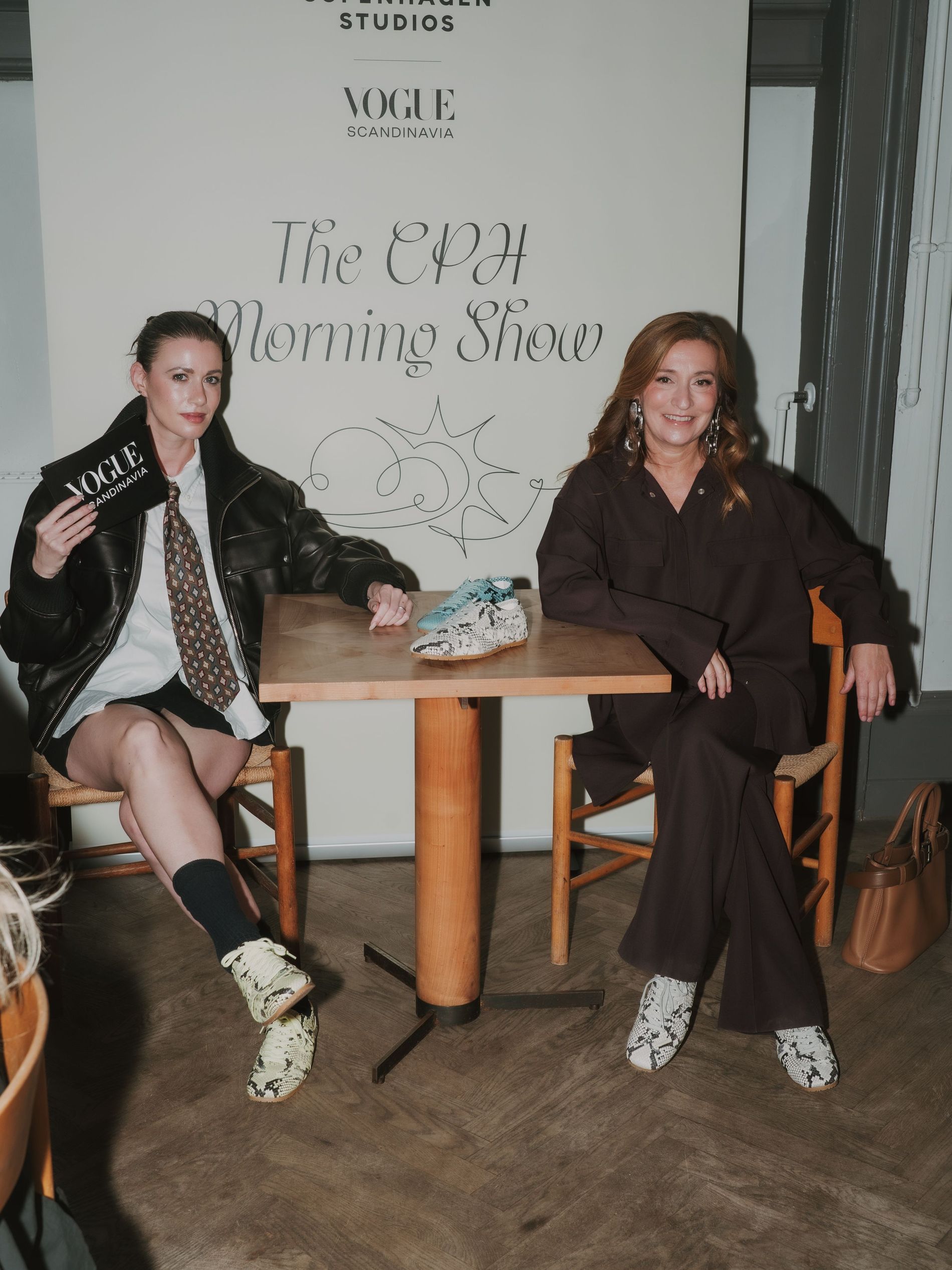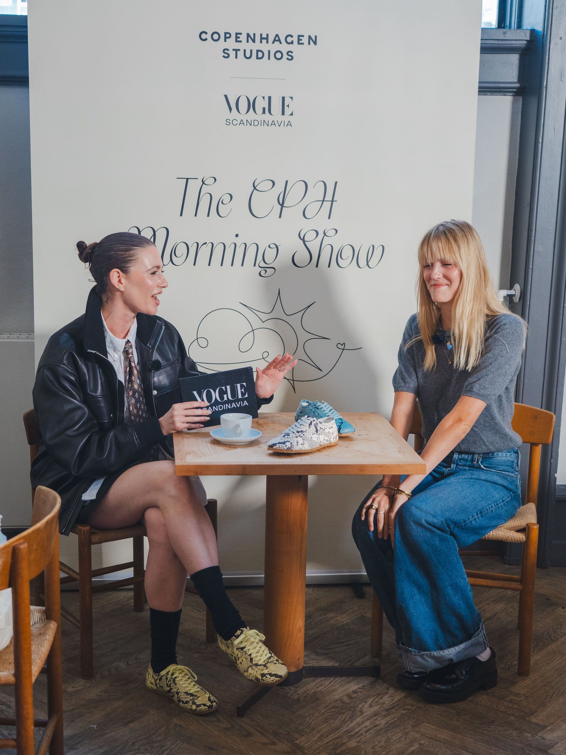 At Apollo Bar, Vogue Scandinavia and Copenhagen Studios hosted their very own breakfast morning show to fete the launch of the brand’s covetable snake print sneaker. Guests like Idunn and Sofie Vollan, Alicia Agneson and Herman Tømmeraas sat down with features editor Allyson Shiffman to discuss personal style, snakes and the sneakers themselves