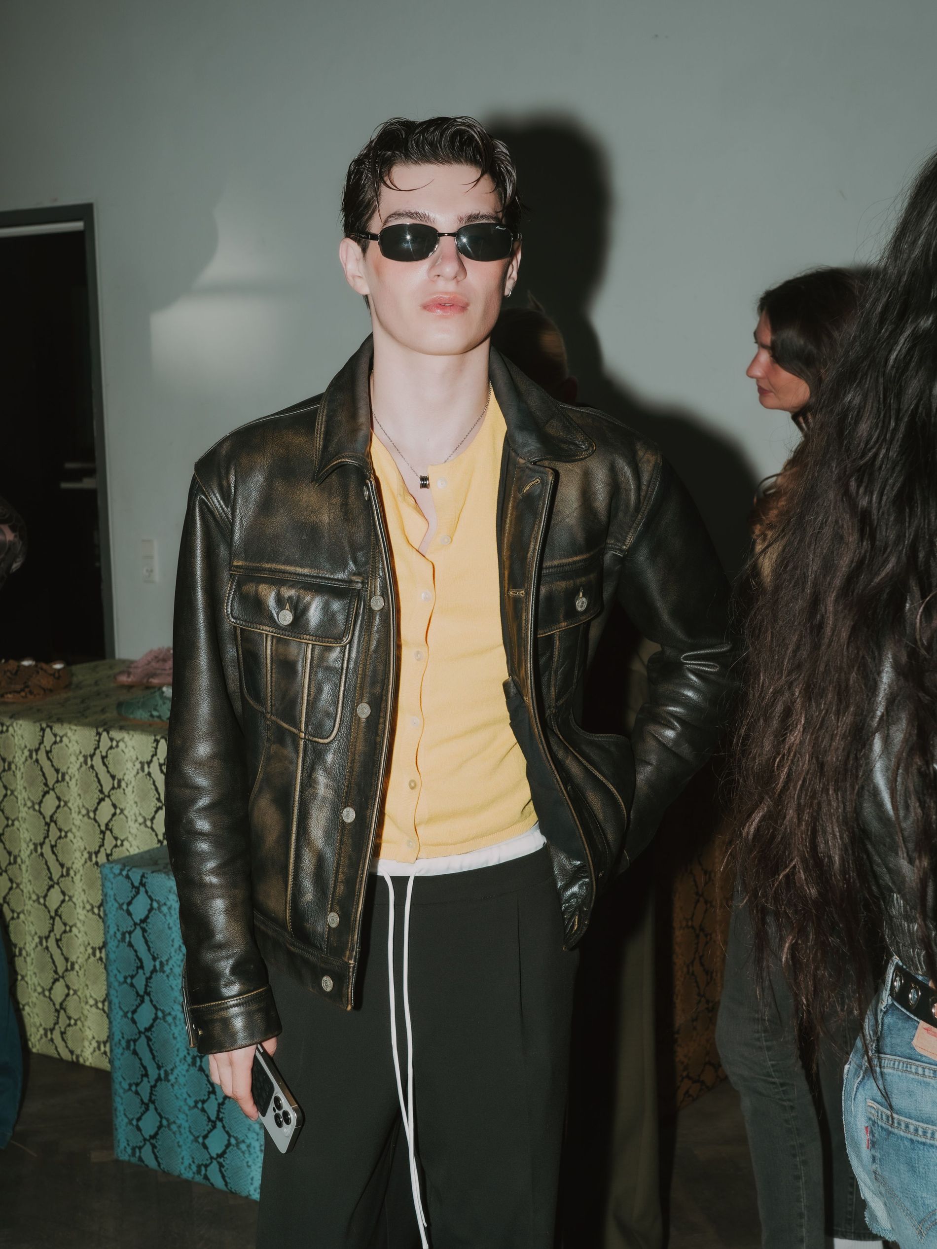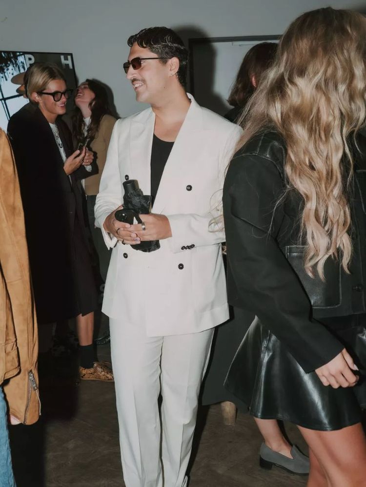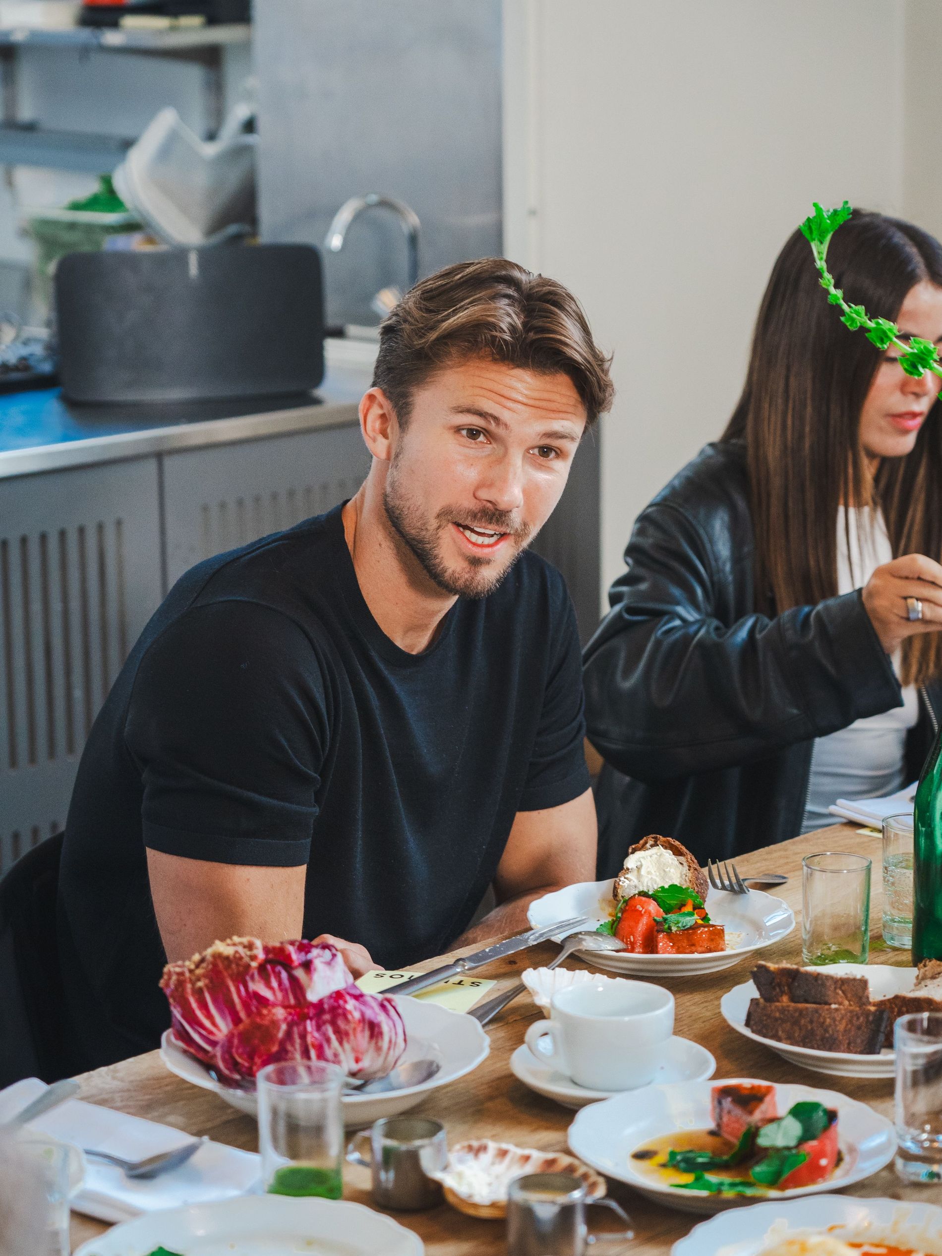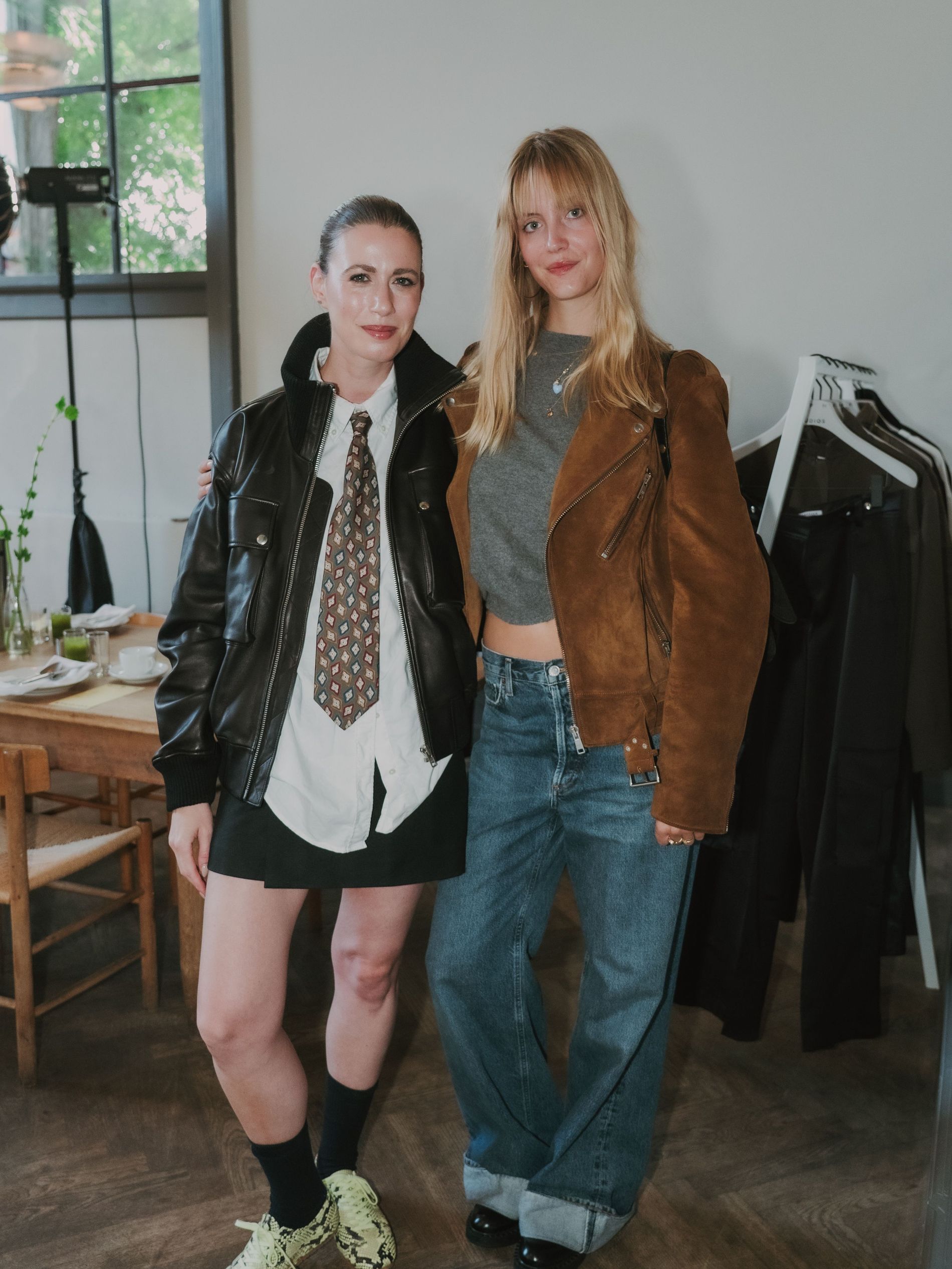 As the recording took place, guests mingled over breakfast at two long tables, nibbling on fresh tomatoes and strawberries, pears and burrata. Also on view at the breakfast, the brand’s latest garments: sumptuous leather jackets and effortless outerwear – the perfect pieces to pair with the standout sneakers.