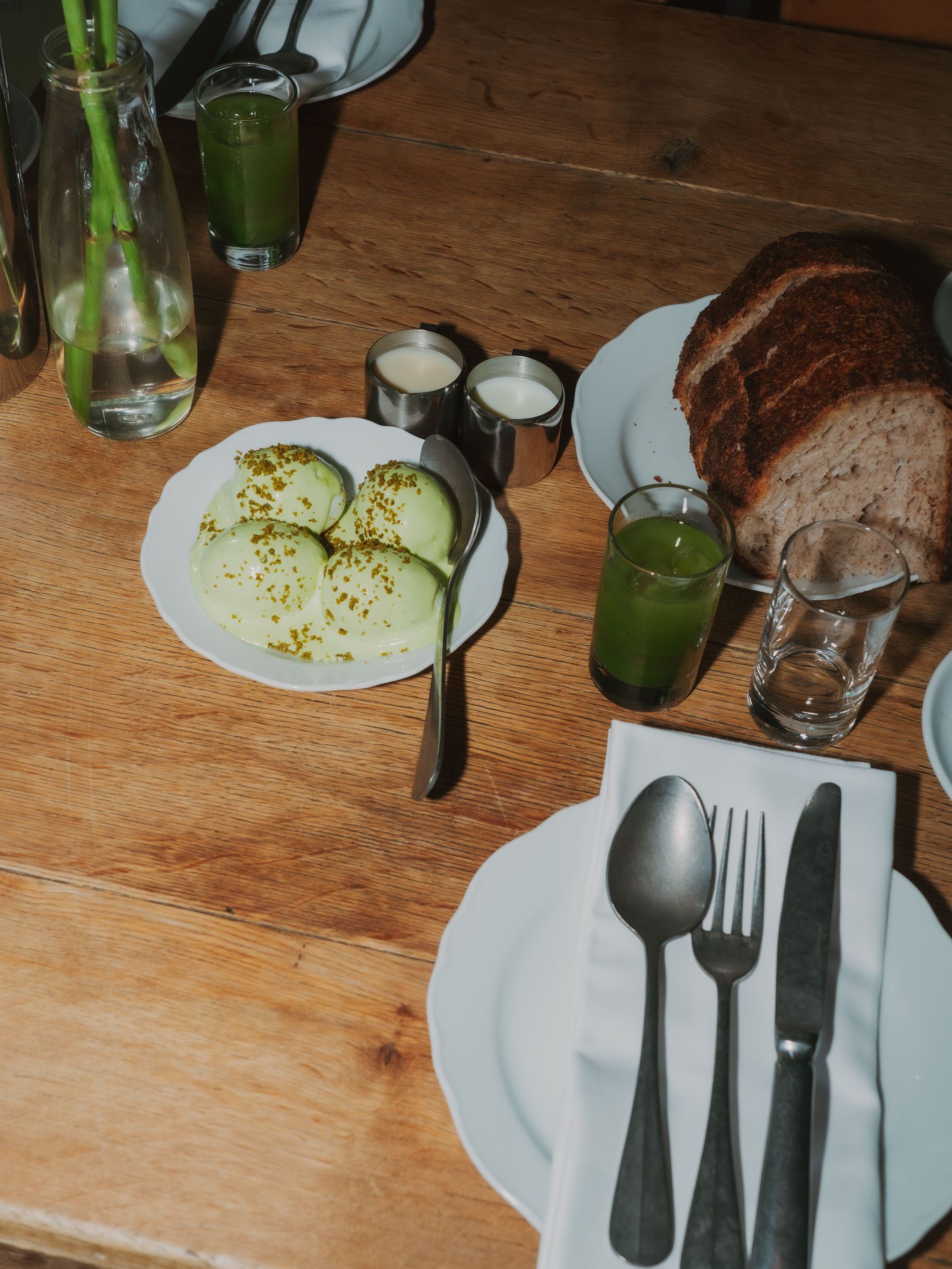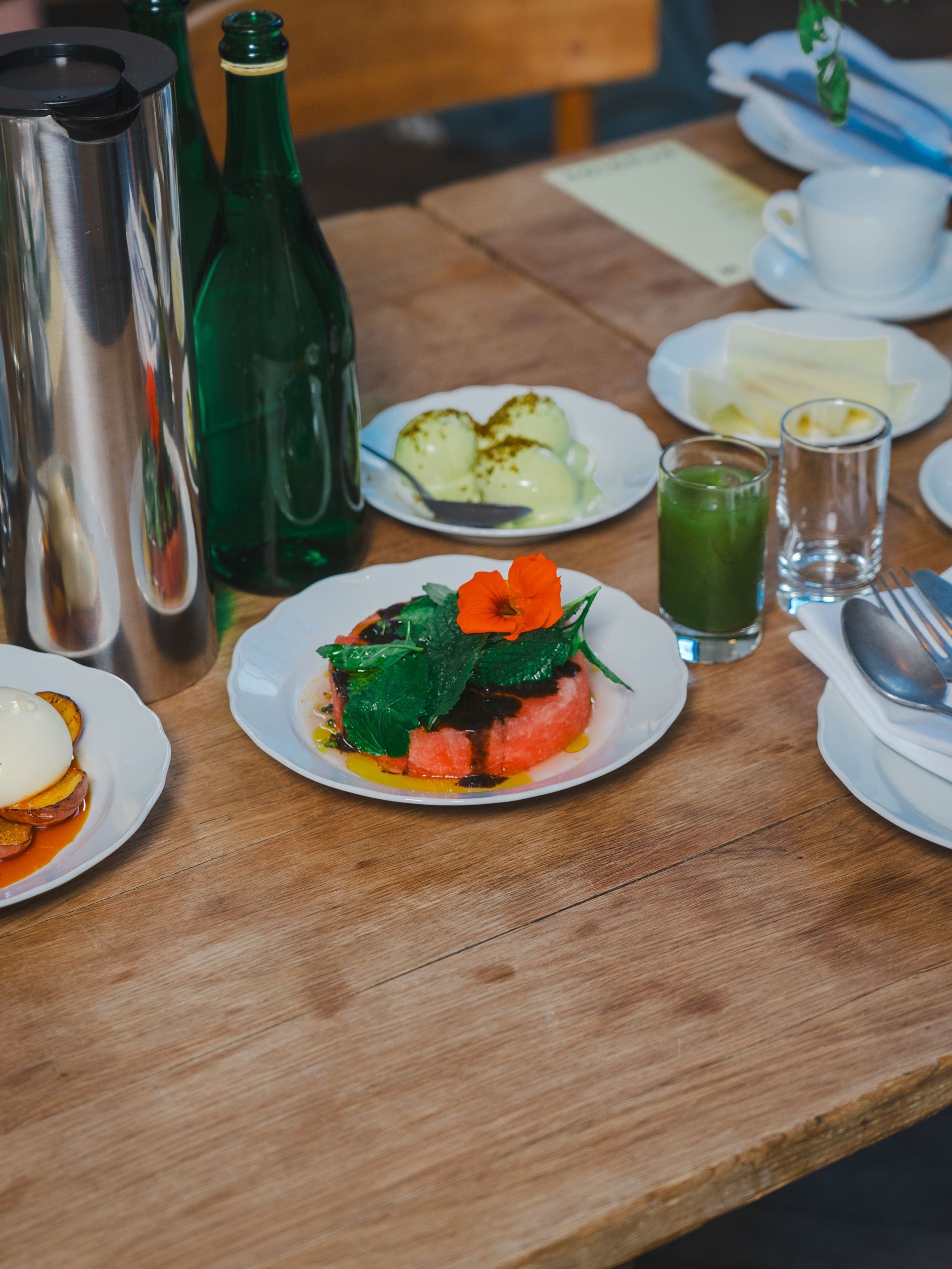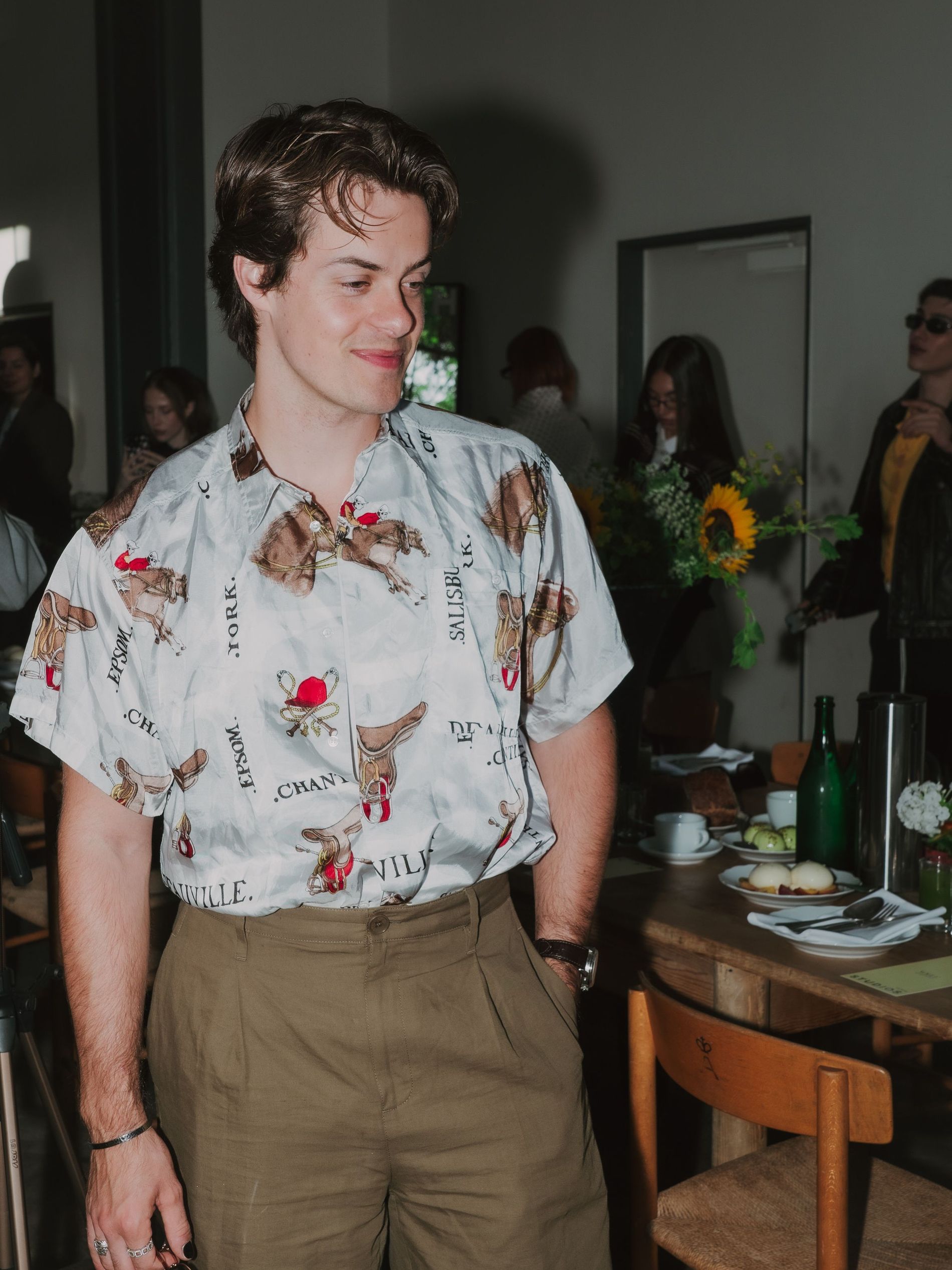 As the recording took place, guests mingled over breakfast at two long tables, nibbling on fresh tomatoes and strawberries, pears and burrata. Also on view at the breakfast, the brand’s latest garments: sumptuous leather jackets and effortless outerwear – the perfect pieces to pair with the standout sneakers.