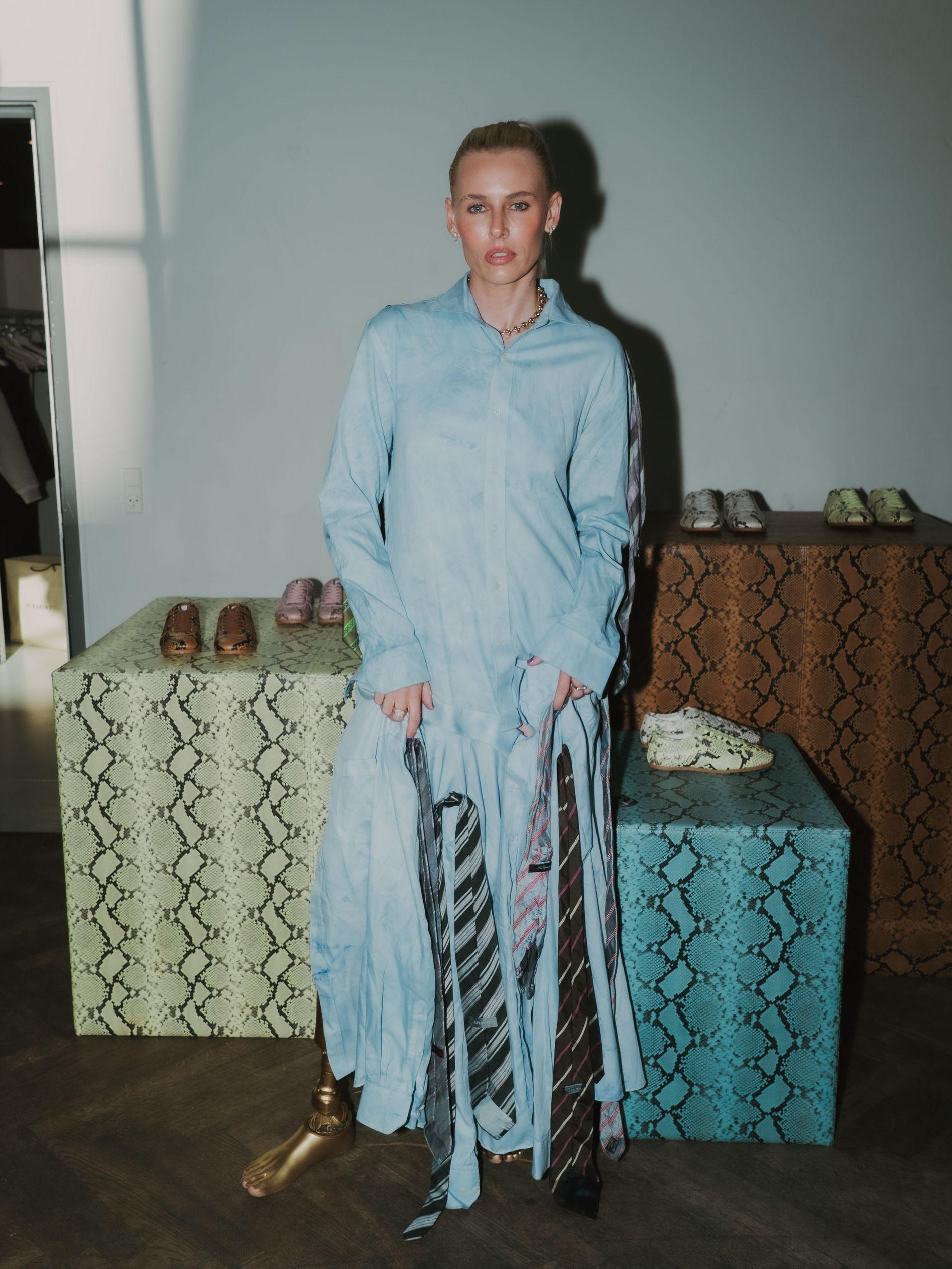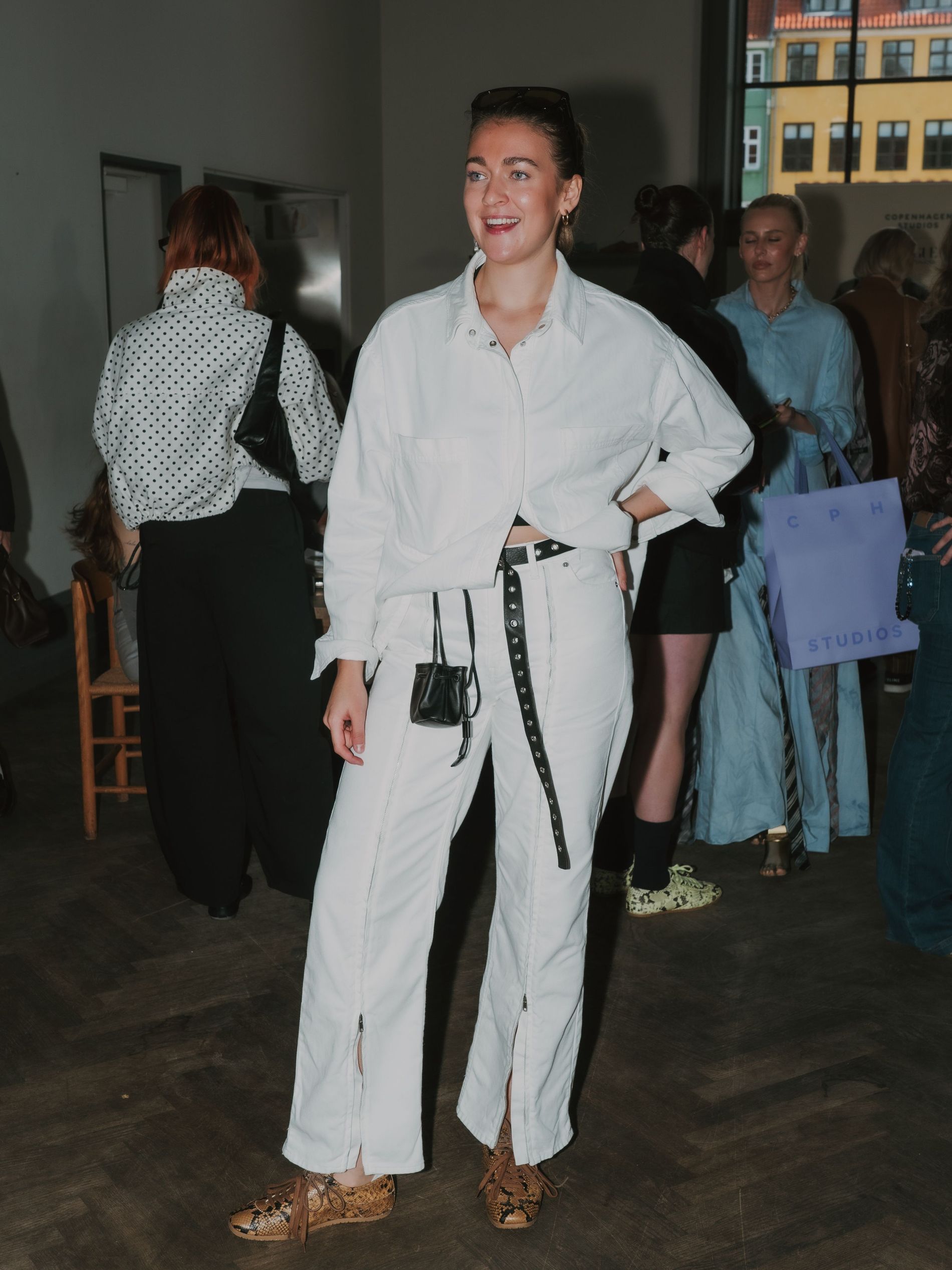 To that end, it only made sense to host this intimate event in midst of the city’s most fashion-forward week, populated by some of the city’s biggest industry names, many of which wore the snake print sneakers for the occasion. Seeing the ways in which guests interpreted the standout footwear – some juxtaposing the sneakers with feminine dresses or flouncy skirts, others going full streetwear in track pants or relaxed jeans – epitomised what makes Copenhagen’s aesthetic so revered (Hannah, fittingly, notes that the ultimate Copenhagen Studios girl is “effortlessly cool, but never trying too hard”).