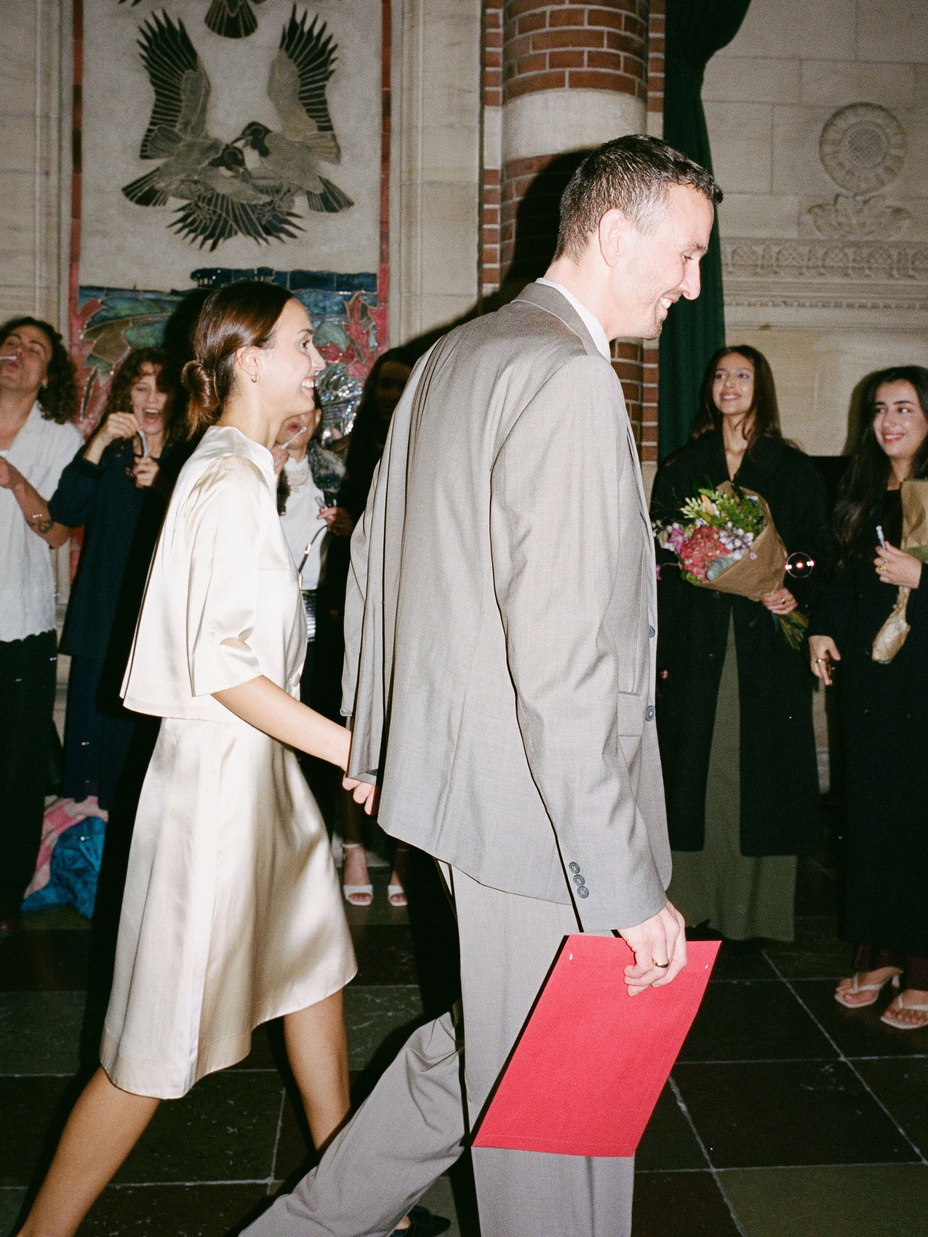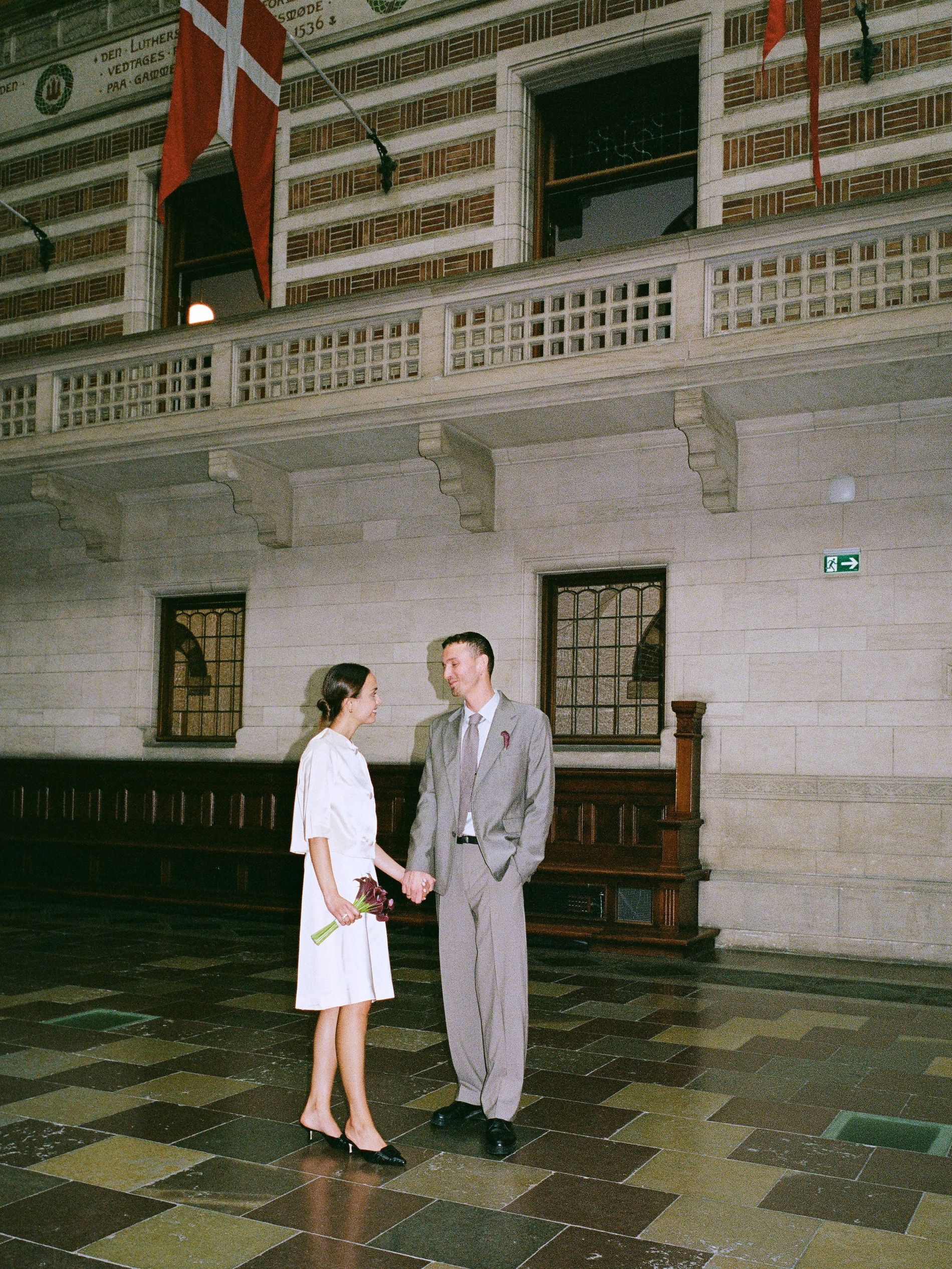 Some brides spend years planning their wedding, but Copenhagen-based Sarah Wisam Fabricius Persson did it in just two weeks. What was initially intended as a very intimate city hall ceremony with immediate family expanded rapidly into a fuller inner-city celebration. “We had already booked a city town hall ceremony on 13 November because we wanted to get married this year,” Sarah explains. “That date was originally meant for just family and a few close friends.” But two weeks before the wedding, everything shifted. “We found our dream apartment and had to buy it immediately,” she says. “That meant postponing the big Italian wedding, but also expanding our city hall celebration since we didn’t know when the bigger wedding would actually happen.” A sudden pivot ensued. “We went into full planning – and panic – mode,” Sarah laughs.