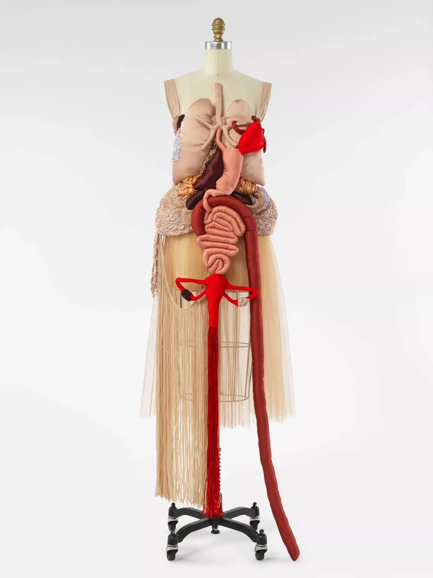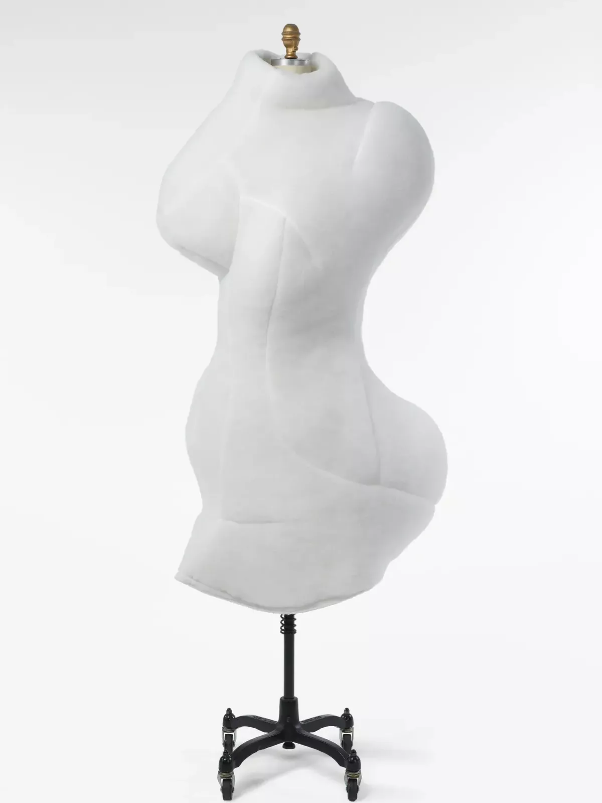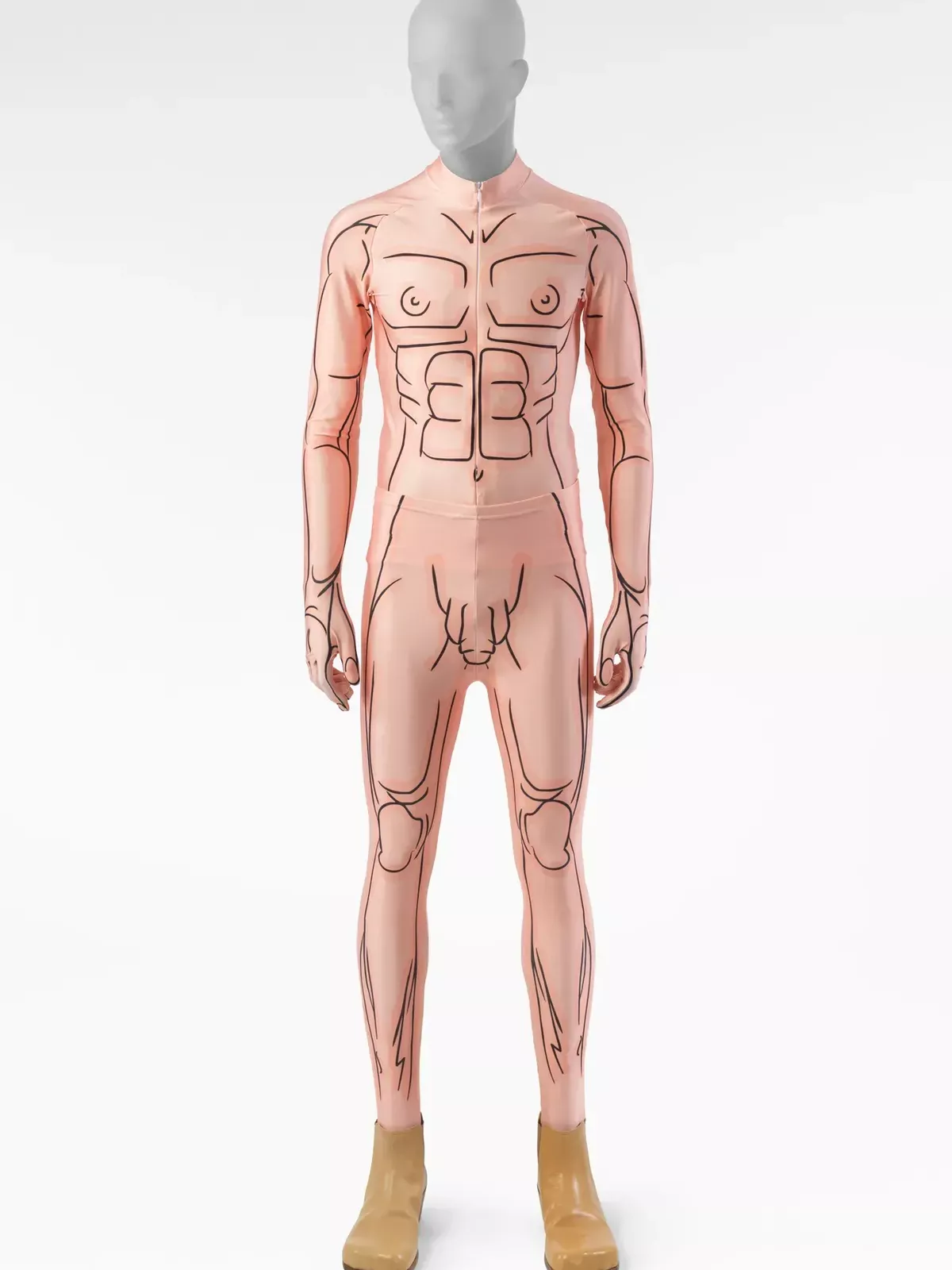 He’s organised the exhibition around a series of thematic body types loosely divided into three categories. These include bodies omnipresent in art, like the classical body and the nude body; other kinds of bodies that are more often overlooked, like aging bodies and pregnant bodies; and still more that are universal, like the anatomical body. Bolton’s is a much more expansive view of the corporeal than the fashion industry itself often promotes, with its rail-thin models and narrow size ranges. “The idea was to put the body back into discussions about art and fashion, and to embrace the body, not to take it away as a way of elevating fashion to an art form,” he explains.