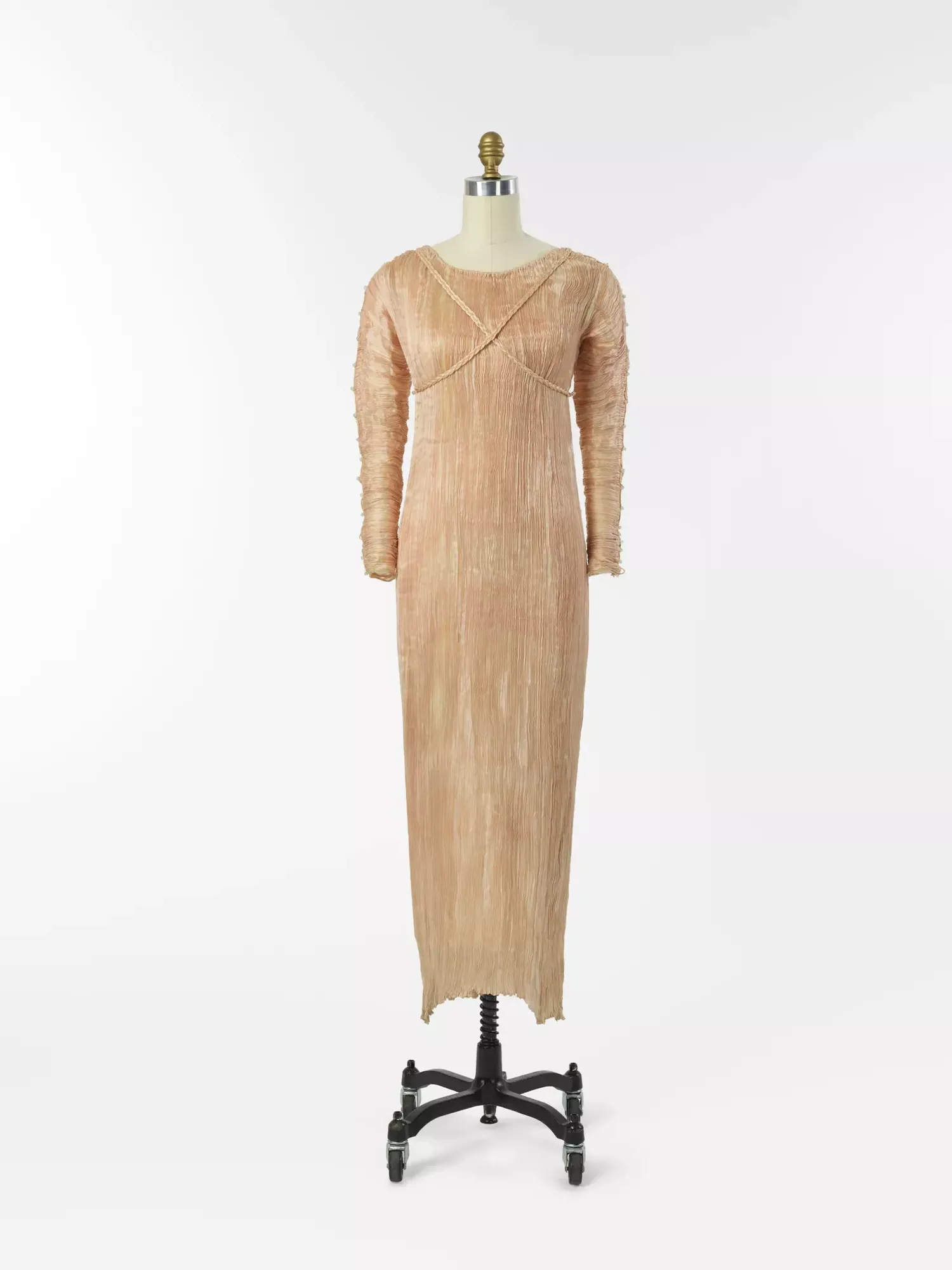 “Delphos” gown, Adèle Henriette Elisabeth Nigrin Fortuny (French, 1877–1965) and Mariano Fortuny y Madrazo (Spanish, 1871–1949) for Fortuny (Italian, founded 1906), 1920s; Gift of Estate of Lillian Gish, 1995 (1995.28.6a). Photo: Anna-Marie Kellen © The Metropolitan Museum of Art