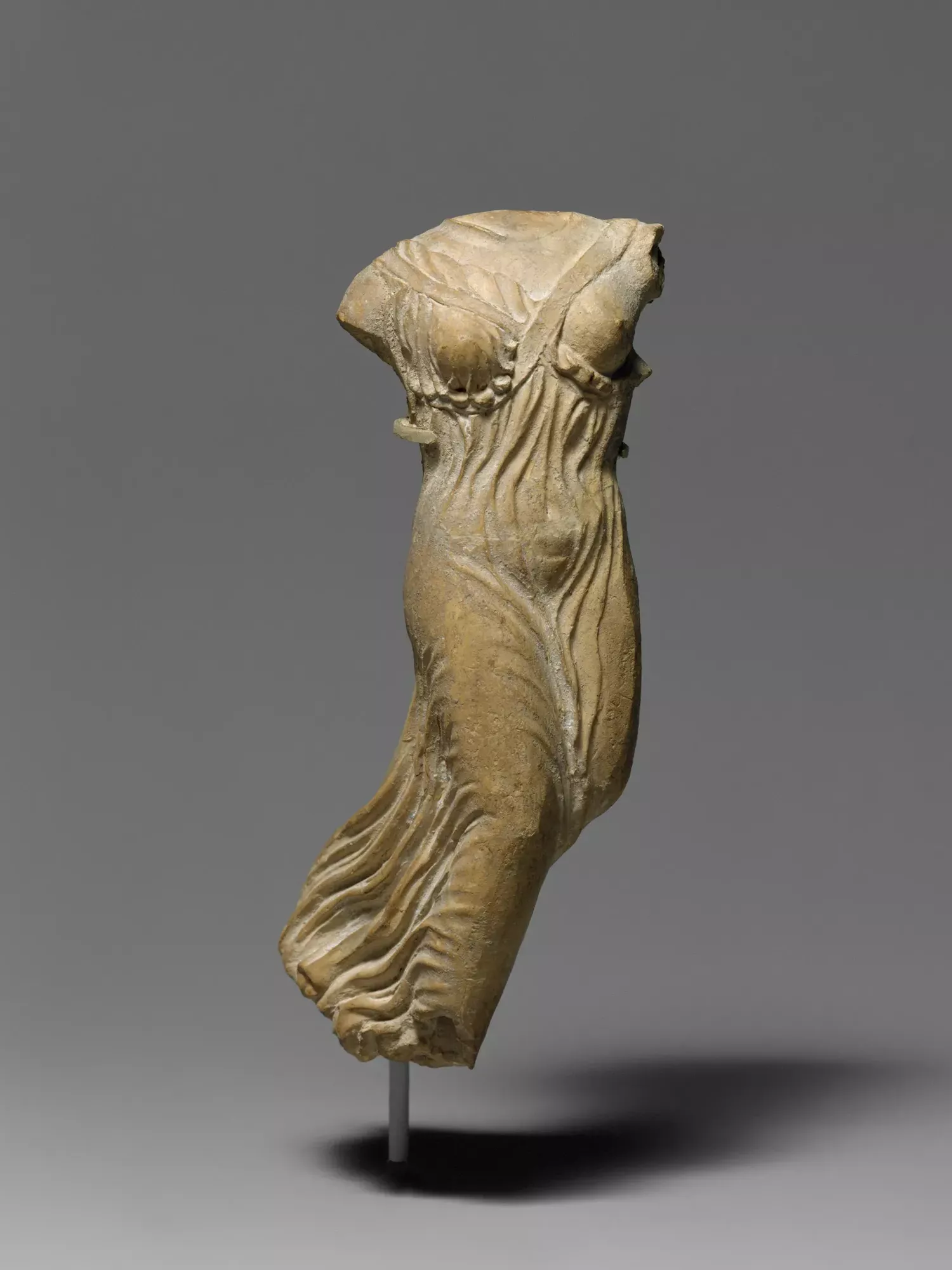 The Classical Body: Terracotta statuette of Nike, the personification of victory, Greek, late 5th century BCE; Rogers Fund, 1907 (07.286.23). Photo: © The Metropolitan Museum of Art
