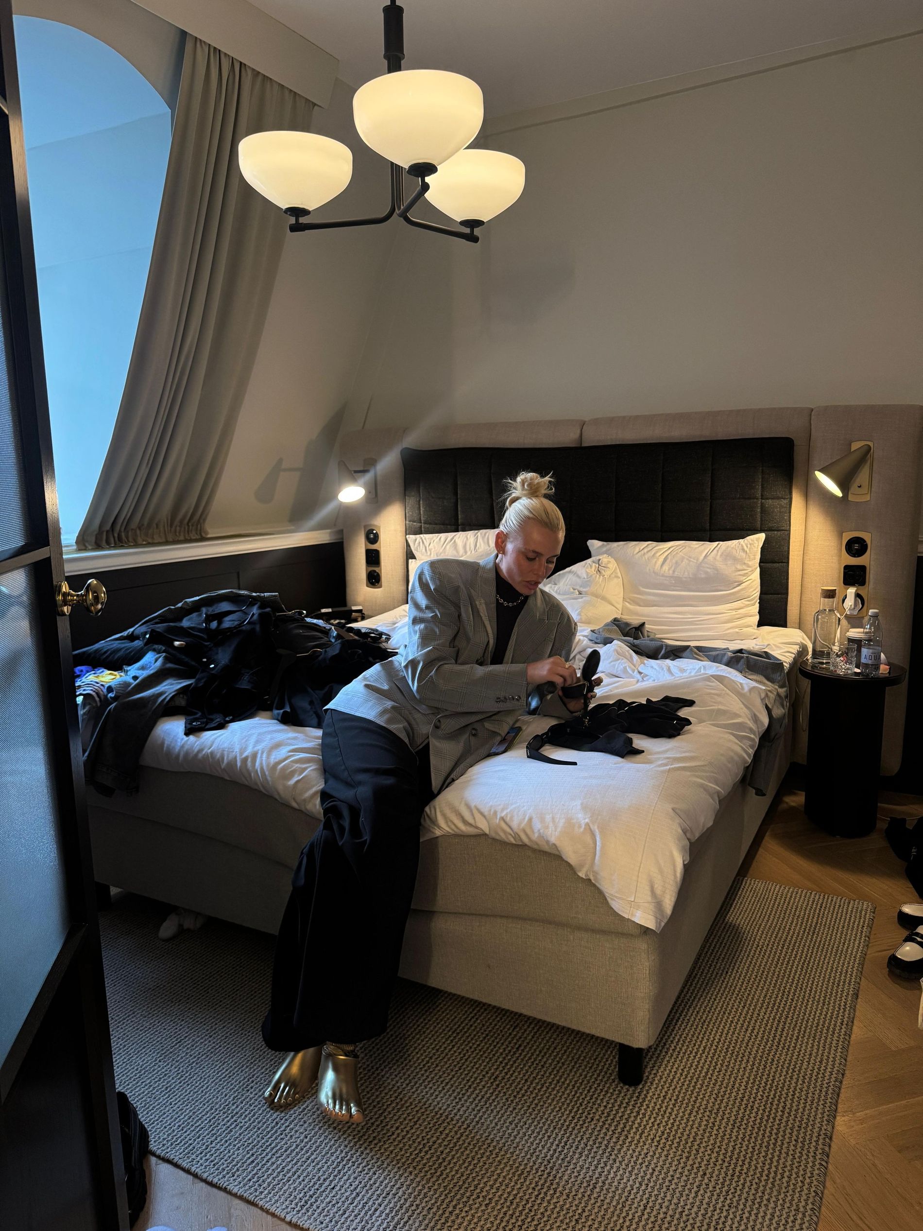 Sitting front row on a bed at Nicklas Skovgaard.