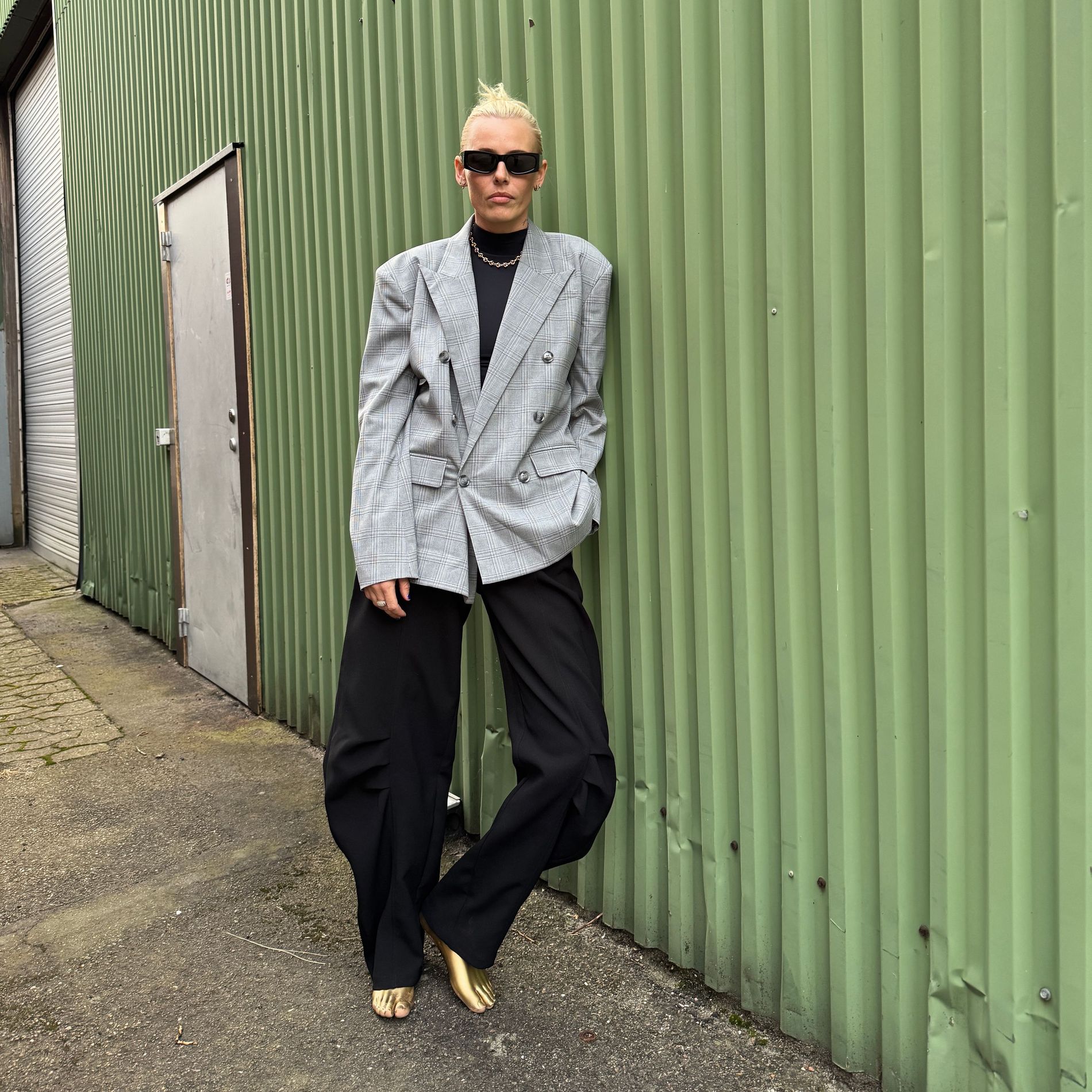 "I loved wearing the grey jacket and black pants look from Rotate," says Wasser. "It just felt right in Copenhagen Such a boss look!"