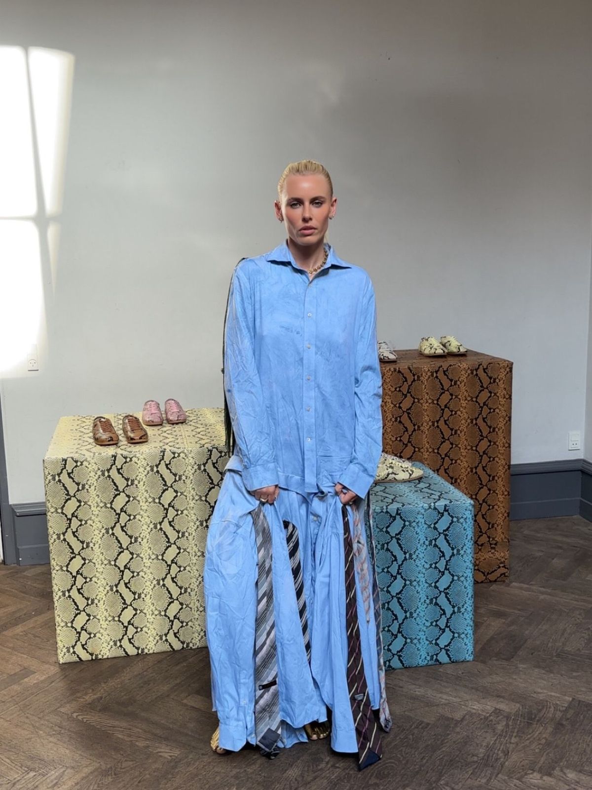 Before heading off to the IAMISGO show, Wasser popped by our Copenhagen Studios breakfast "The IAMISIGO show was my absolute favourite – Bubu is an incredible talent," she says. "Her energy is unmatched, and that blue dress she designed? Easily my favourite look of the week. Major shout out to her and her whole team - so special."