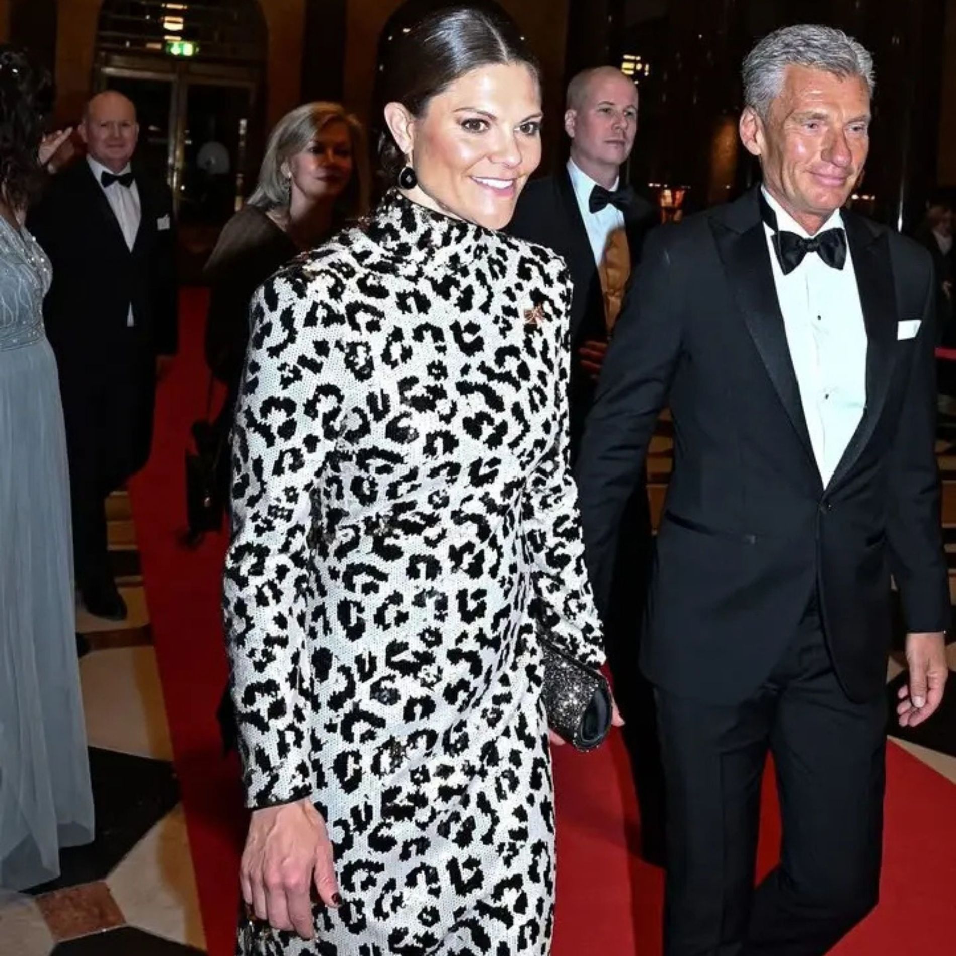 Her Royal Highness, Victoria, Crown Princess of Sweden has taken autumn occasionwear for a walk on the wild side – rewearing one of her wardrobe favourites by Stockholm-based Malina