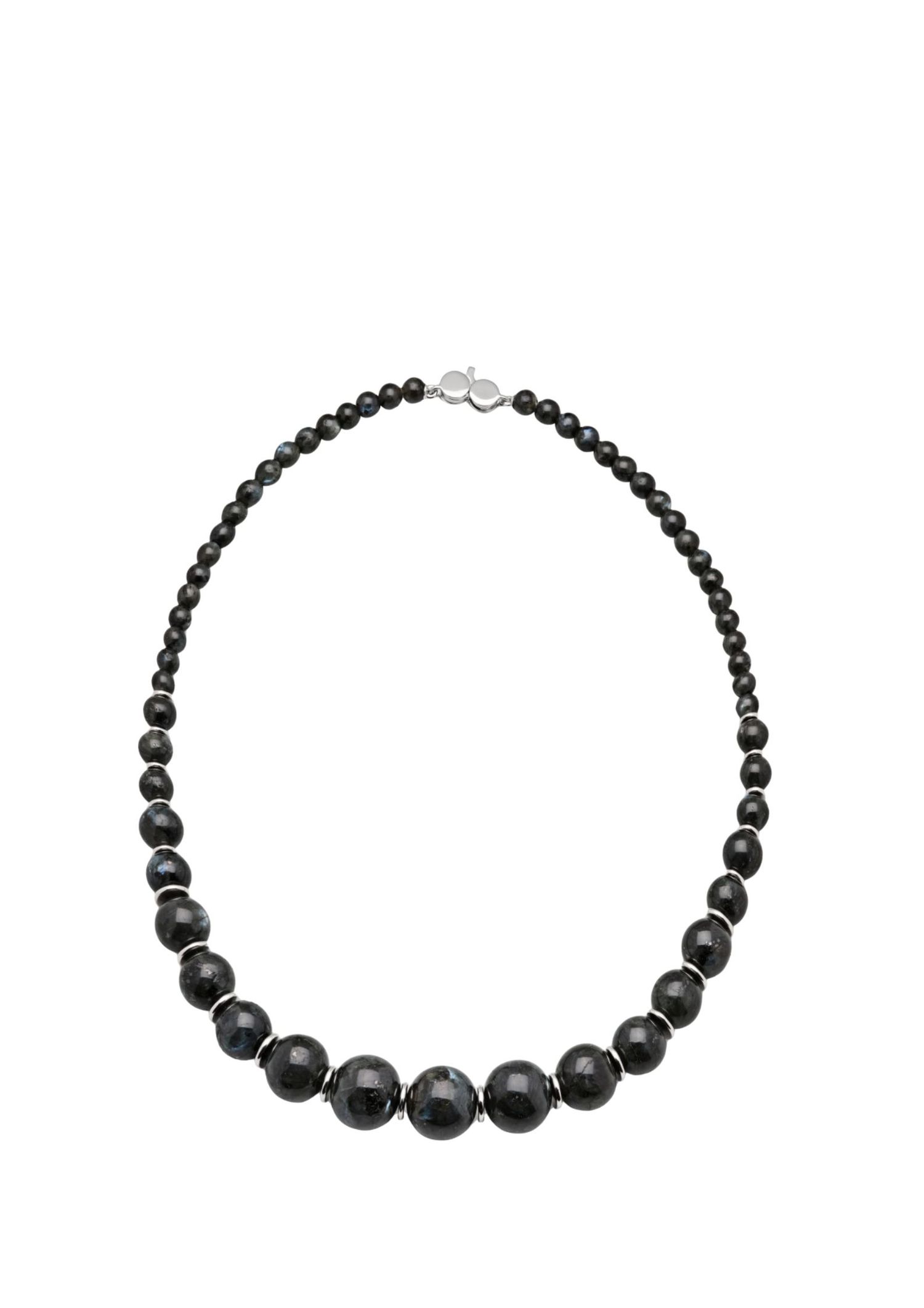 "We’re loving Tom Wood’s unisex necklace crafted from black larvikite beads and sterling silver. Whether styled with a tonal black sweater or a crisp white tee, it adds just the right amount of edge. A minimalist piece with maximum impact."