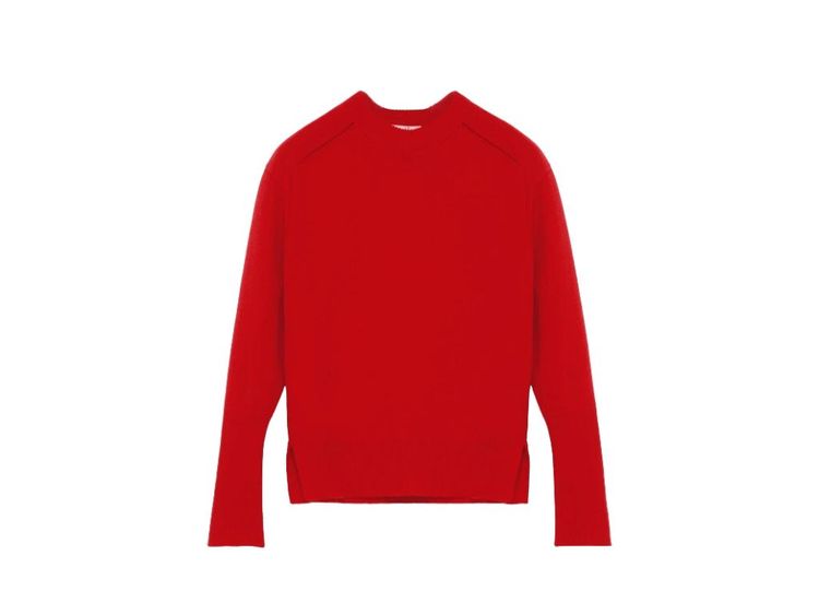 “The colour of the season: tomato red. This is the perfect sweater to elevate an outfit, preferably worn as a sweater or to add a pop of colour to any look by wearing it around the waist or over the shoulders.”