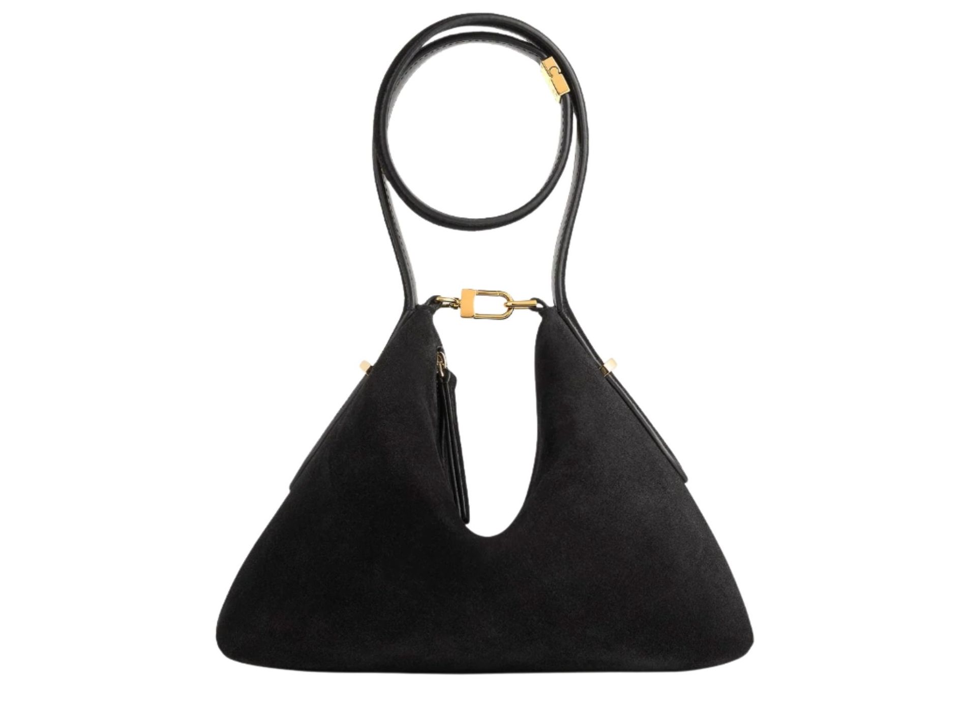"Toteme delivers the ultimate fall accessory, a sleek black evening bag that goes with everything. First released in satin and now reimagined in supple suede, this minimalist bag is the perfect piece to complete your autumn wardrobe. Wrap it around your wrist and you’re instantly ready to go, whether for dinner or a night out."