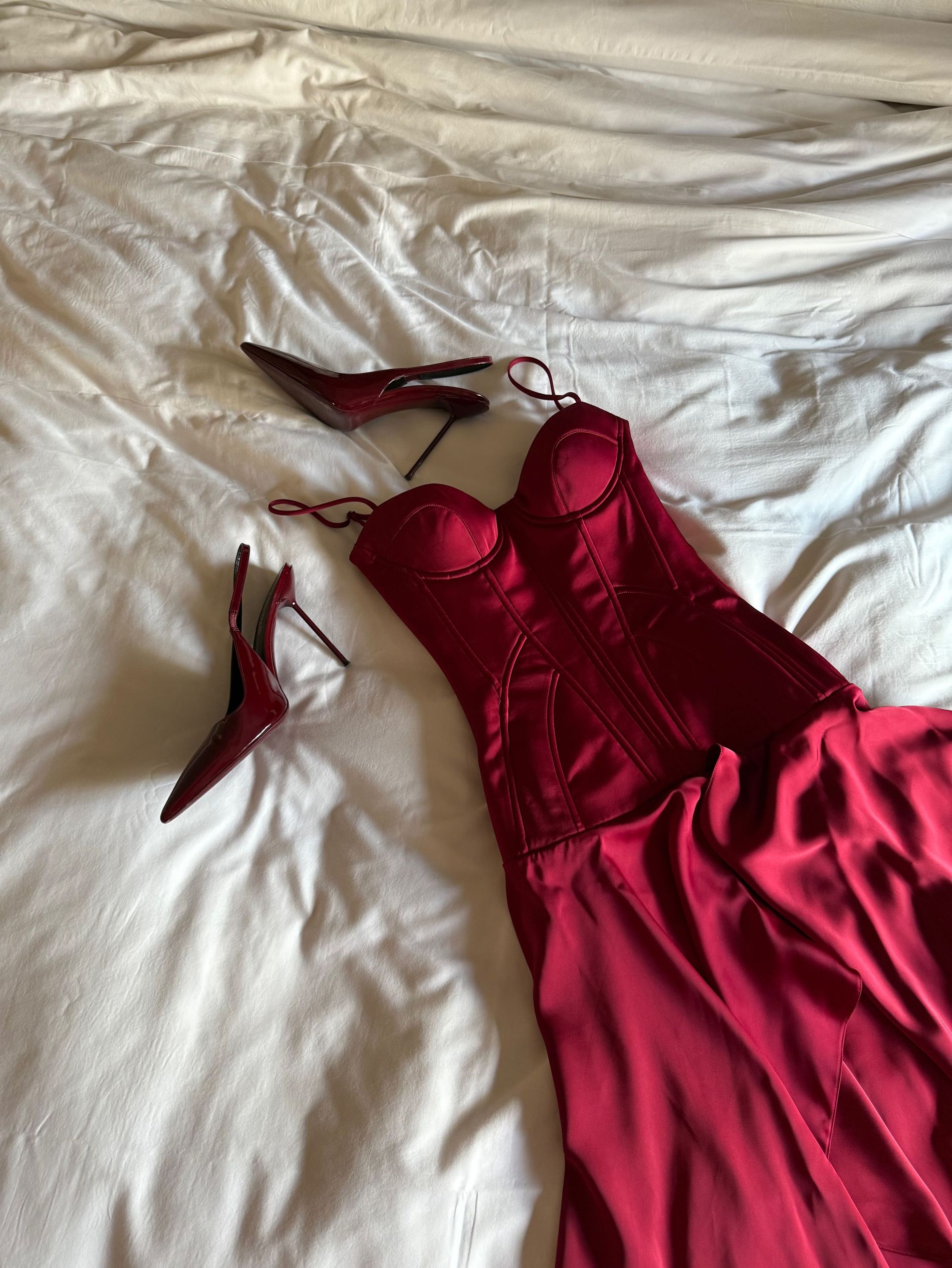 Car’s waiting downstairs. One last look in the mirror, perfume on, and we’re off.