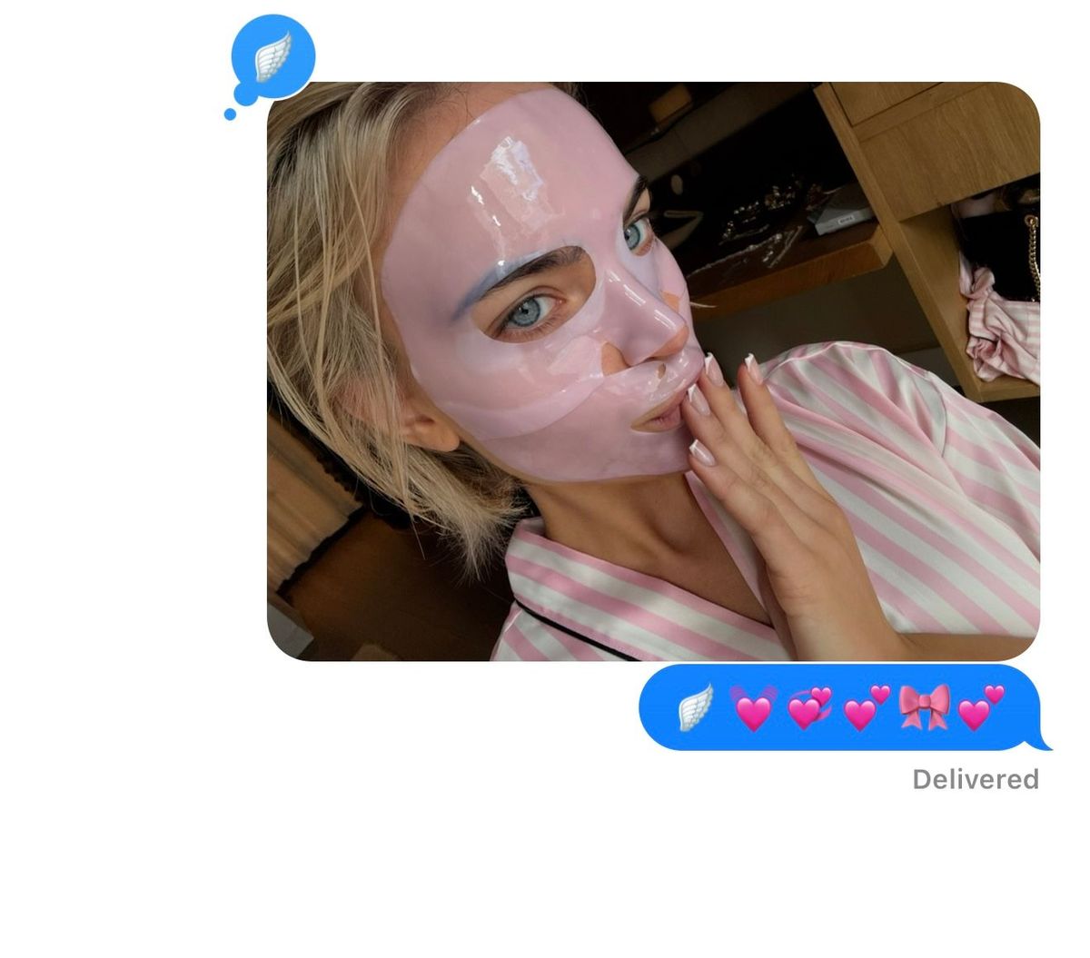 Back at the hotel. Face mask on, texting friends, and a bit of quiet before it all begins.
