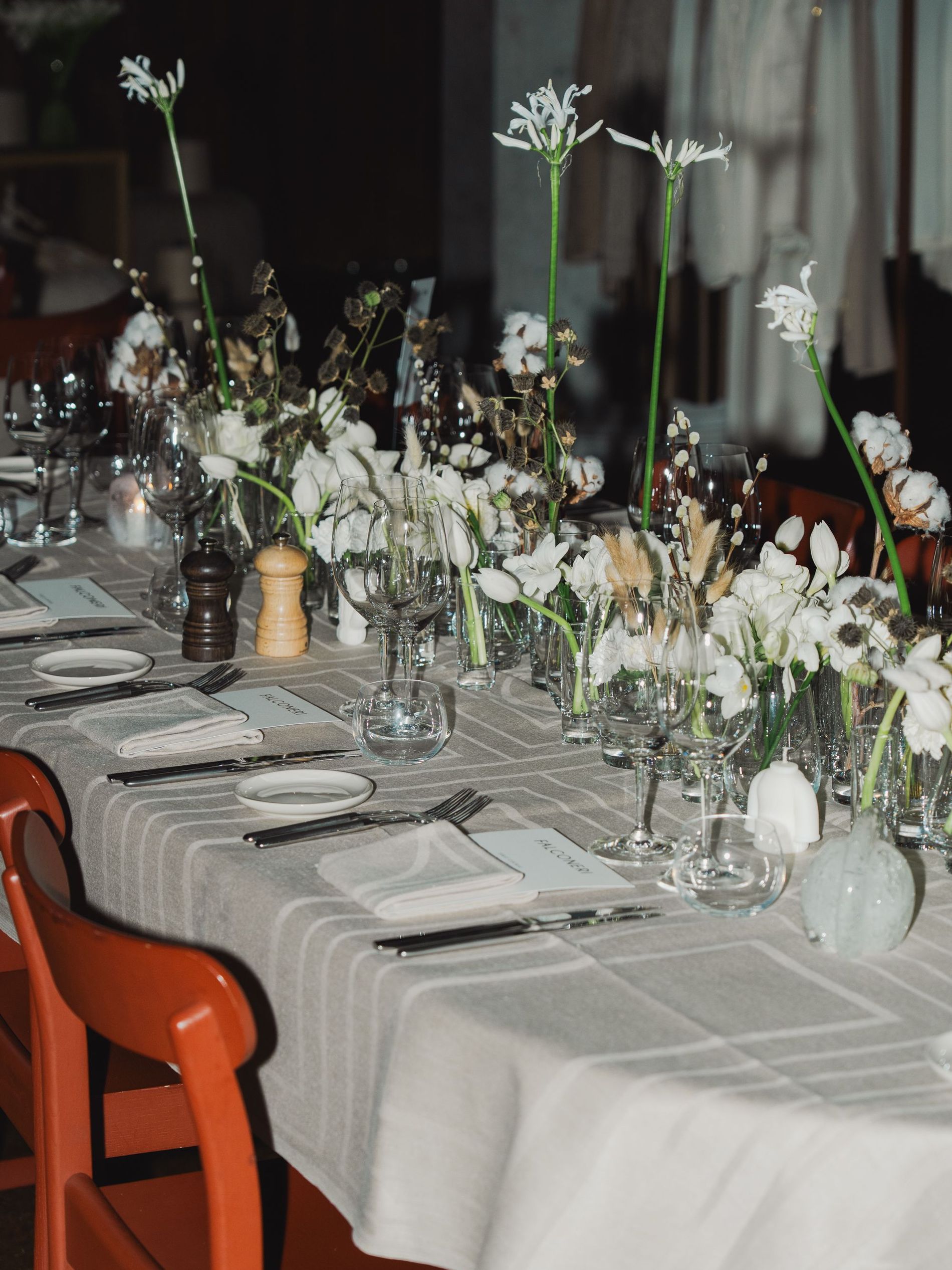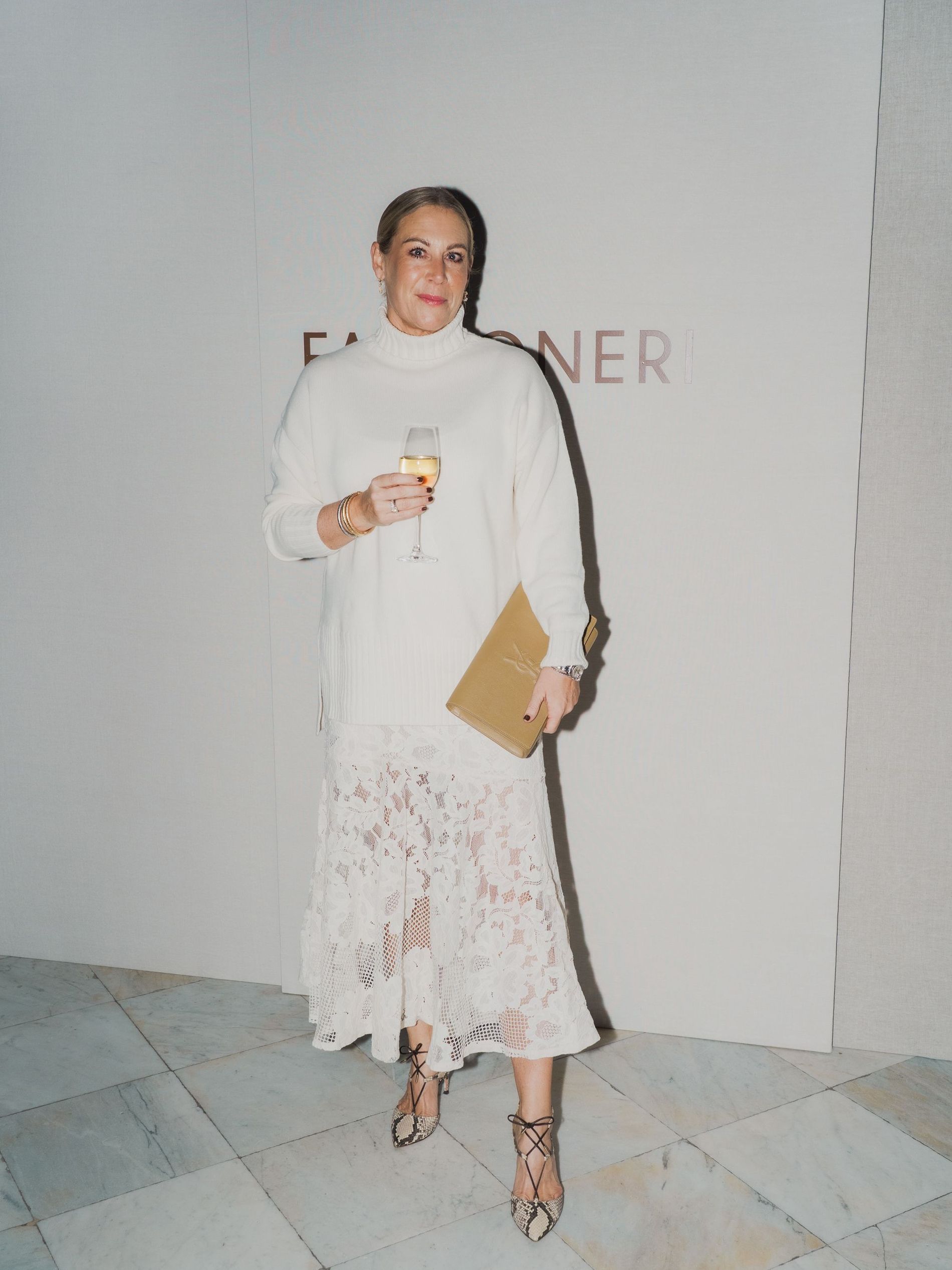 “Every year, we get surprised by the winter, even though we are Swedes” said Vogue Scandinavia Editor in Chief Martina Bonnier to the crowd. “And then we realise, yes, we need these cosy cashmere clothes.” Clad top to toe in an earthy oatmeal cashmere set, Bonnier perfectly embodied the brand’s ethos of ease and elegance – not to mention sustainability. Indeed, with Falconeri’s commitment to ethical materials, one could trace the very sweaters worn by the likes of supermodel Caroline Winberg and artist Clara Hallencreutz, actor Alva Bratt and chef Tommy Myllymäki back to the Inner Mongolian cashmere goats roaming the fields to Falconeri’s atelier in Italy and finally to the brand’s flagship store here in Stockholm. These are the sort of pieces that beg to be touched, and with so many guests wearing Falconeri, the evening possessed an inimitable cosiness.