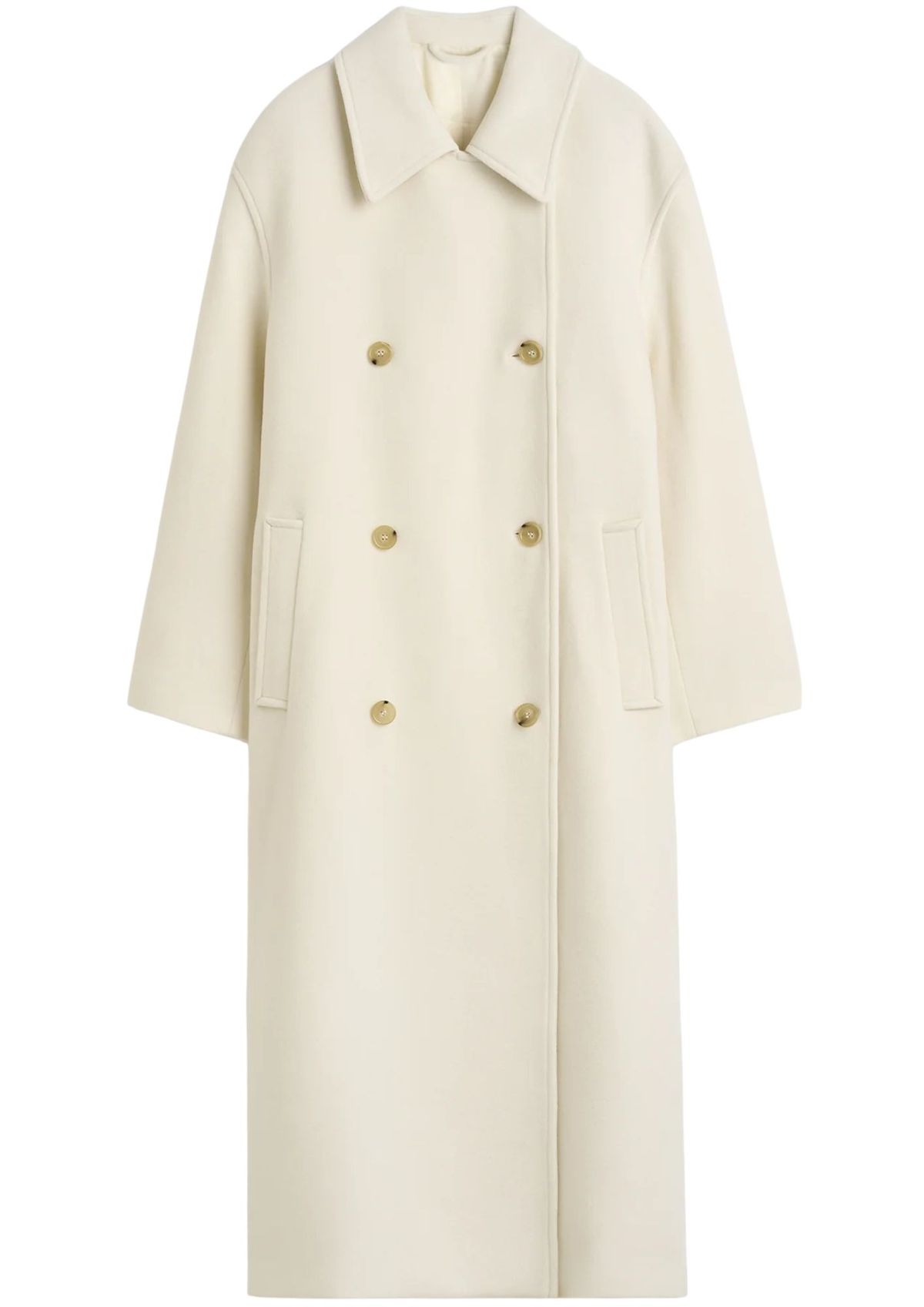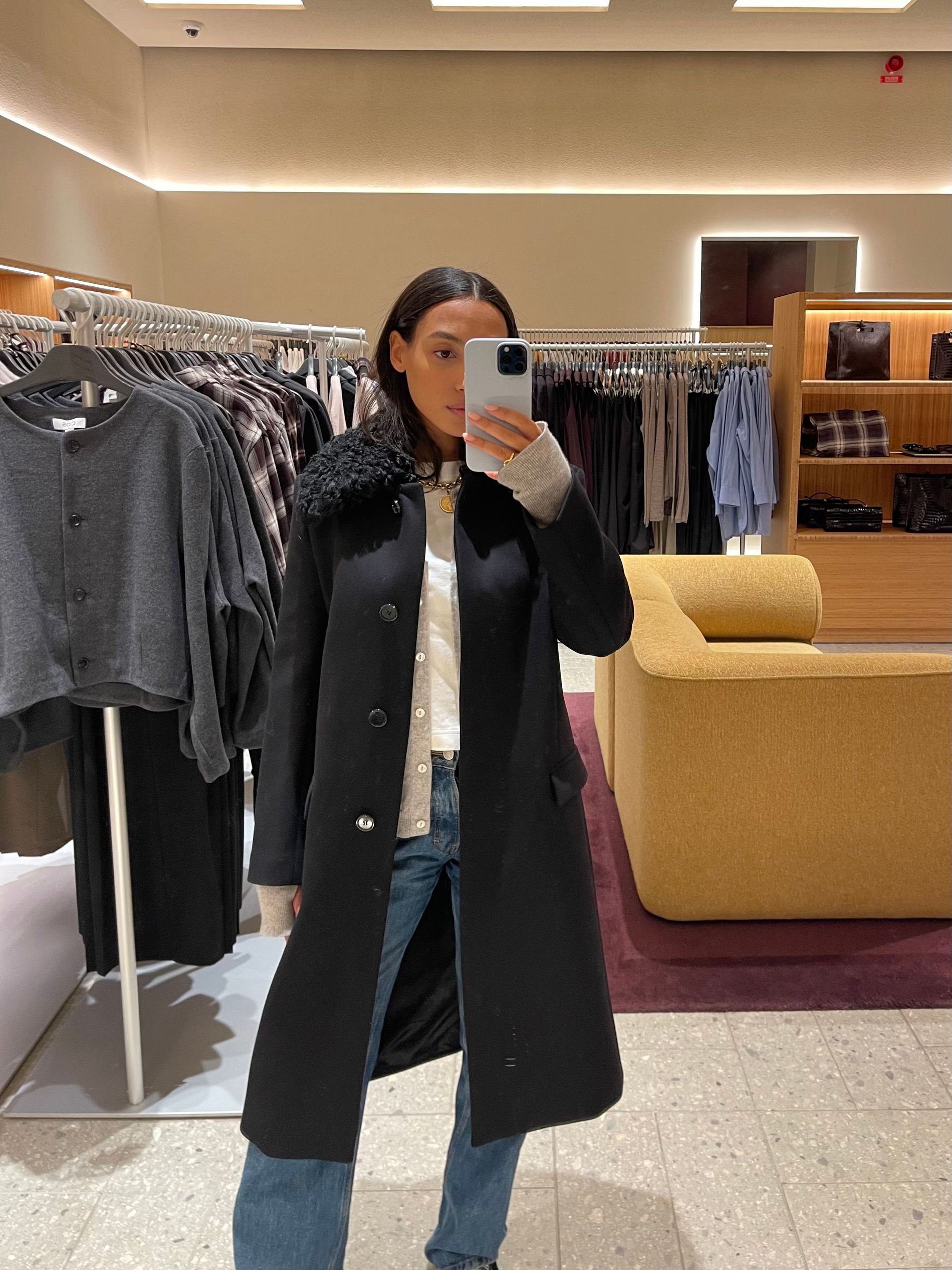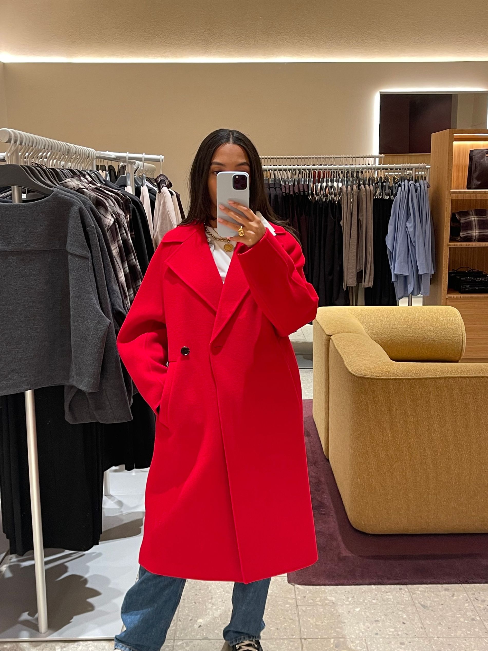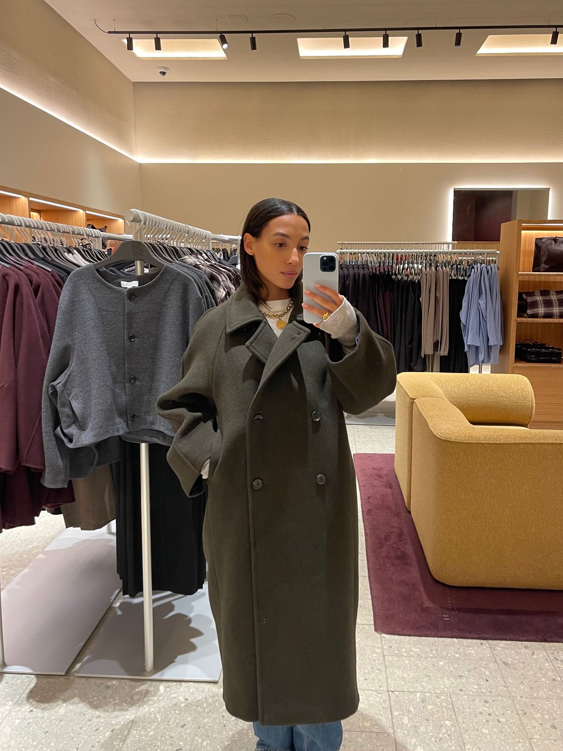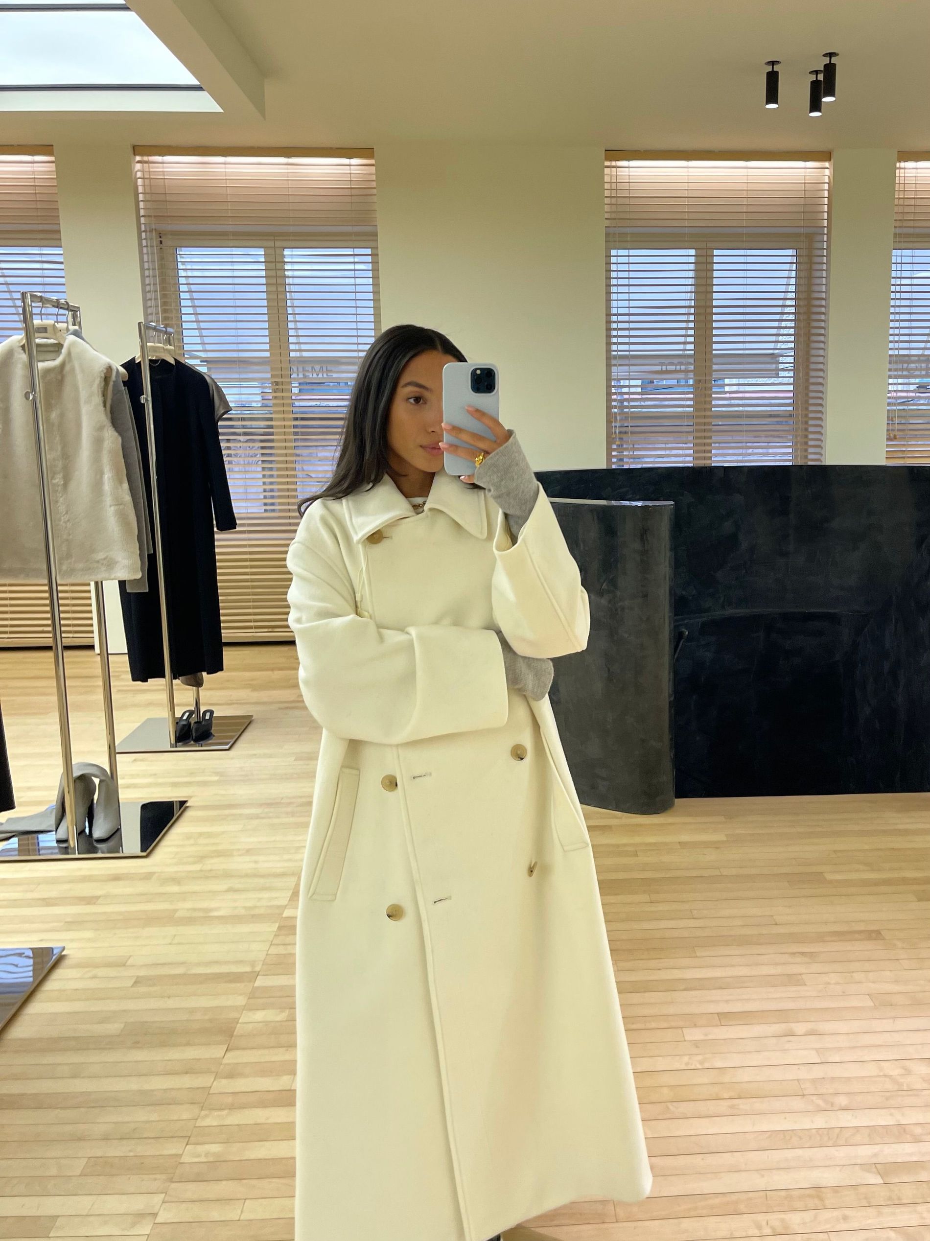 At first glance: I felt an immediate pull towards this jacket – it was the very first coat I wanted to try on. I've avoided white coats for years because of their impracticality, but the moment i slipped this one on, I realised I've been missing out. There's something about it that awakens my inner Cameron Diaz in The Holiday alter ego. This warm wool-blend coat has an oversized fit, and my favourite detail is the statement collar – a subtle detail that makes the biggest difference.