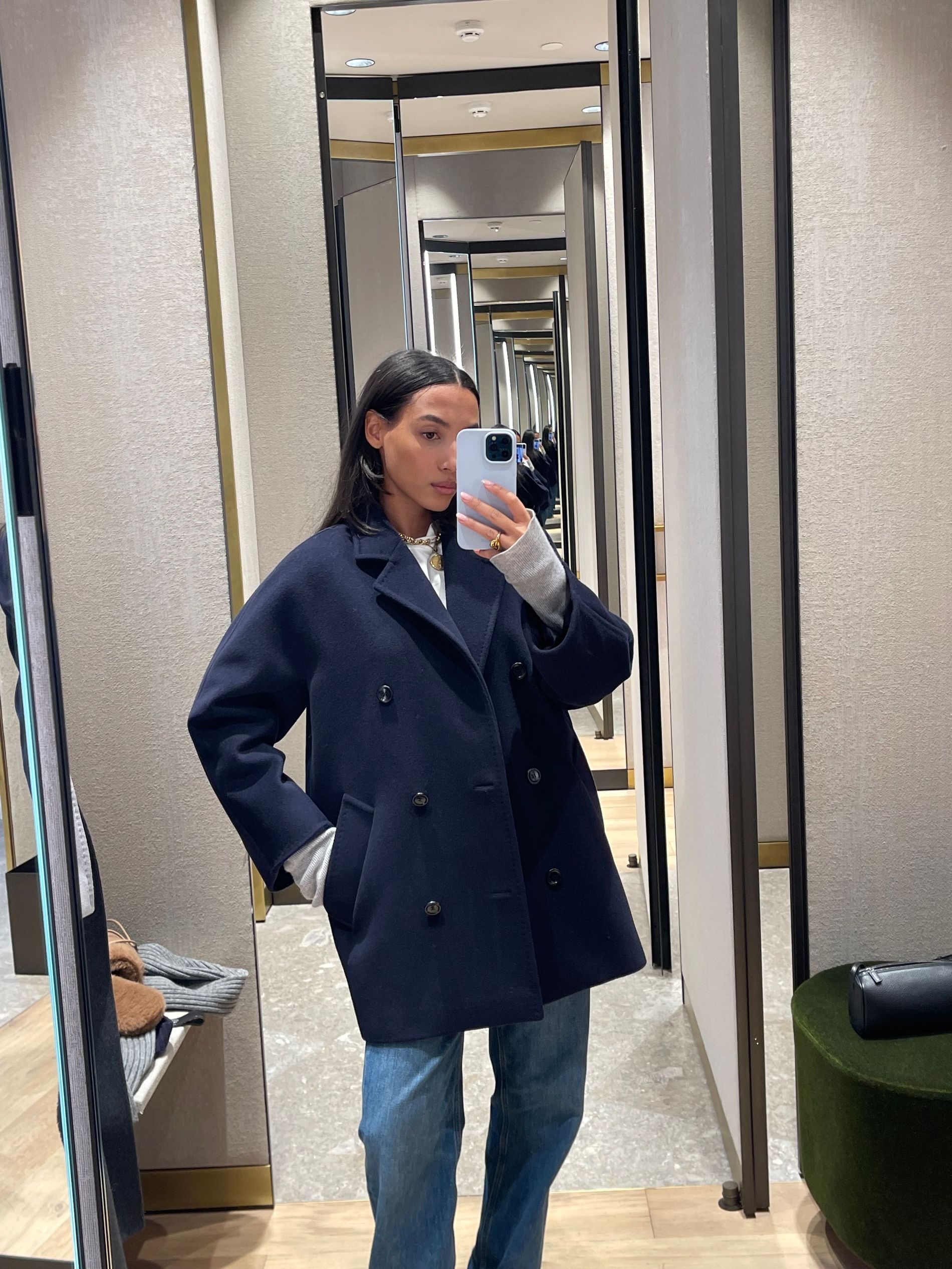 At first glance: The coat I didn't know I needed: a classic pea coat! The moment I slipped this on, I fell in love. Its nautical origins are evident in the design, with broad lapels, a double-breasted front, large buttons and heavy wool. This Max Mara version is absolute perfection